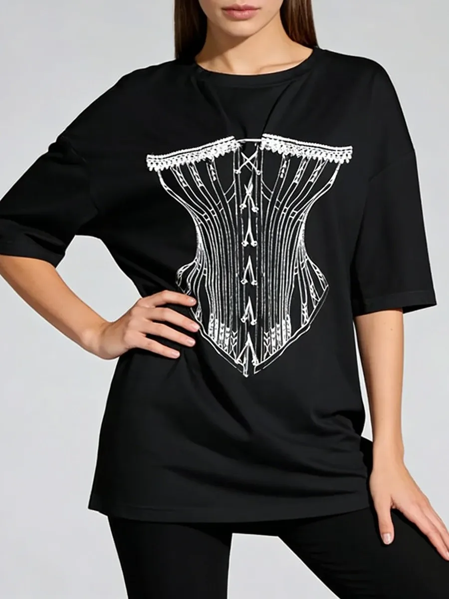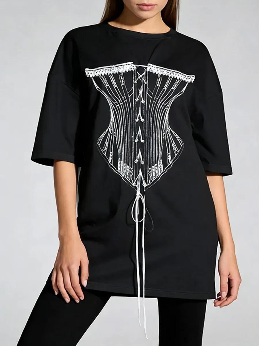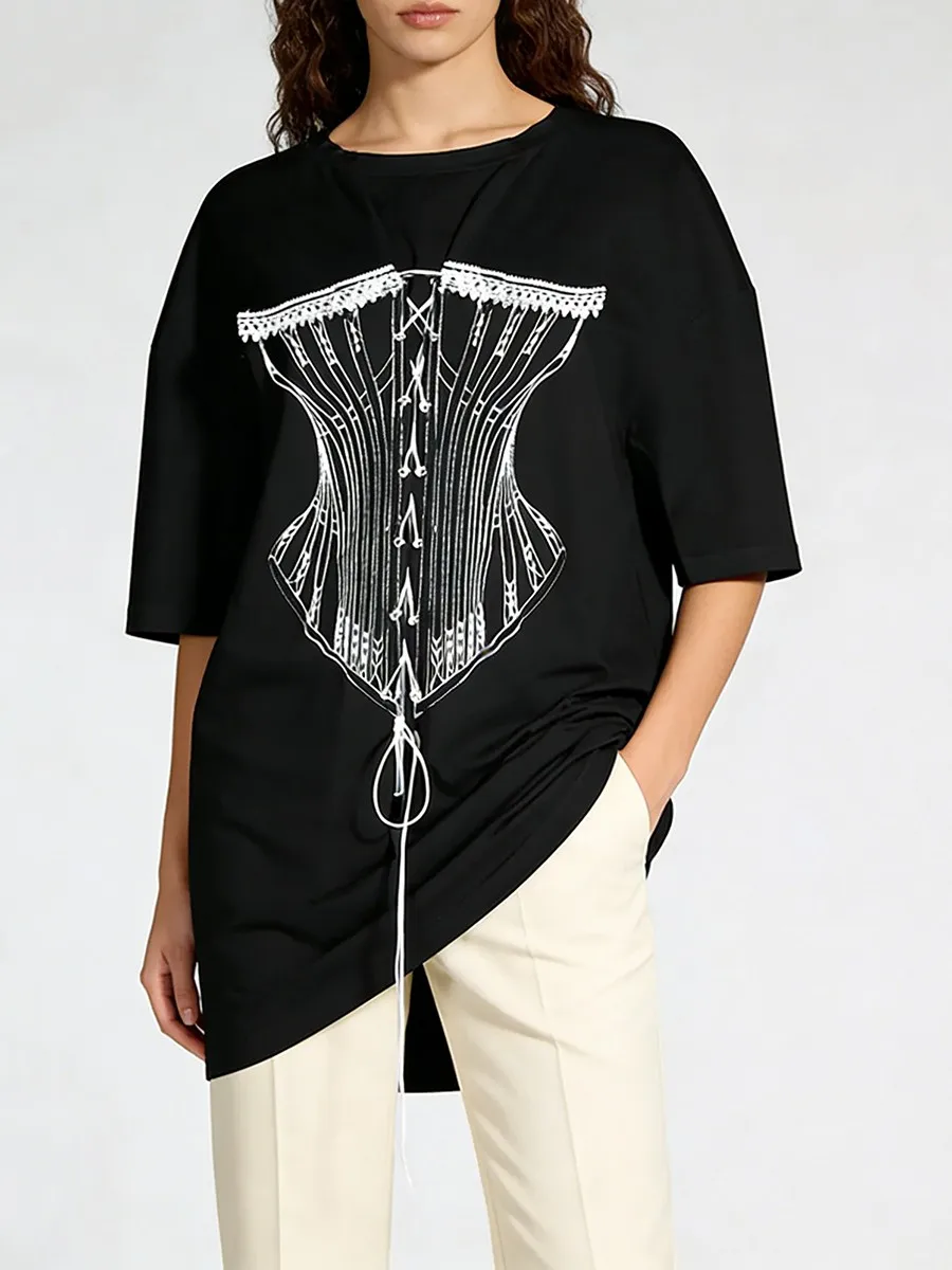 TWOTWINSTYLE Fashion Loose Spliced Strap T Shirts for Women Round Neck Half Sleeves Patchwork Lace Casual T Shirt Female Clothes