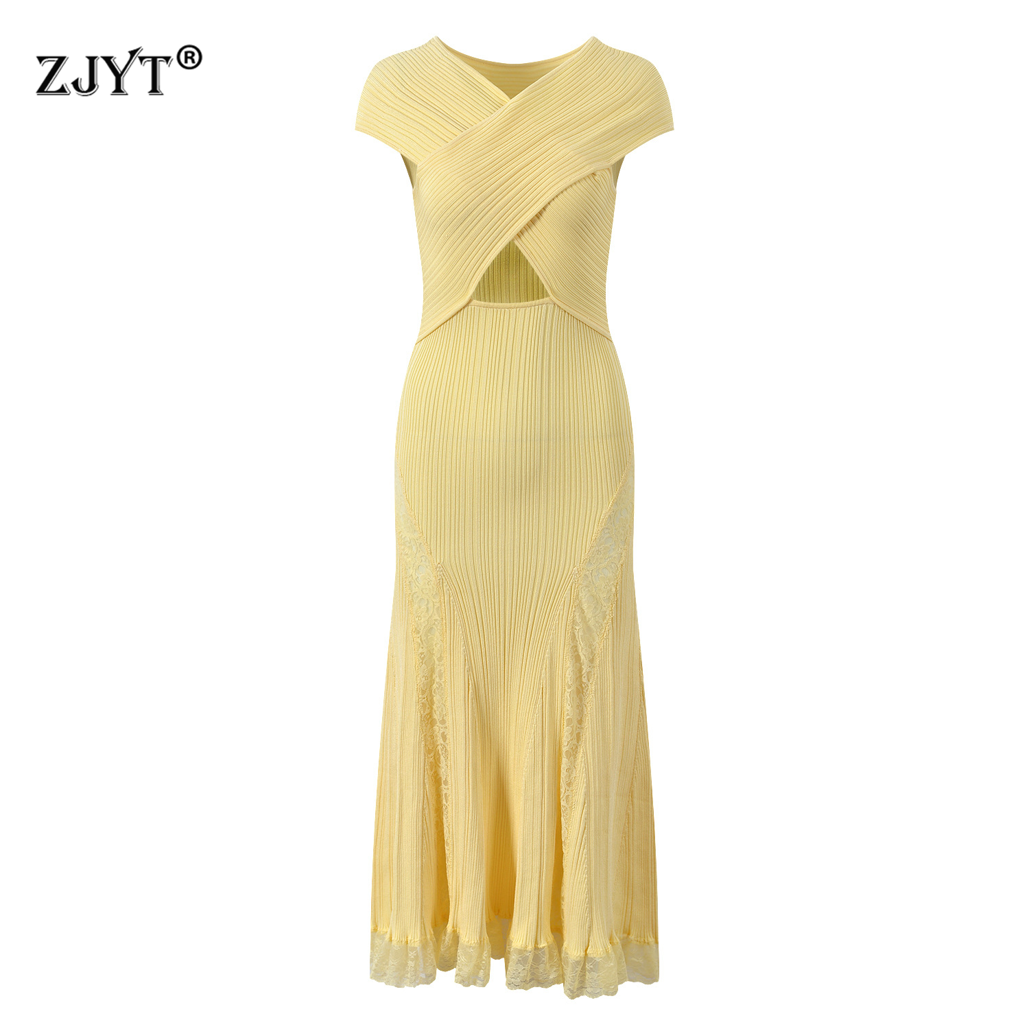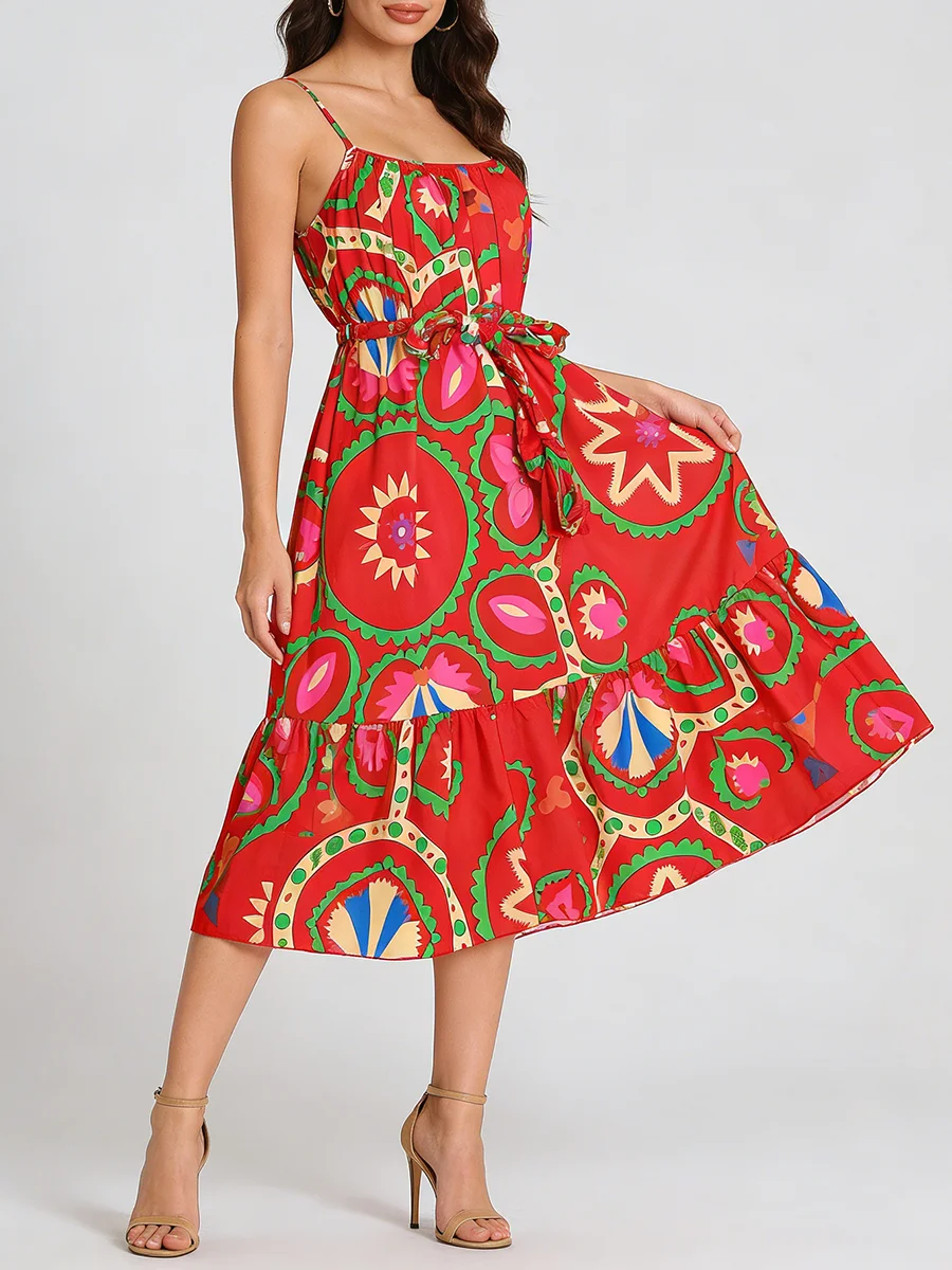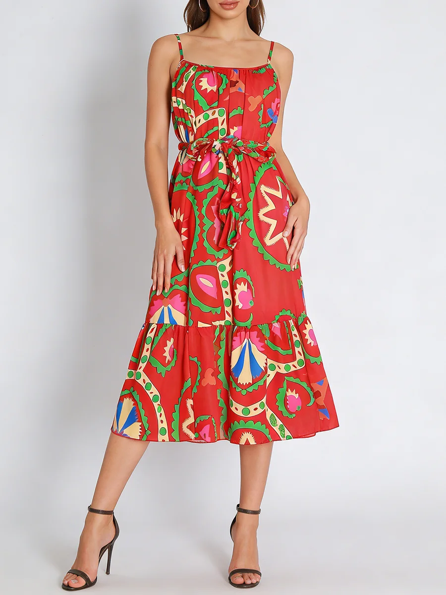 TWOTWINSTYLE Fashion Printing Spliced Ruched Long Dress for Women Square Neck Sleeveless Patchwork Lace Up Casual Dress Female