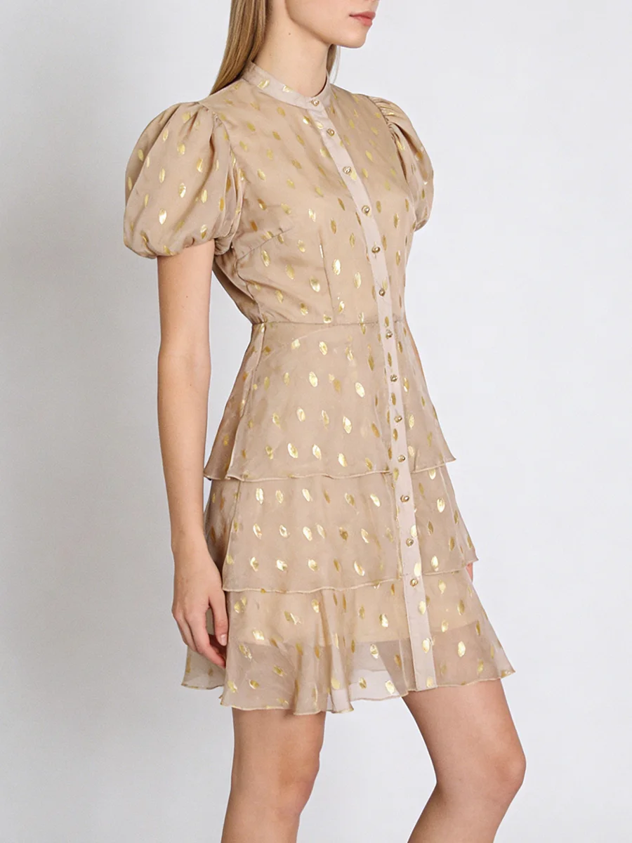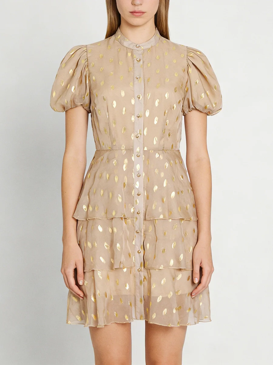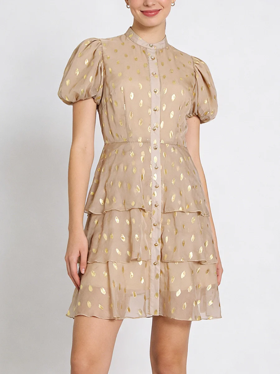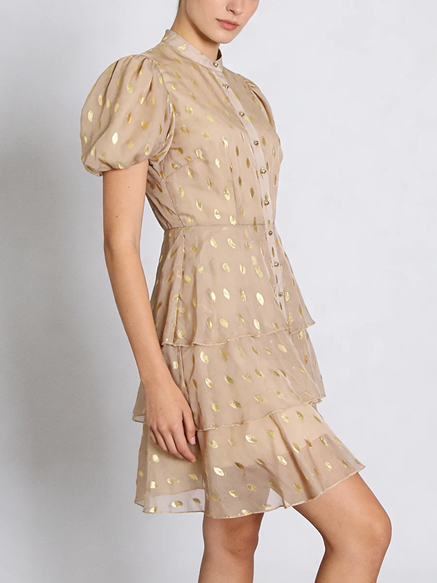 TWOTWINSTYLE Fashion Printing Spliced Ruffles Basics Dress for Women O Neck Short Sleeves Tunic Patchwork Buttons Dresses Female