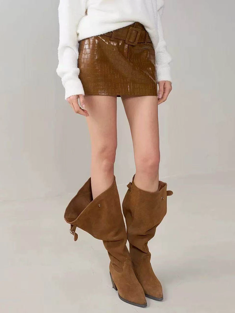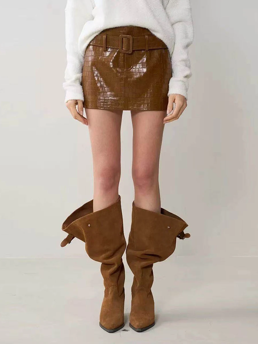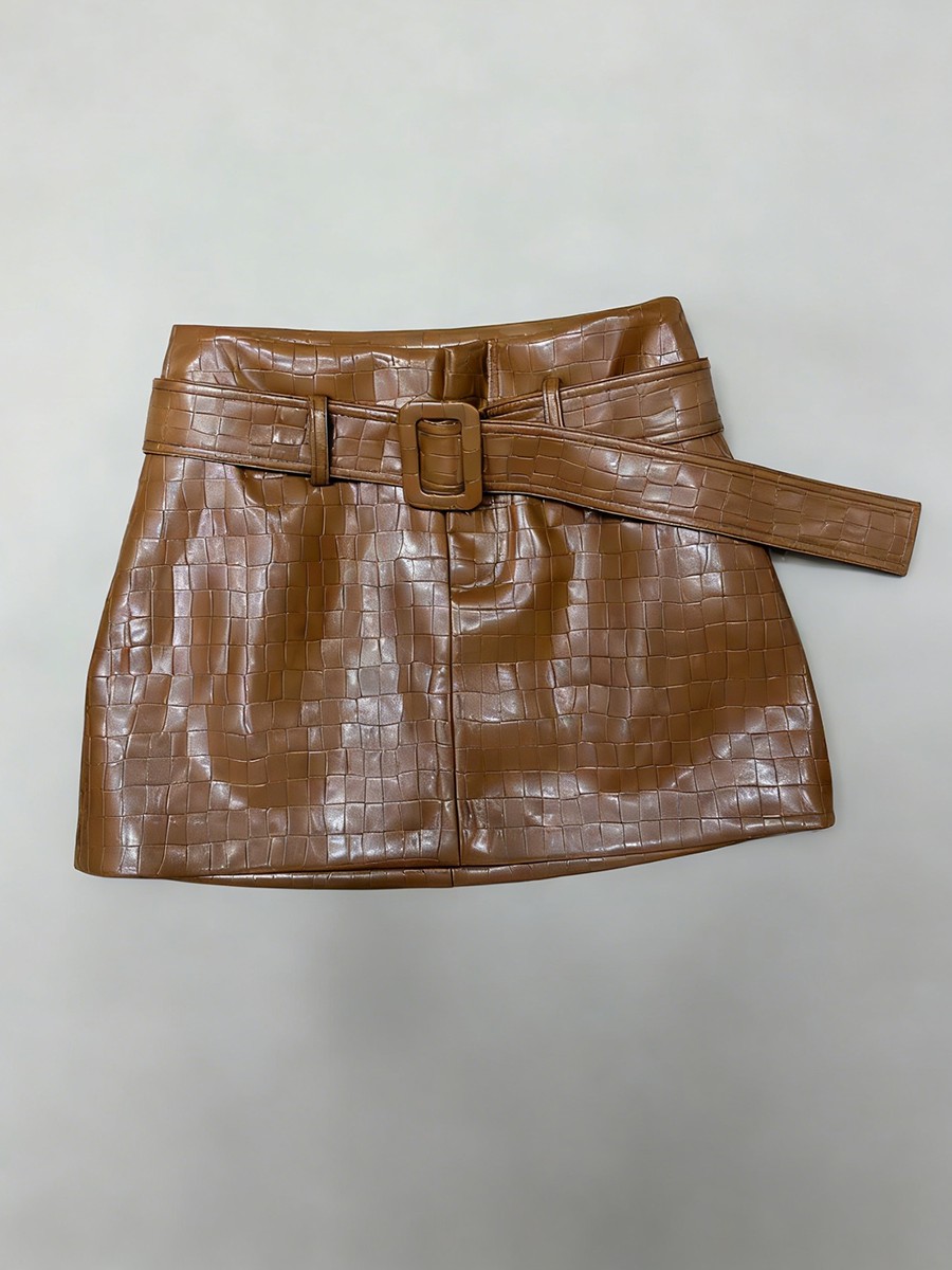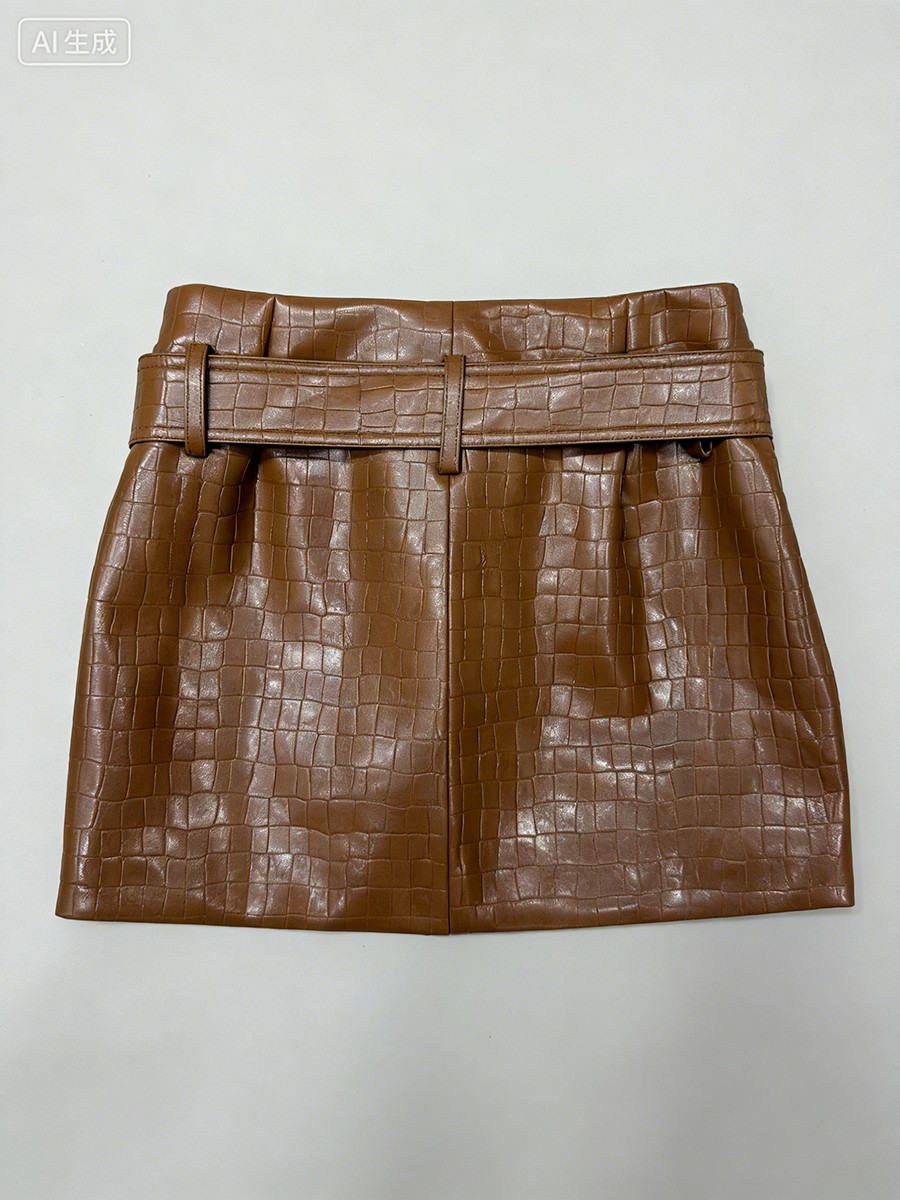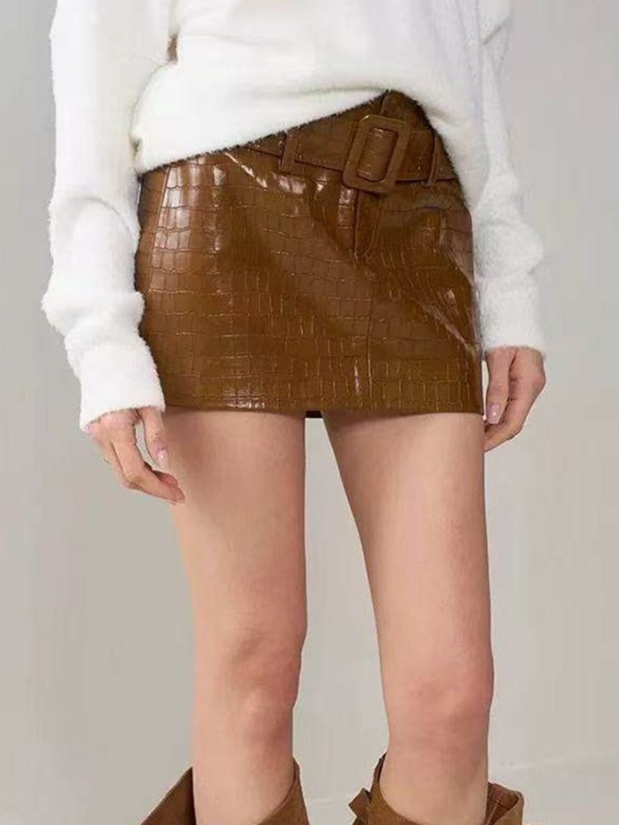 TWOTWINSTYLE Fashion Slimming Spliced Belt Leather Skirts for Women High Waist Patchwork Pockets Temperament Mini Skirt Female