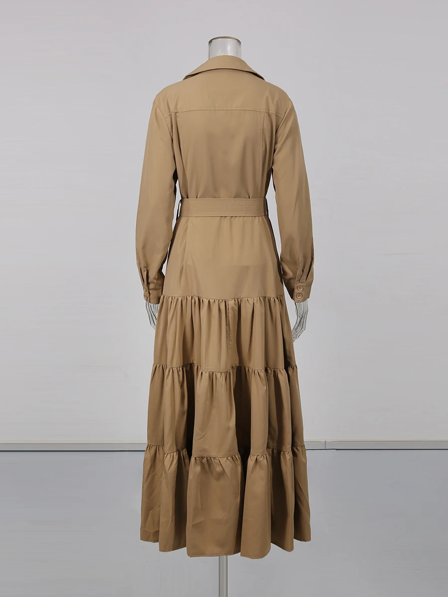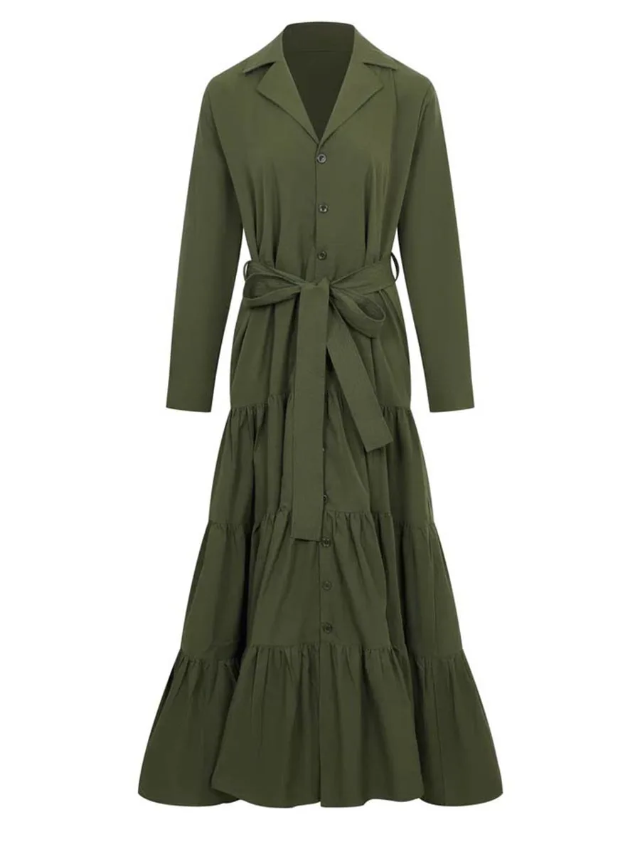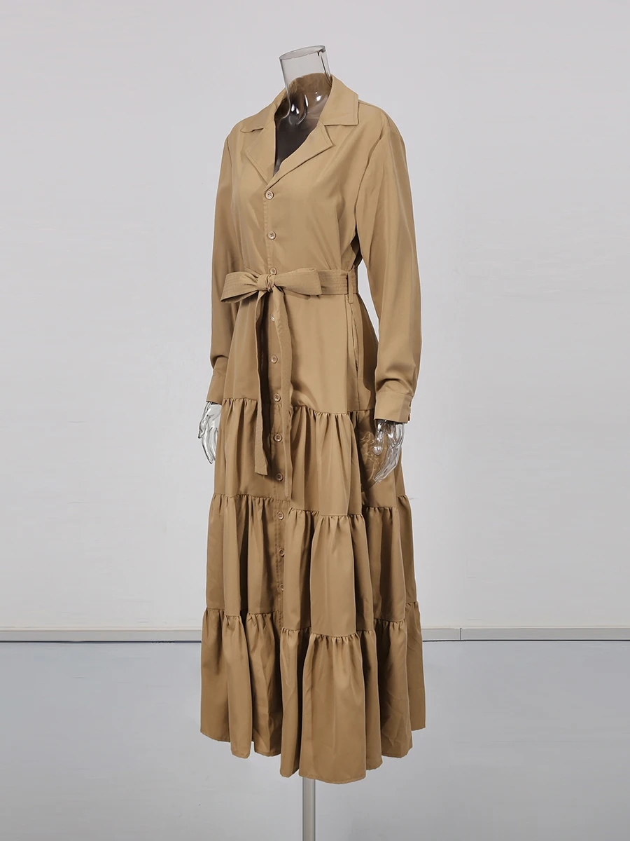 TWOTWINSTYLE Fashion Spliced Single Breasted Casual Dresses for Women Lapel Long Sleeves Patchwork Folds Dress Female Clothing