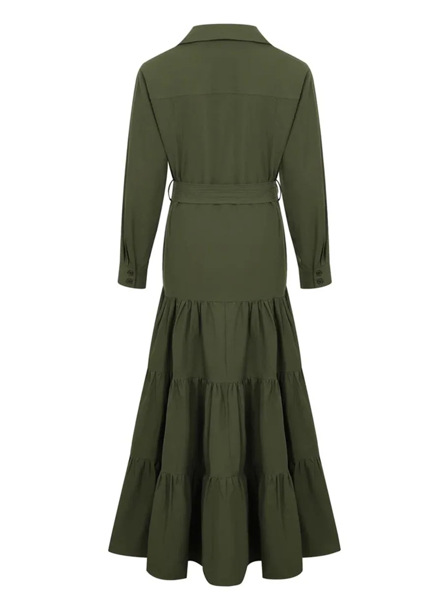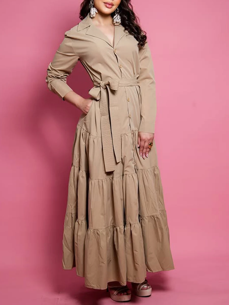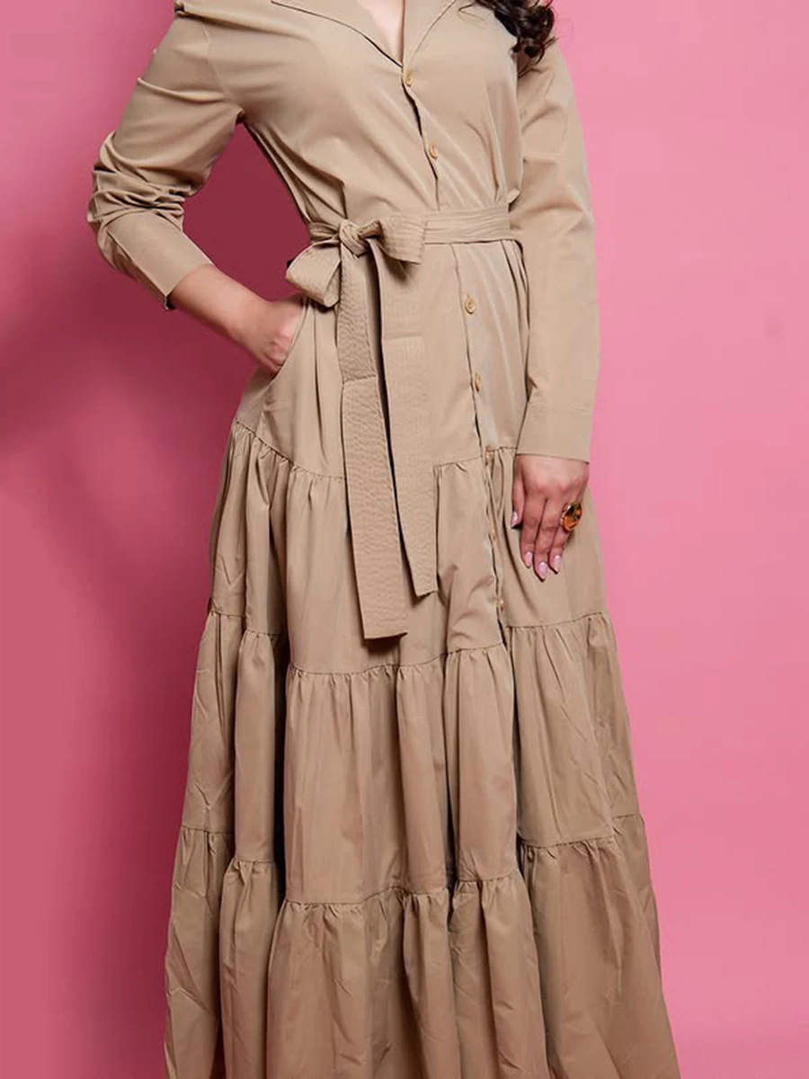 TWOTWINSTYLE Fashion Spliced Single Breasted Casual Dresses for Women Lapel Long Sleeves Patchwork Folds Dress Female Clothing