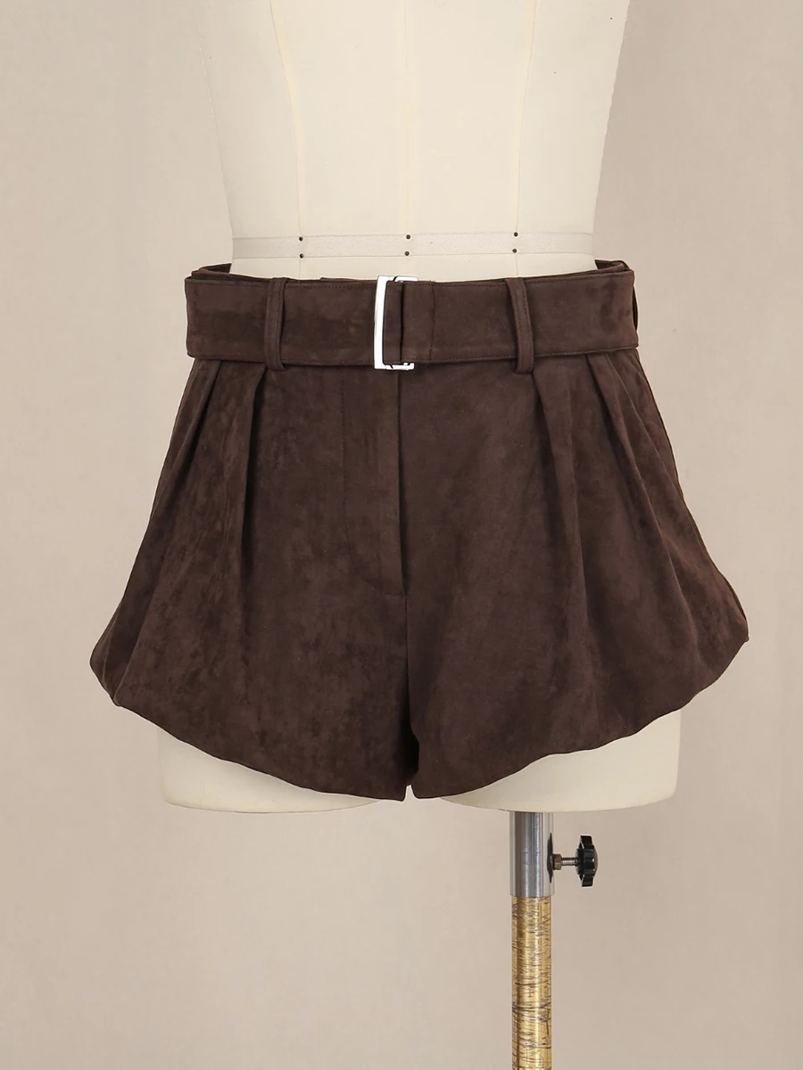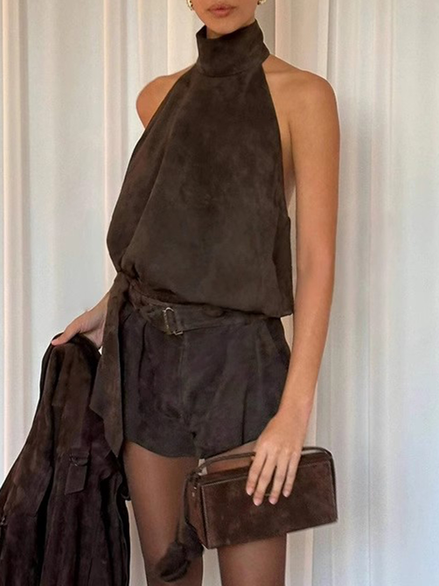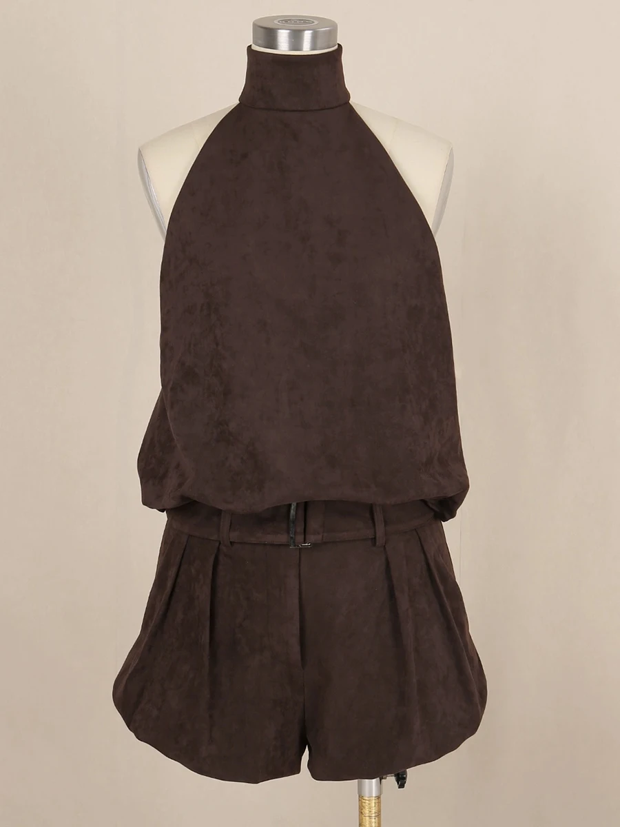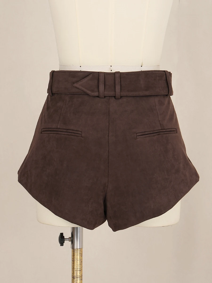 TWOTWINSTYLE Fashion Two Piece Sets for Women Stand Neck Sleeveless Vest High Waist Spliced Belt Shorts Casual Set Female New
