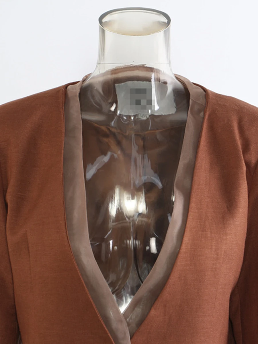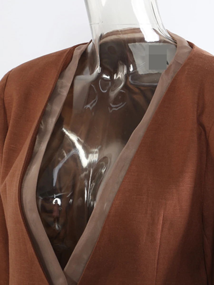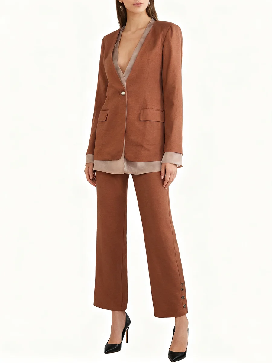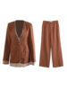 TWOTWINSTYLE Hit Color Casual Two Piece Sets for Women V Neck Long Sleeves Spliced Buttons Blazer High Waist Pant Set Female New