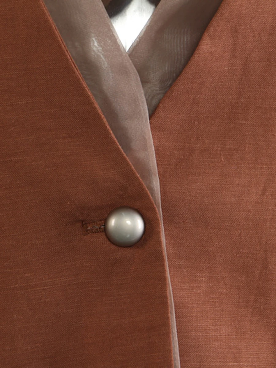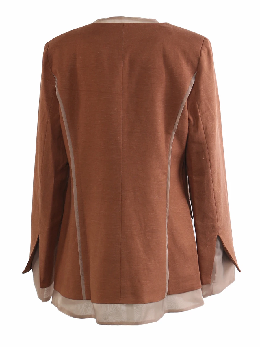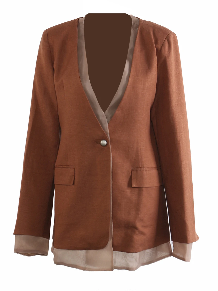 TWOTWINSTYLE Hit Color Casual Two Piece Sets for Women V Neck Long Sleeves Spliced Buttons Blazer High Waist Pant Set Female New