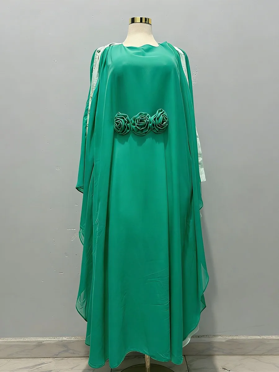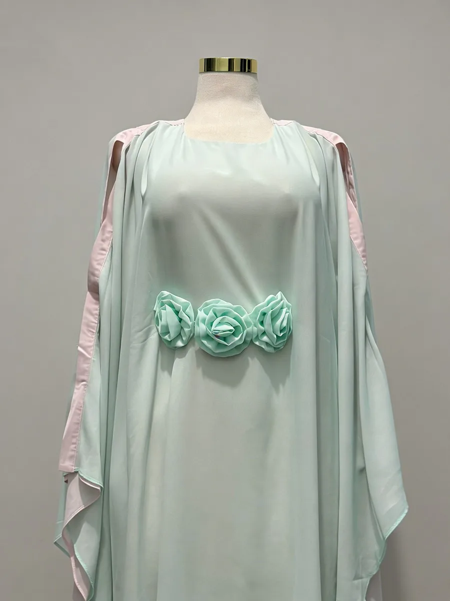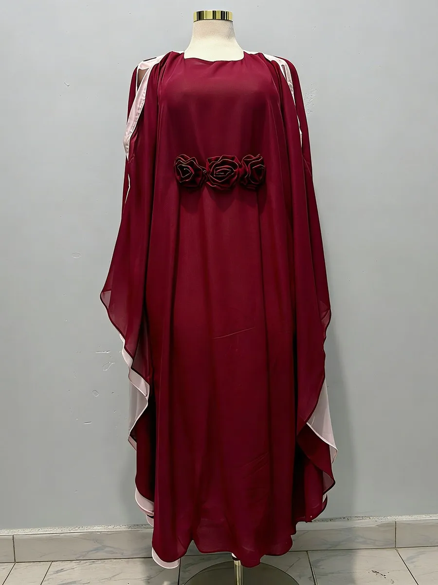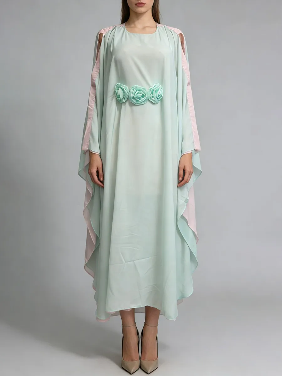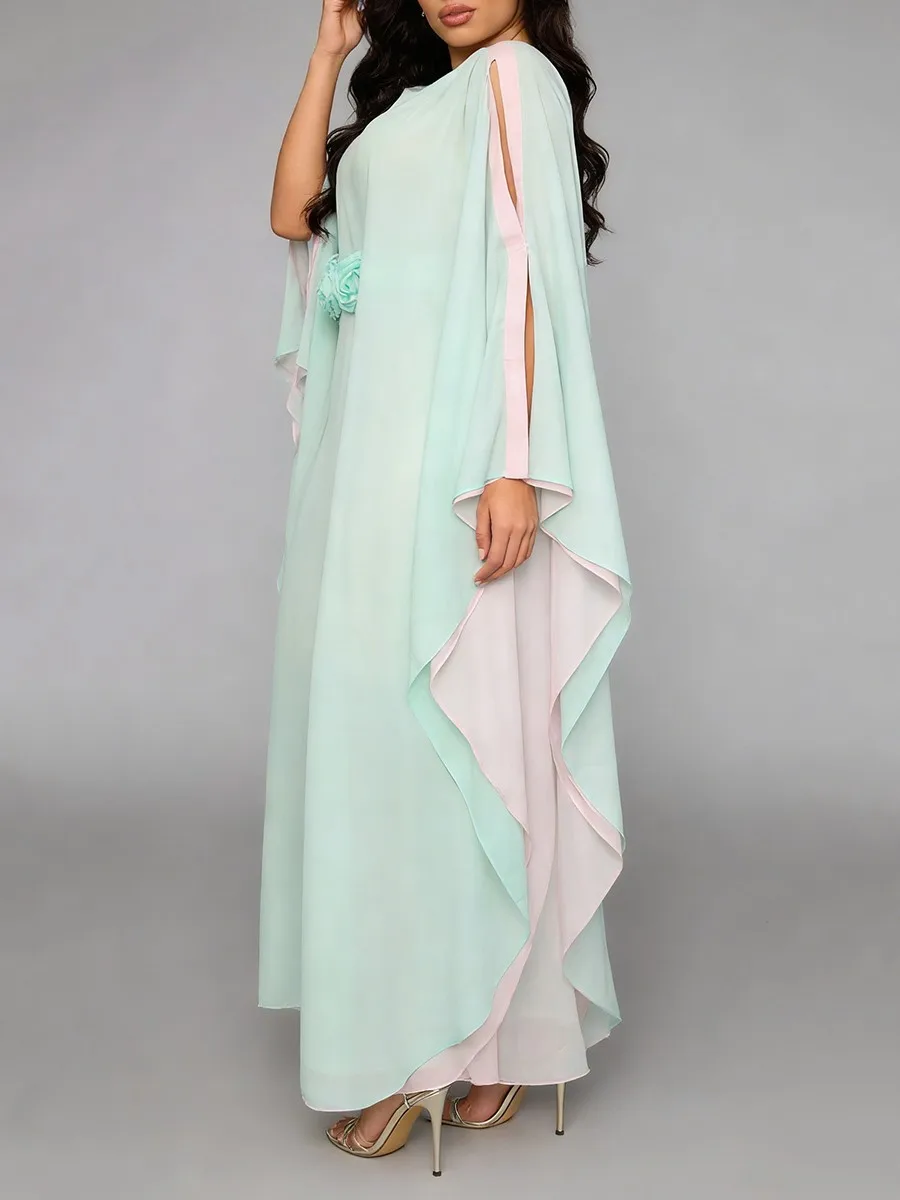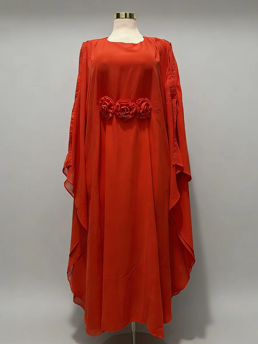 TWOTWINSTYLE Hit Color Loose Spliced 3D Flower Casual Dress for Women Round Neck Batwing Sleeves High Waist Long Dresses Female