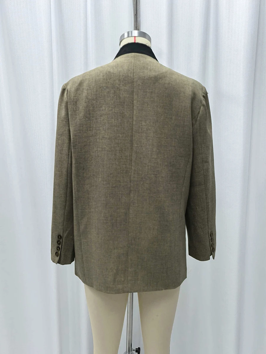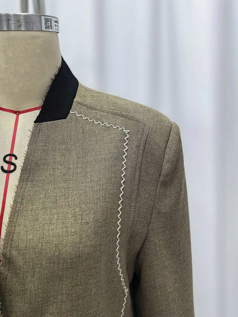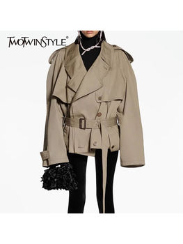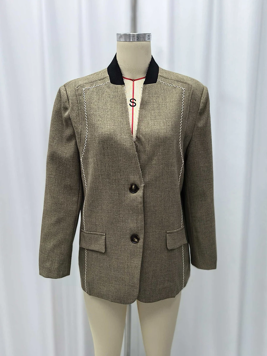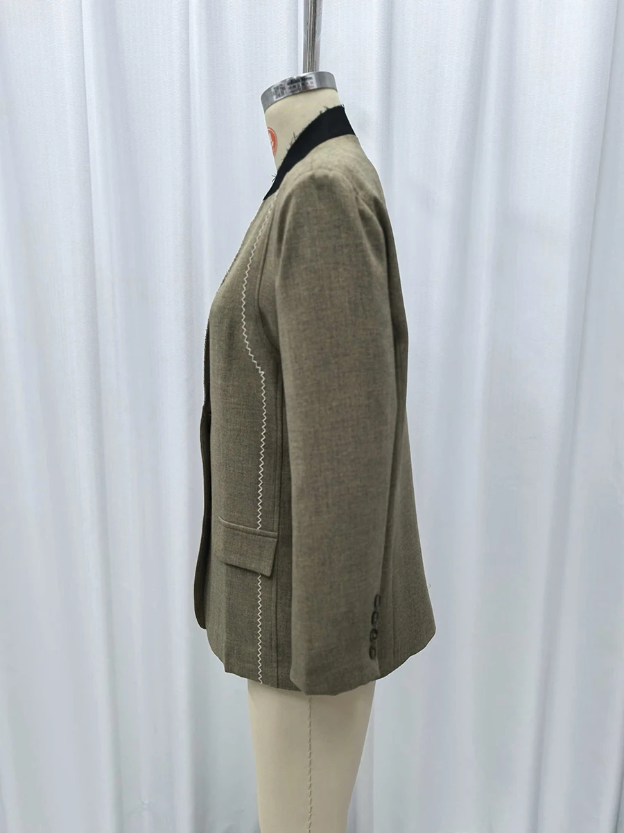 TWOTWINSTYLE Hit Color Minimalist Blazer for Women Lapel Long Sleeve Patchwork Bright Line Design Casual Coat Female Autumn New