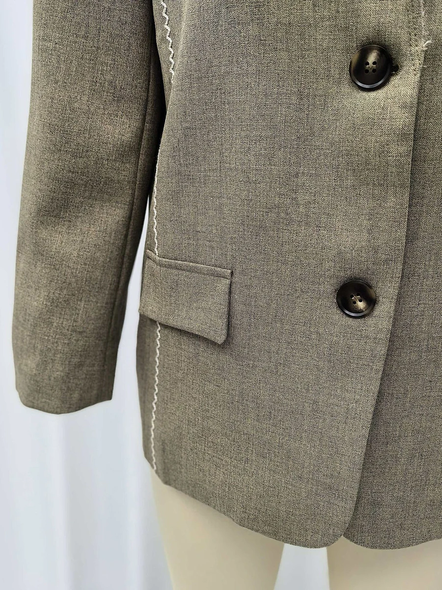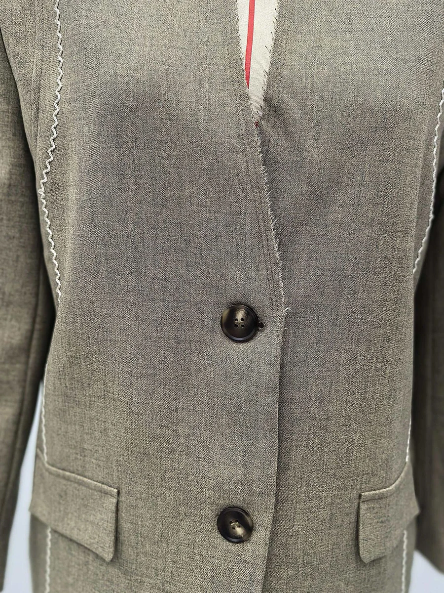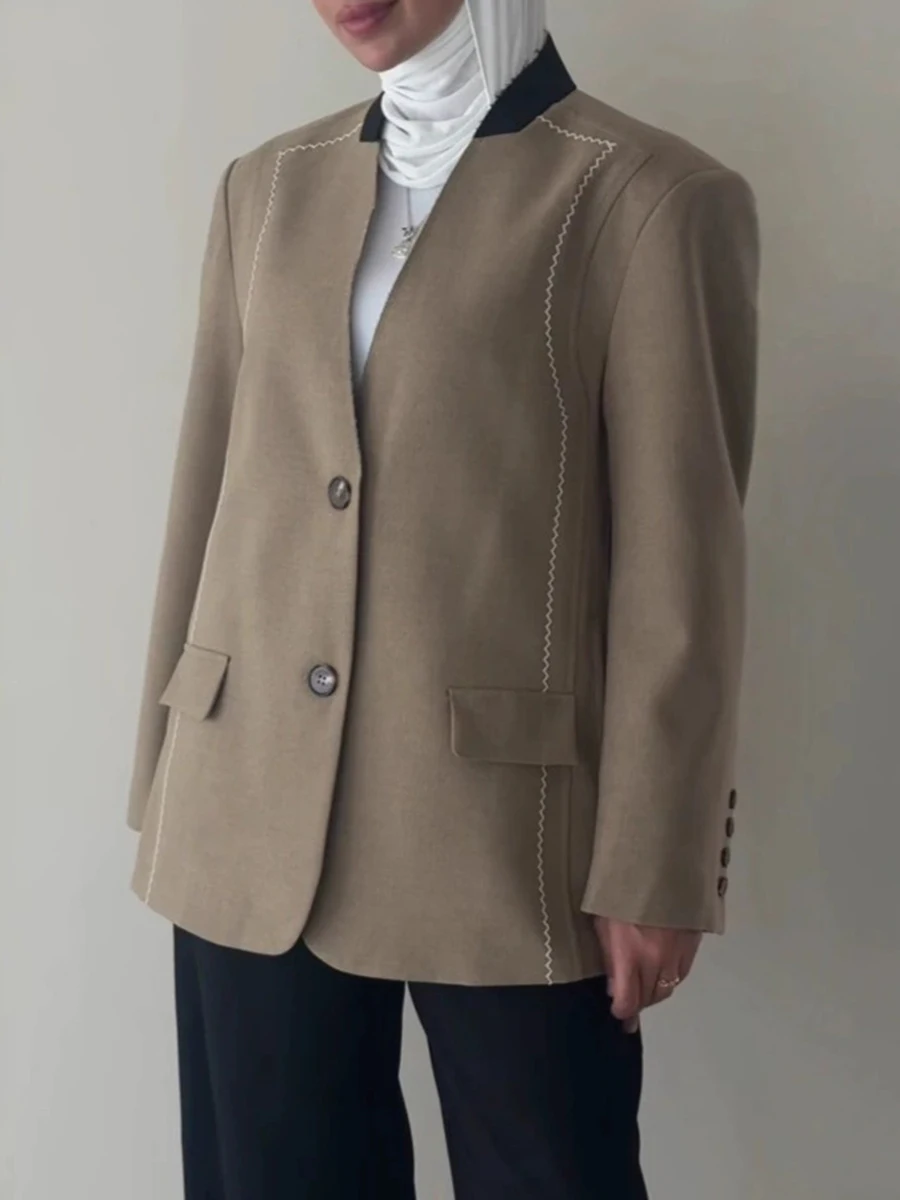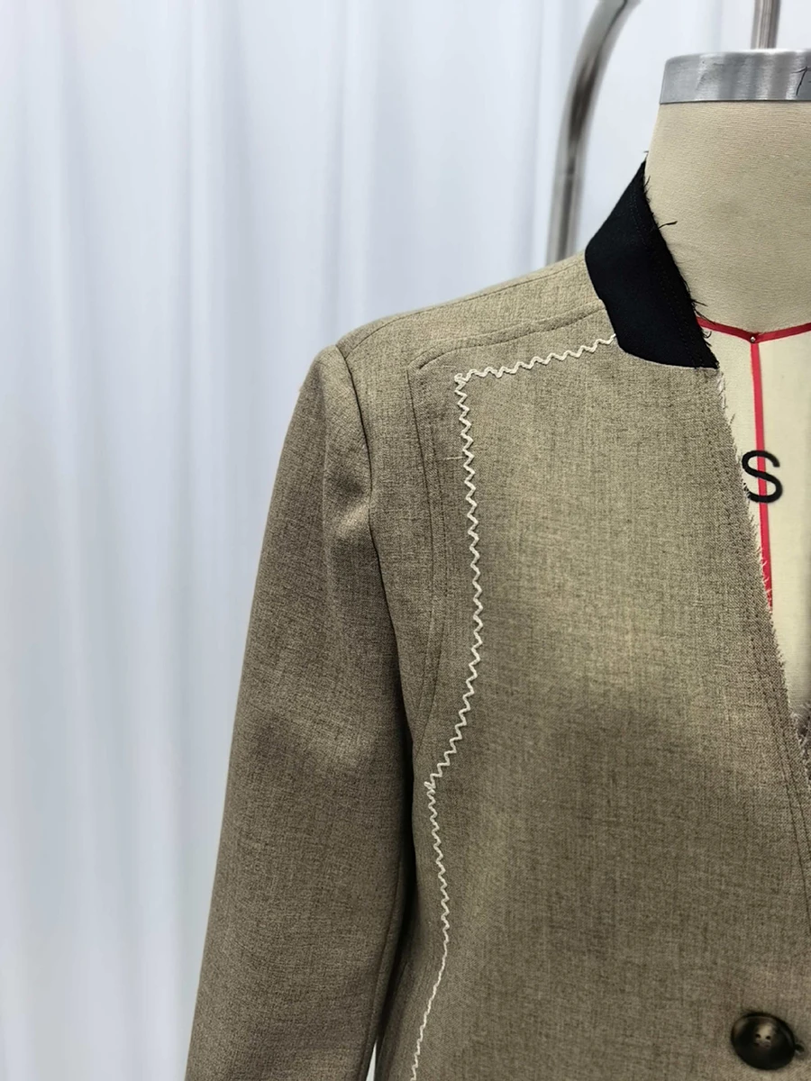 TWOTWINSTYLE Hit Color Minimalist Blazer for Women Lapel Long Sleeve Patchwork Bright Line Design Casual Coat Female Autumn New
