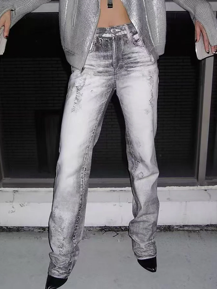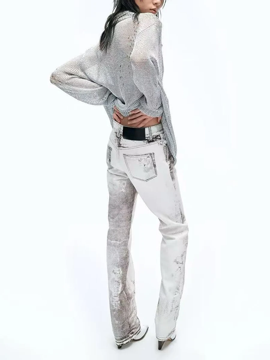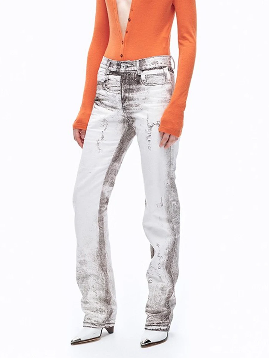 TWOTWINSTYLE Hit Color Slimming High Street Jeans for Women High Waist Temperament Full Length Jean Female Fashion Clothing New
