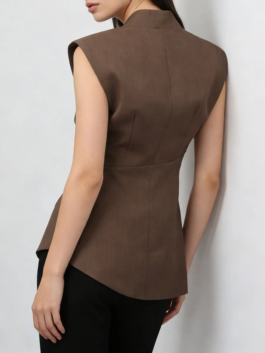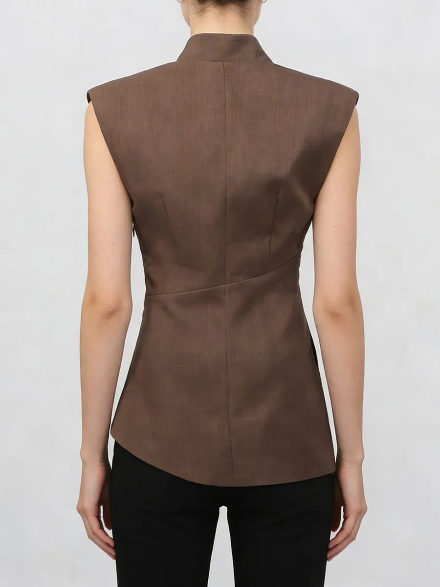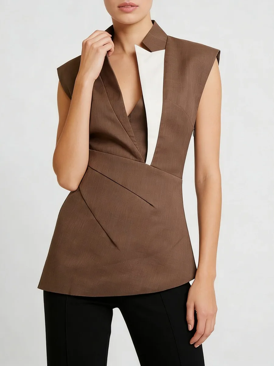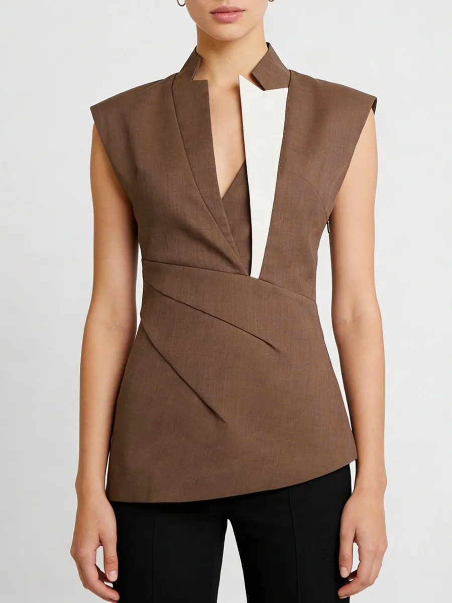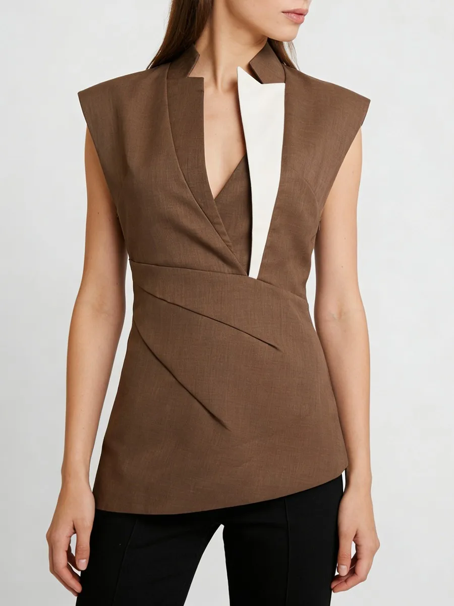 TWOTWINSTYLE Hit Color Slimming Spliced Folds Design Sense Blazer for Women Stand Neck Sleeveless Temperament Blazers Female New