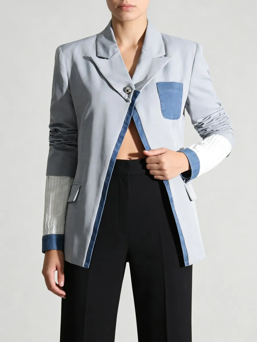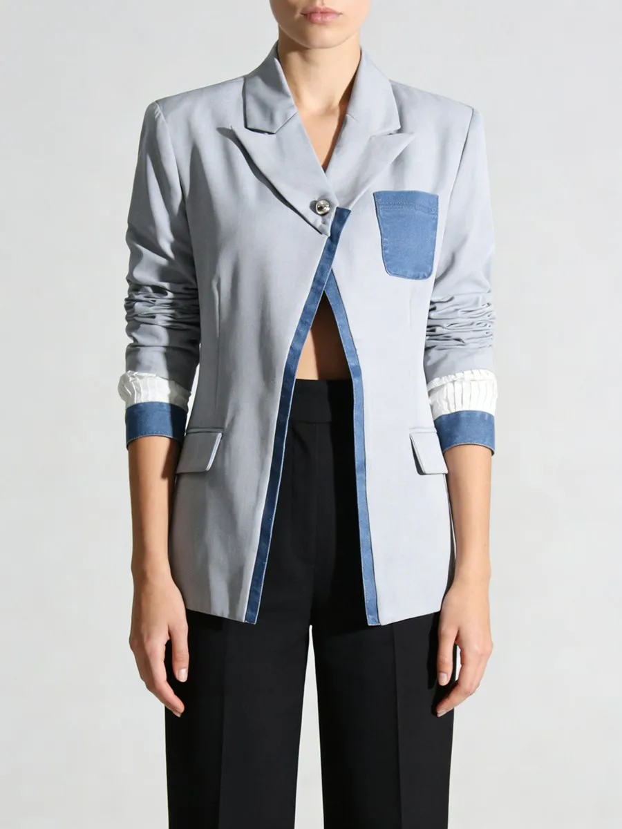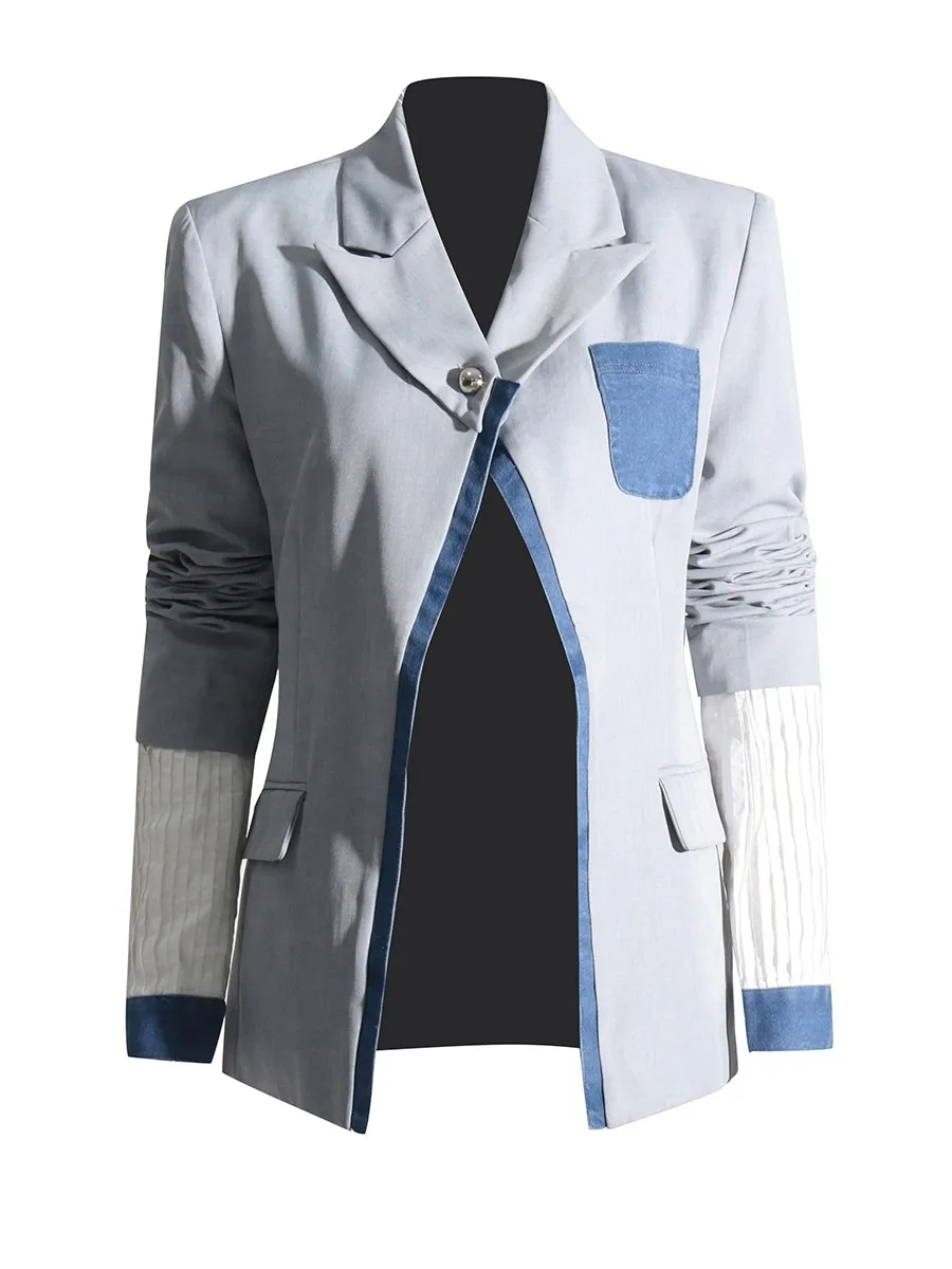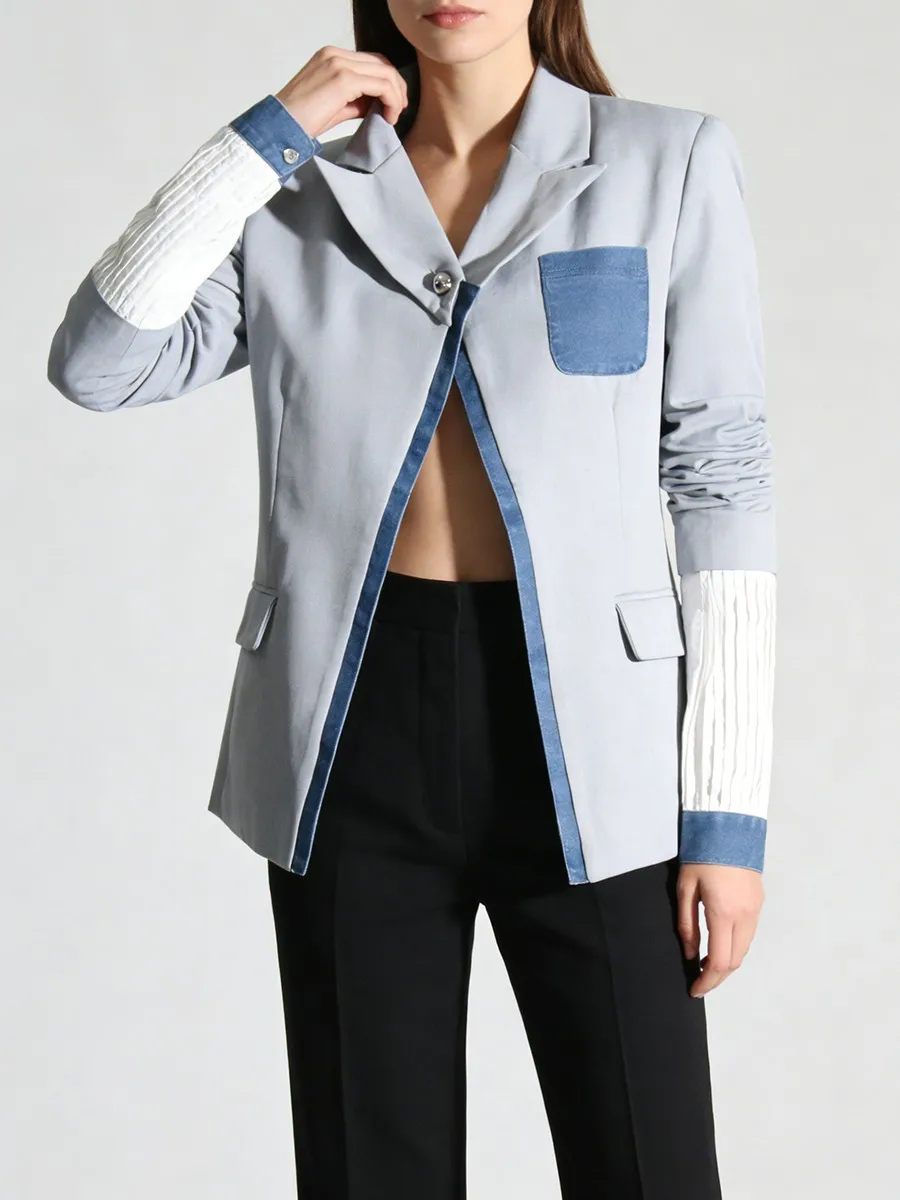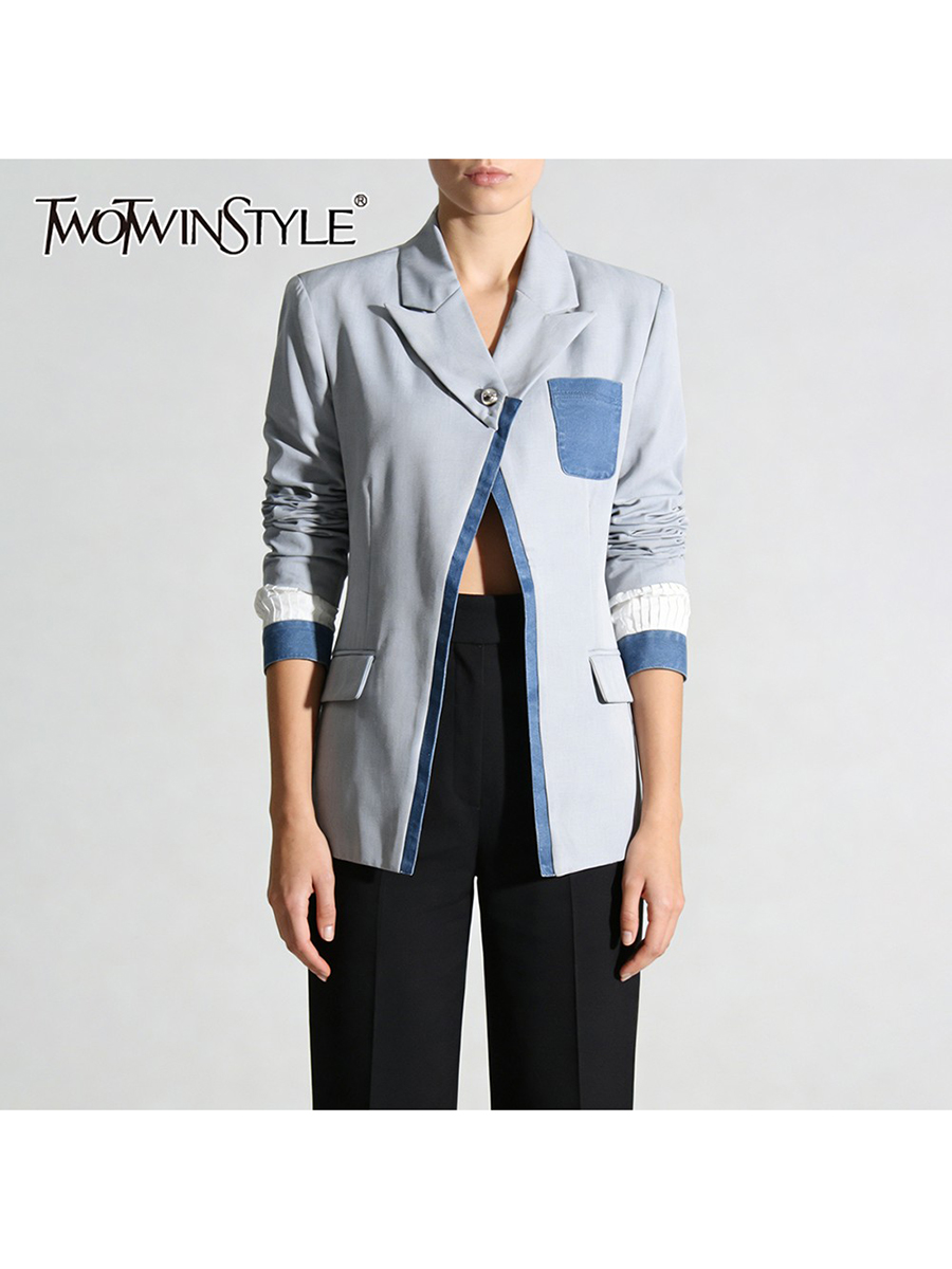 TWOTWINSTYLE Hit Color Slimming Spliced Pocket Design Sense Jackets for Women Lapel Long Sleeves Patchwork Button Jacket Female