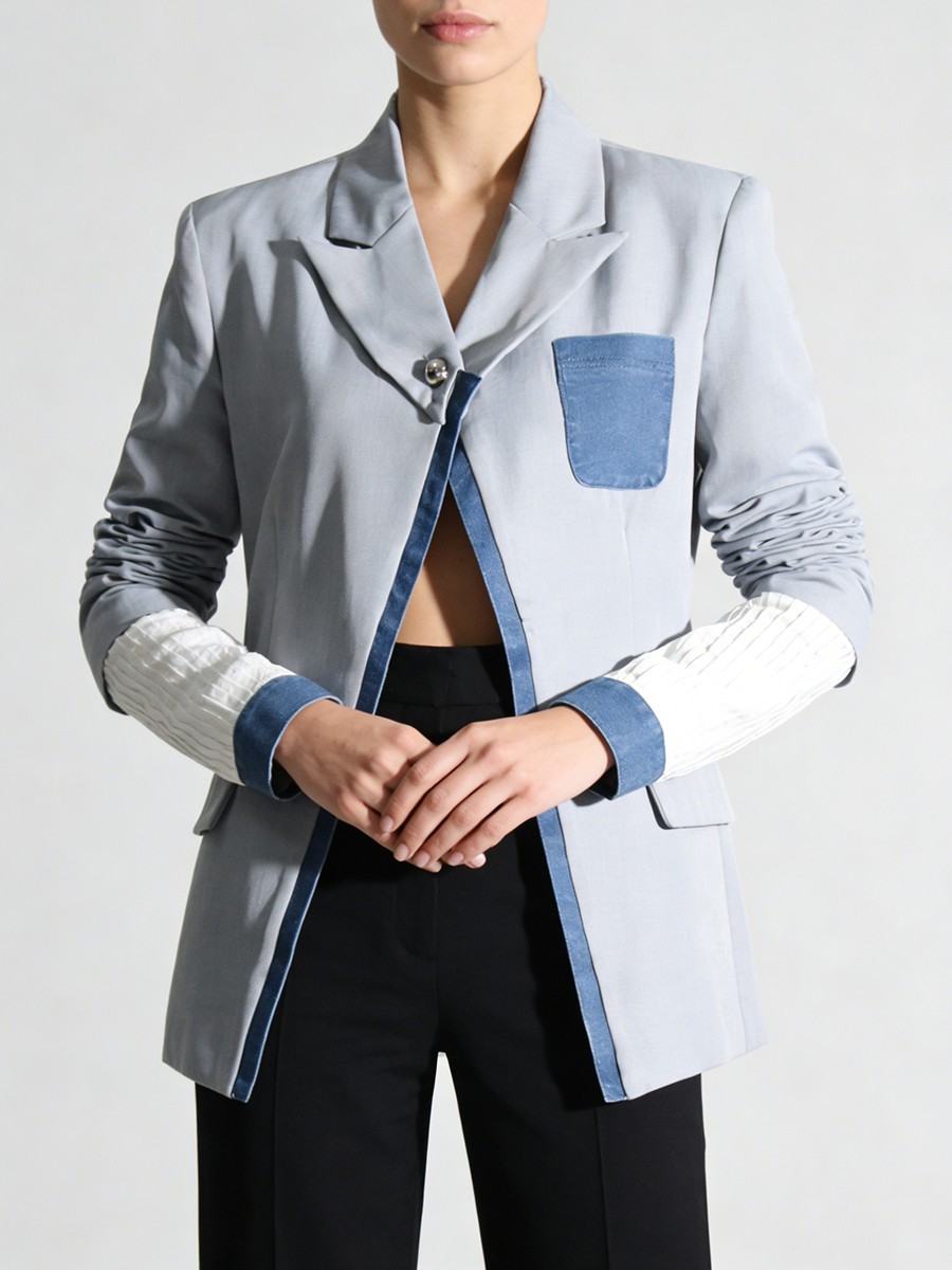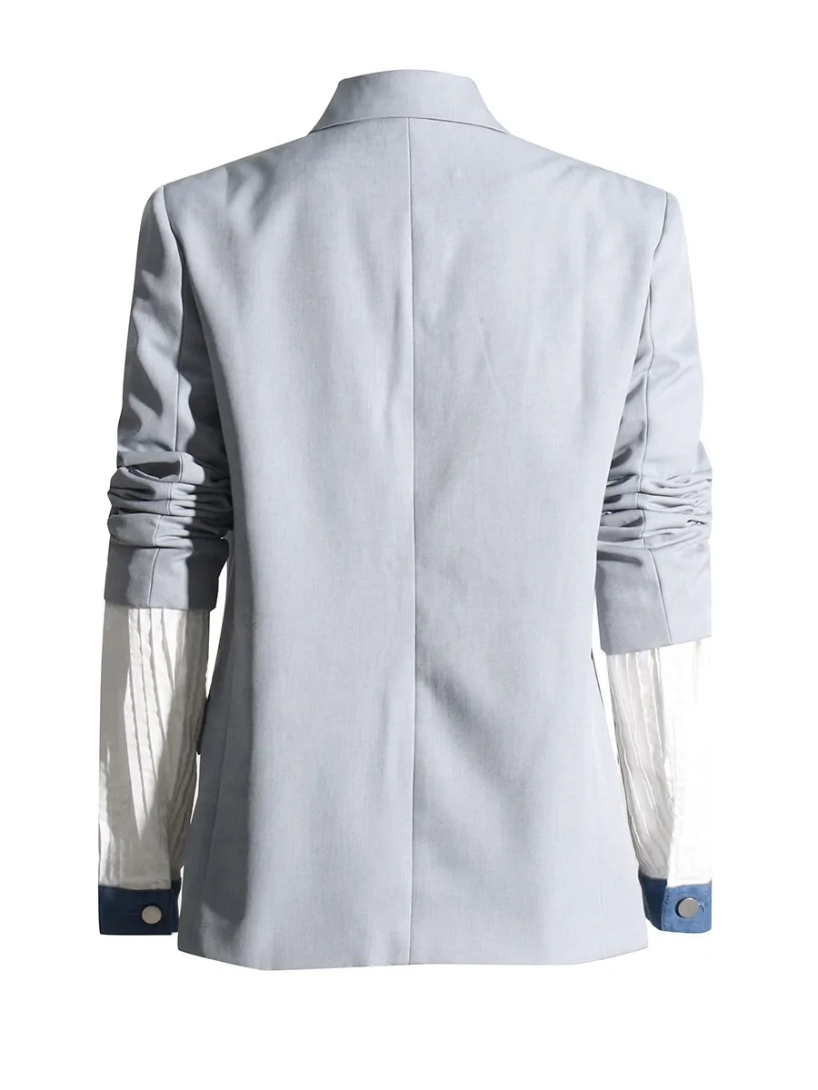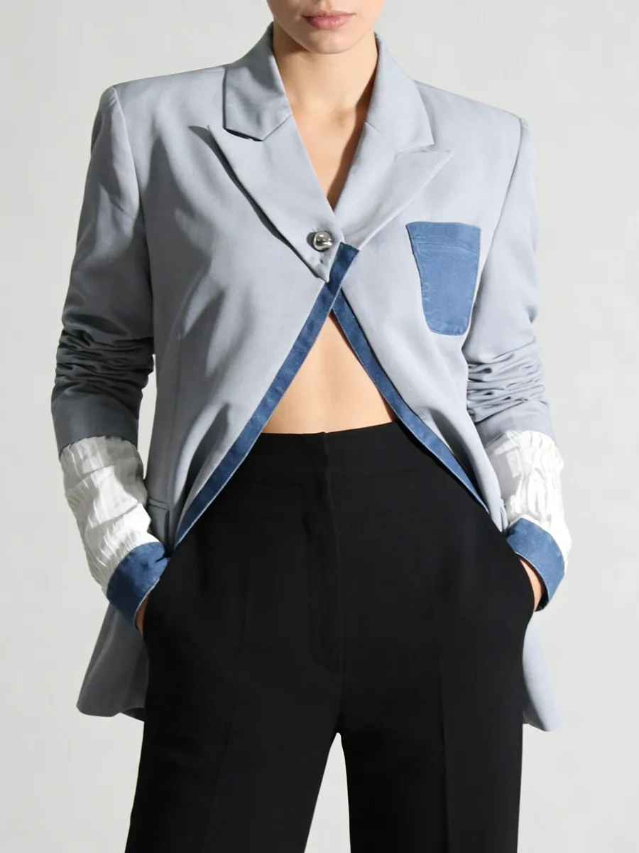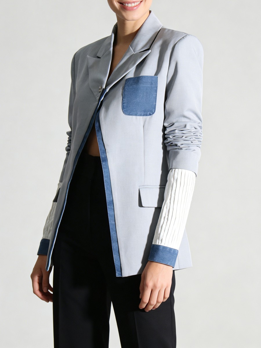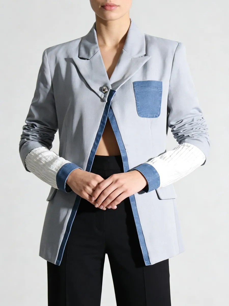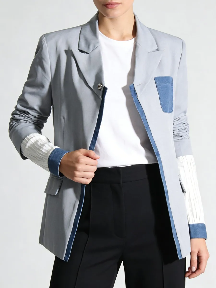 TWOTWINSTYLE Hit Color Slimming Spliced Pocket Design Sense Jackets for Women Lapel Long Sleeves Patchwork Button Jacket Female