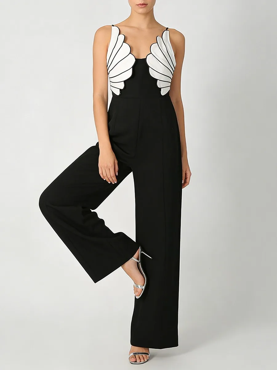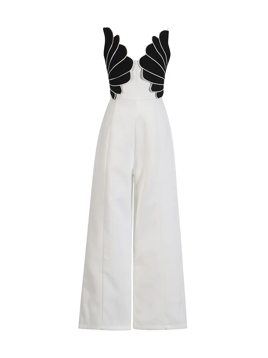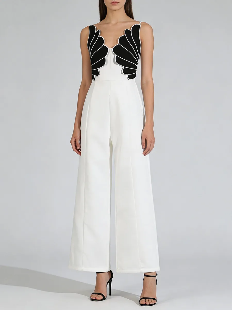 TWOTWINSTYLE Hit Color Spliced Appliques Fashion Jumpsuit for Women V Neck Sleeveless High Waist Casual Jumpsuits Female Clothes