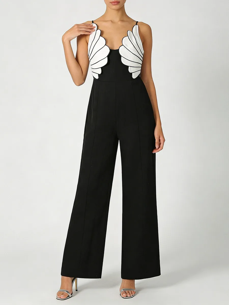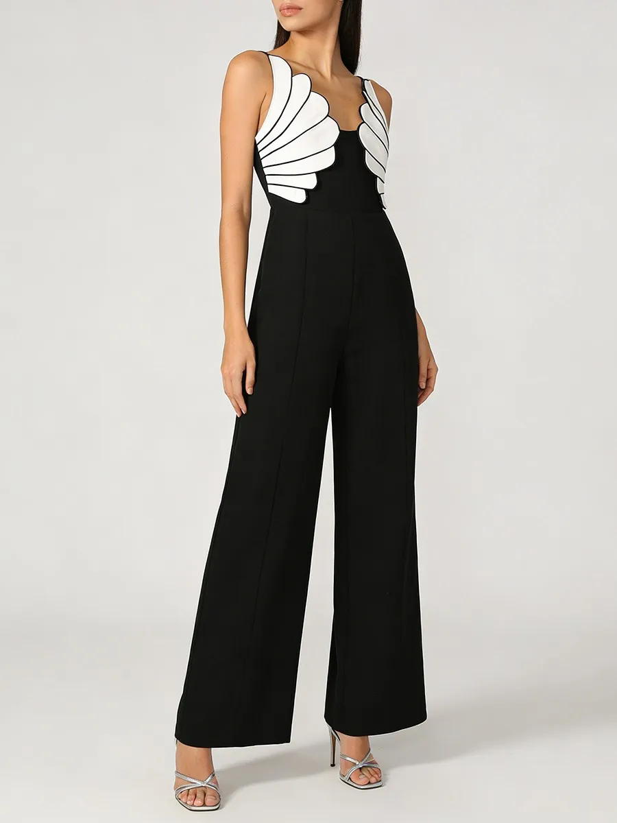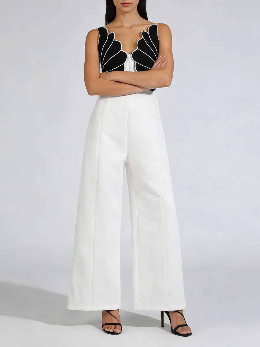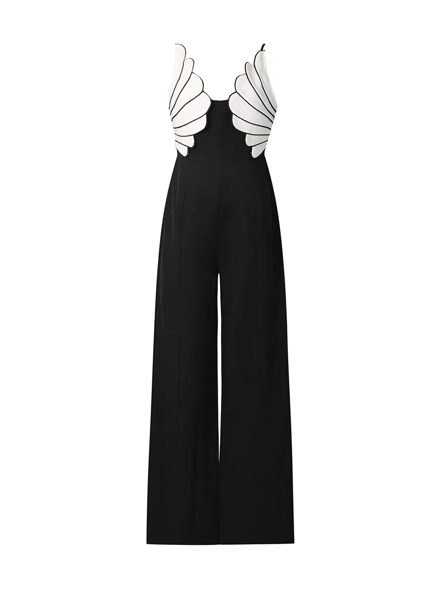TWOTWINSTYLE Hit Color Spliced Appliques Fashion Jumpsuit for Women V Neck Sleeveless High Waist Casual Jumpsuits Female Clothes
