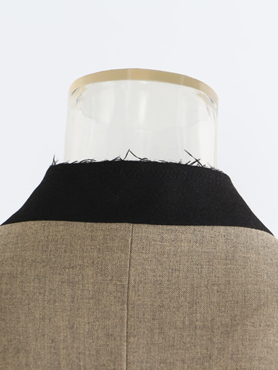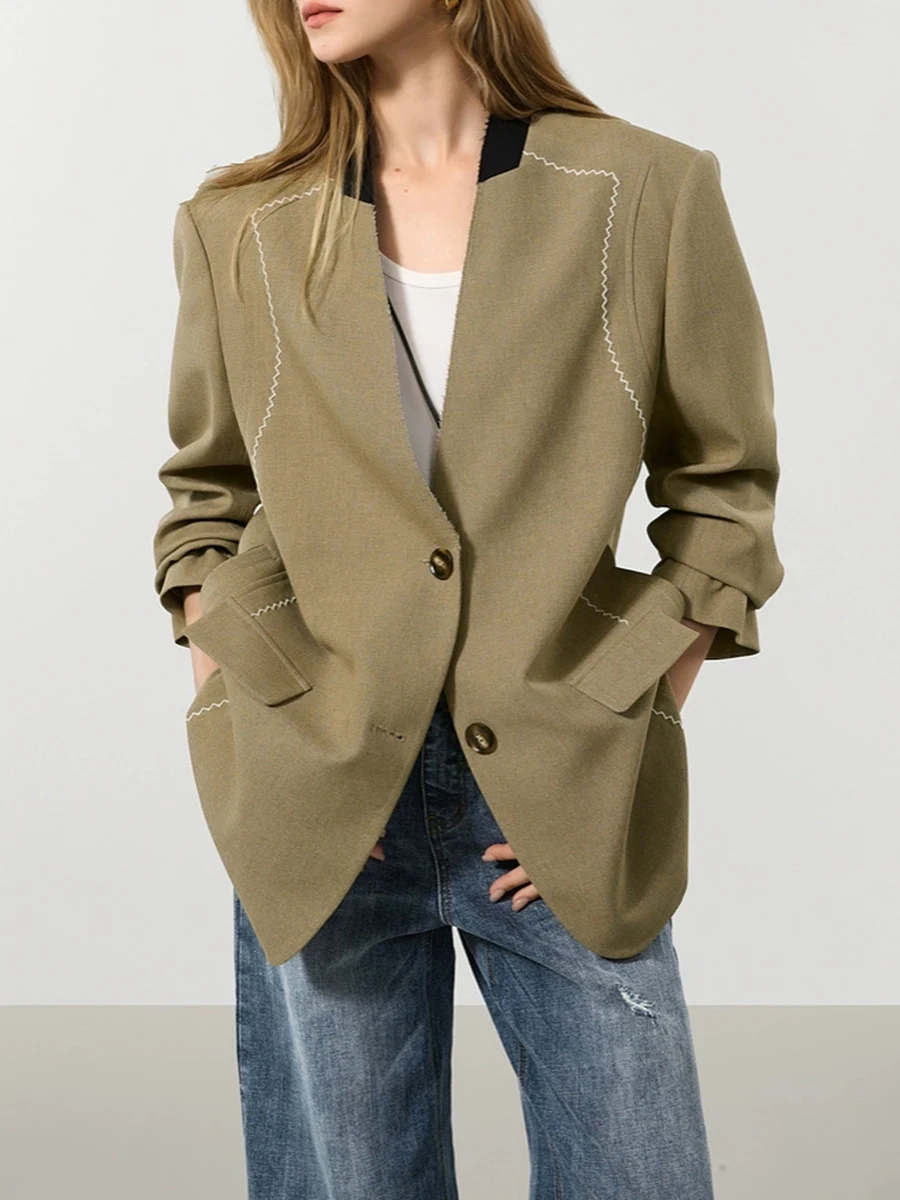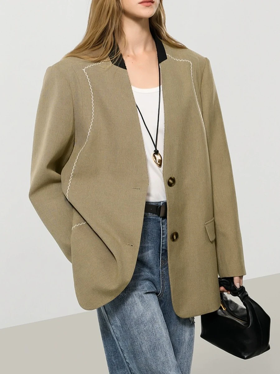 TWOTWINSTYLE Hit Color Spliced Bright Line Temperament Blazers for Women V Neck Long Sleeves Fashion Blazer Female Clothing New
