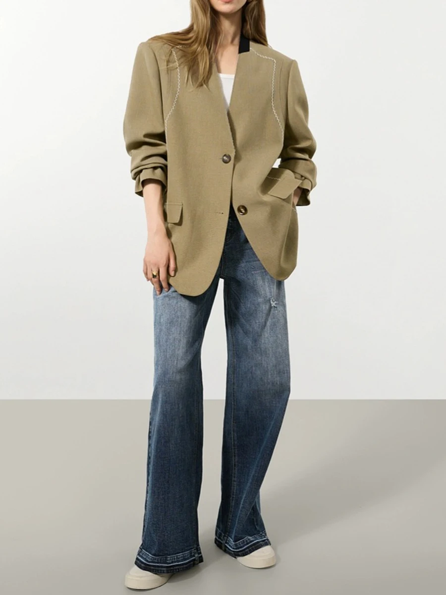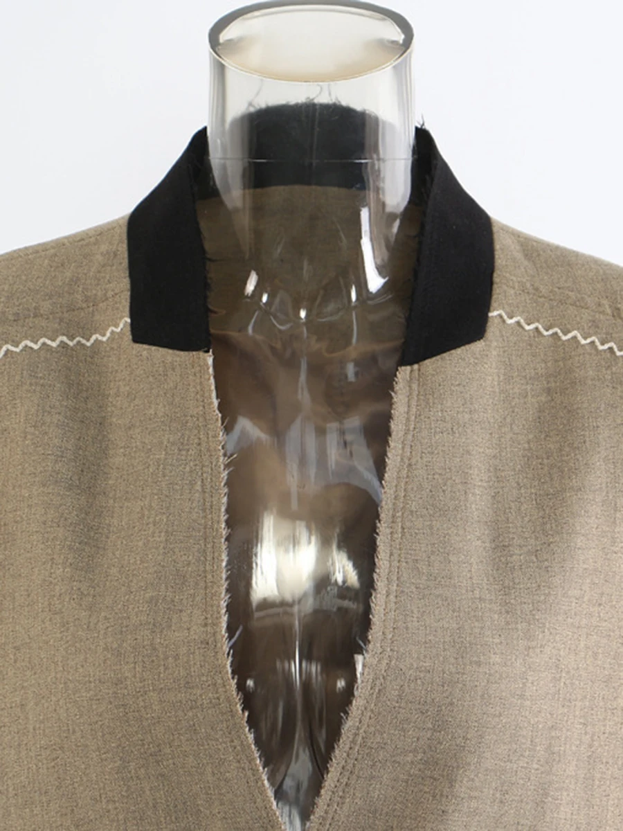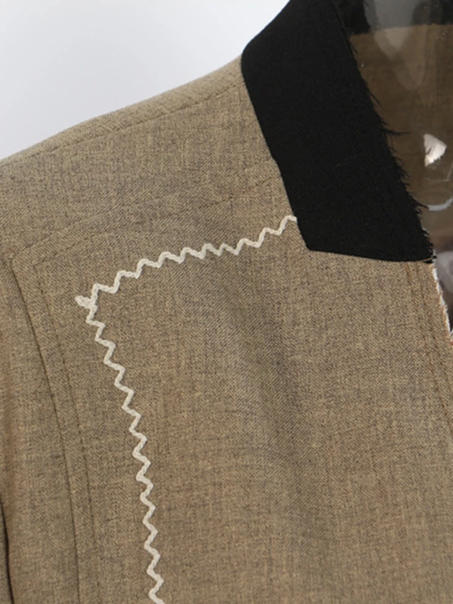 TWOTWINSTYLE Hit Color Spliced Bright Line Temperament Blazers for Women V Neck Long Sleeves Fashion Blazer Female Clothing New
