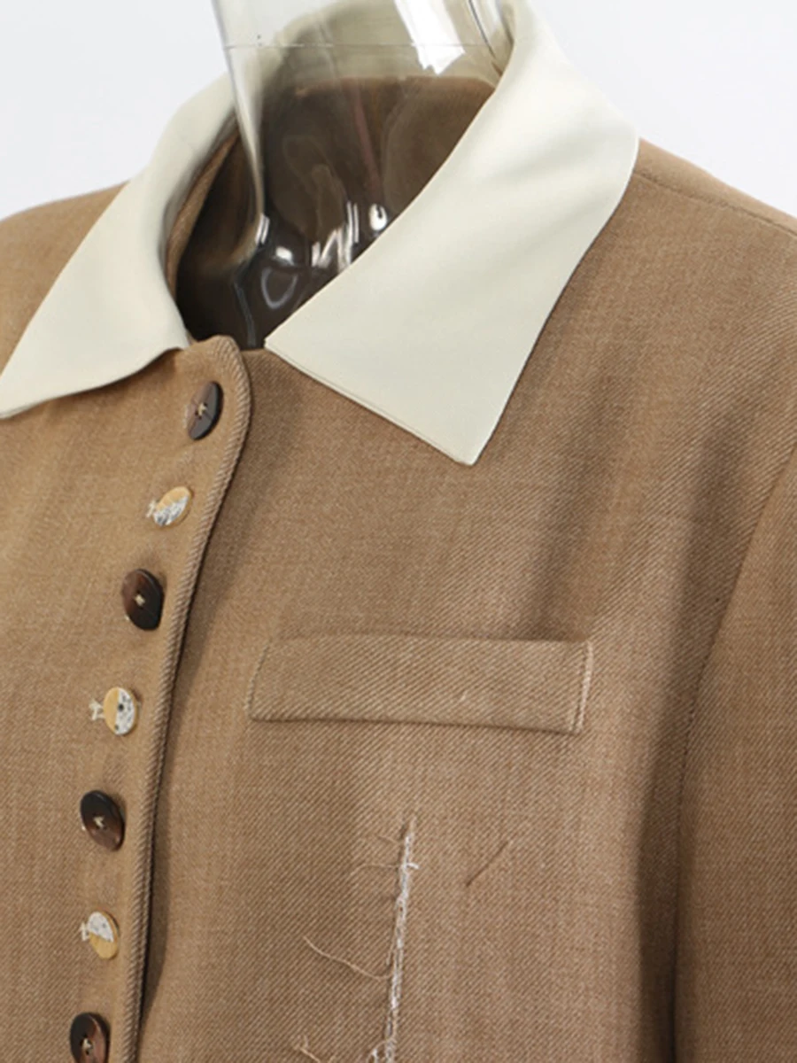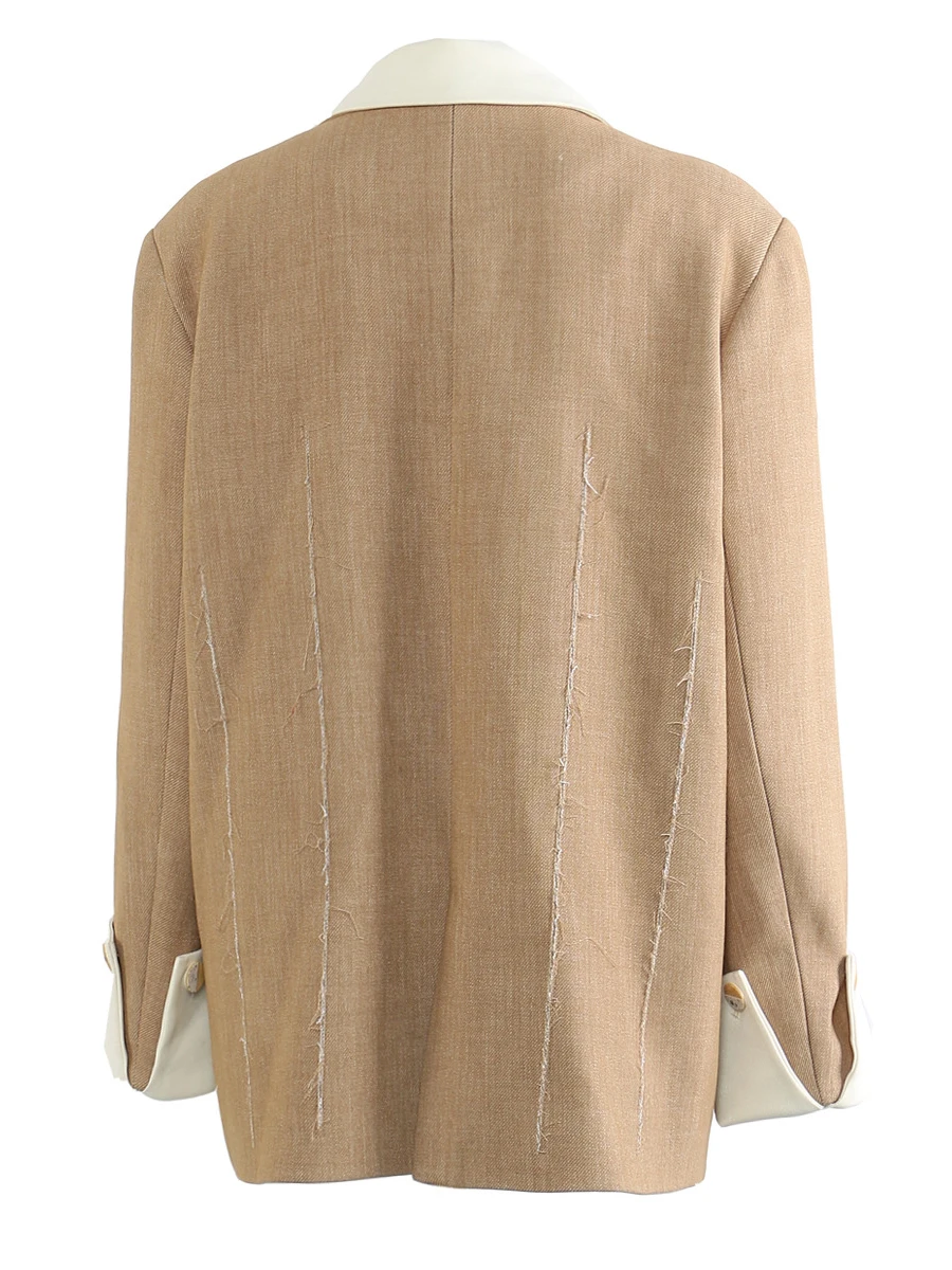 TWOTWINSTYLE Hit Color Spliced Single Breasted Fashion Blazers for Women Lapel Long Sleeves Temperament Blazer Female Clothing