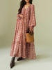 TWOTWINSTYLE Loose Printing Spliced Belt Casual Dresses for Women V Neck Long Sleeves Patchwork Folds Elegant Dress Female New