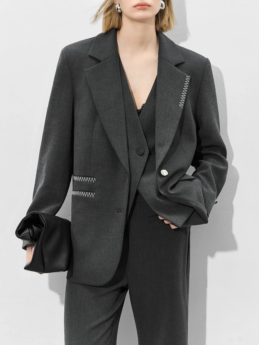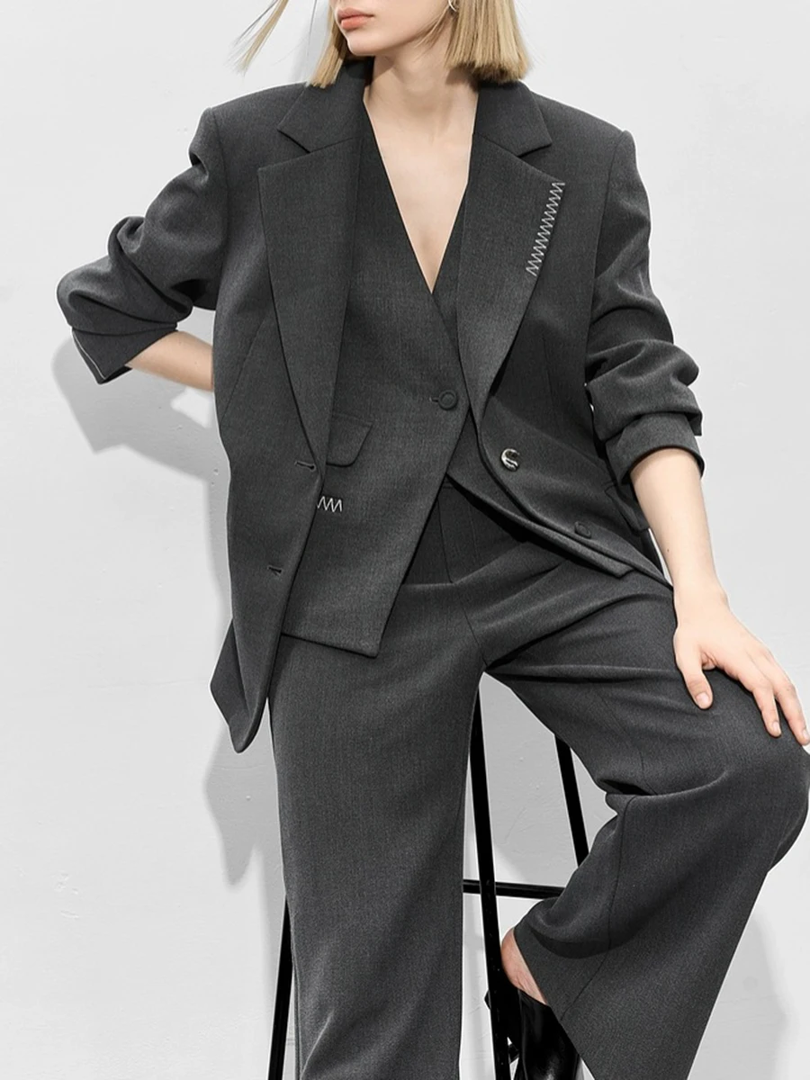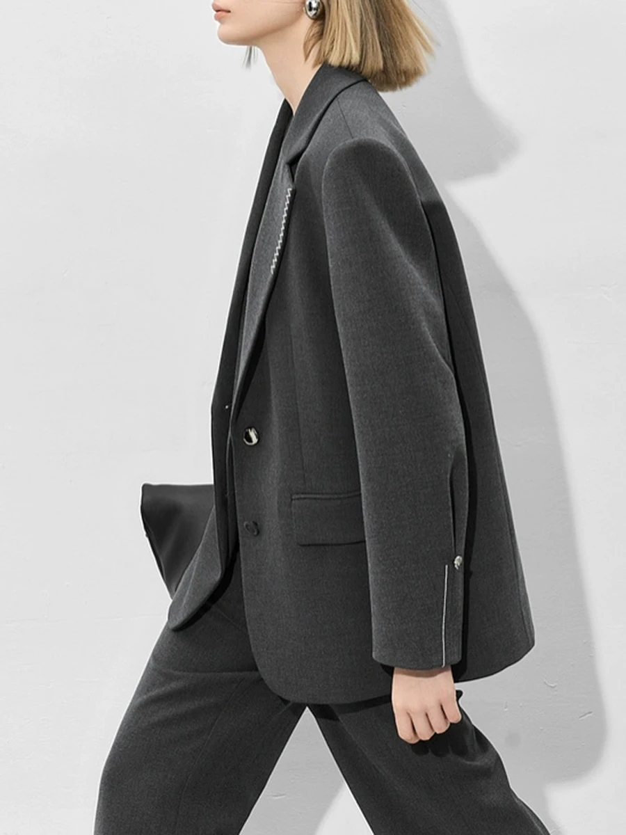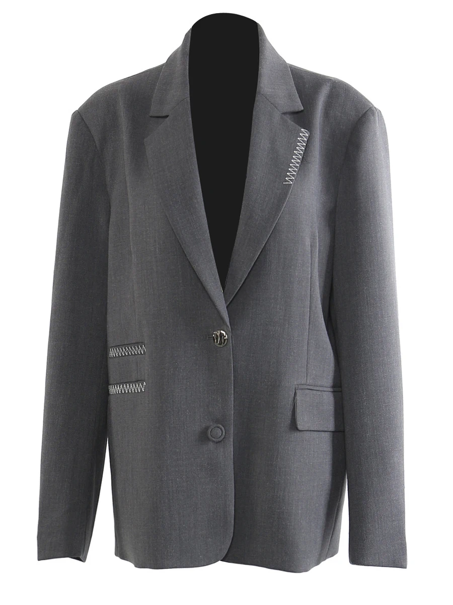 TWOTWINSTYLE Loose Spliced Bright Line False Two Piece Blazers for Women Lapel Long Sleeves Patchwork Buttons Blazer Female New
