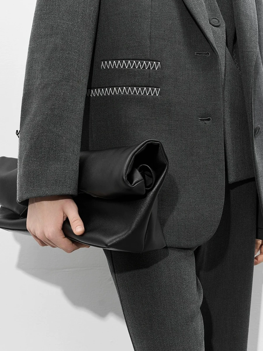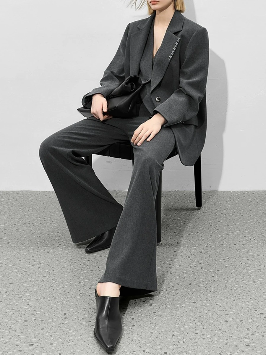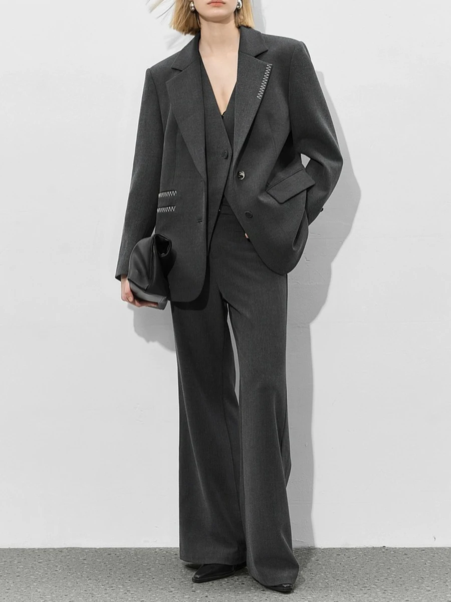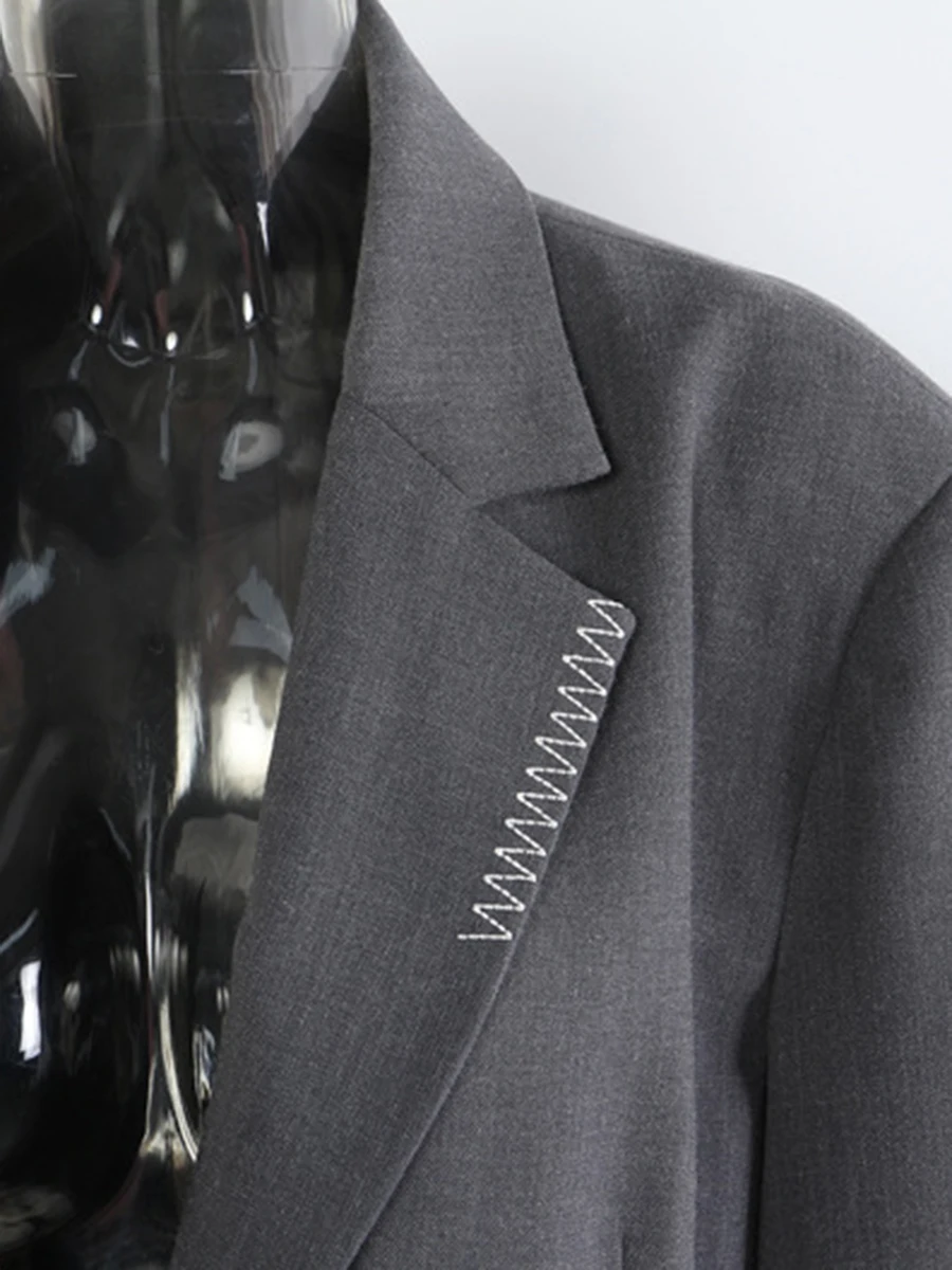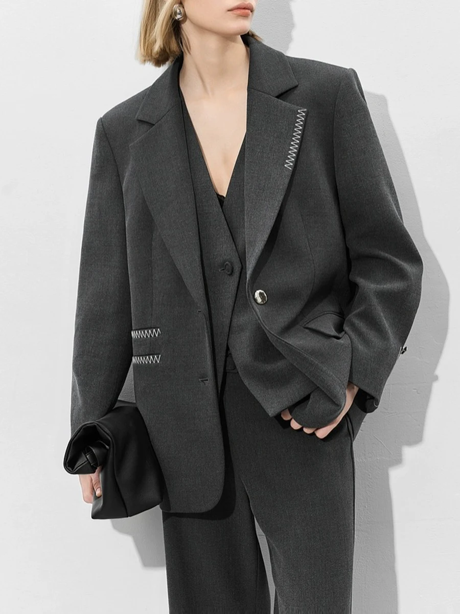 TWOTWINSTYLE Loose Spliced Bright Line False Two Piece Blazers for Women Lapel Long Sleeves Patchwork Buttons Blazer Female New