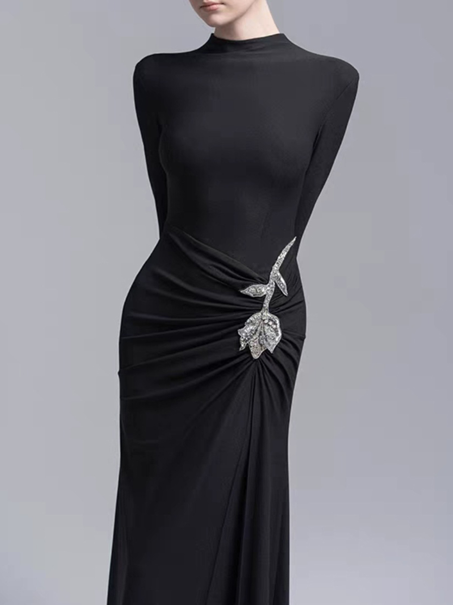 TWOTWINSTYLE Mimimalist Solid Evening Dresses for Women Stand Neck Long Sleeve High Waist Spliced Sequins Rose Dress Female New