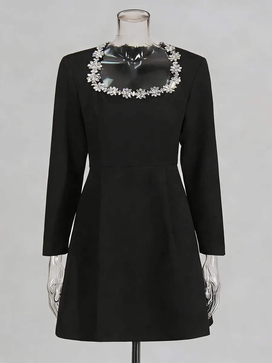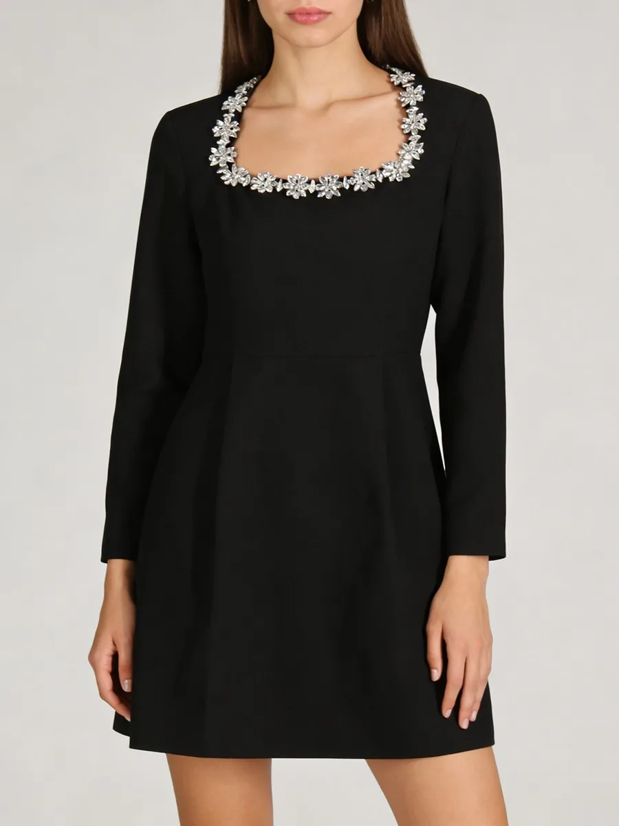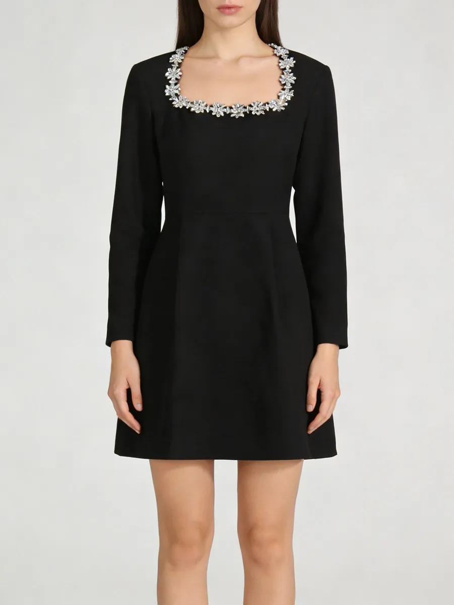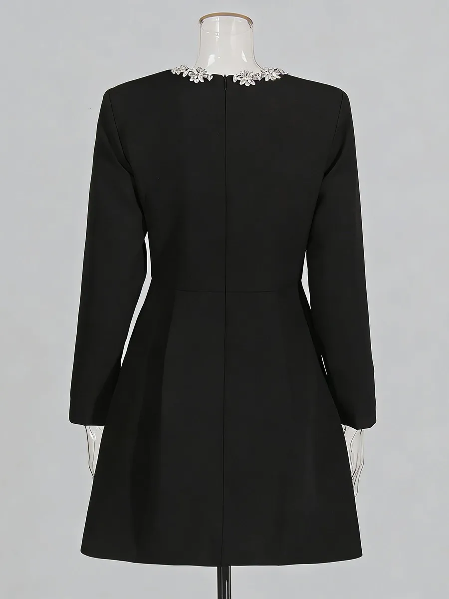 TWOTWINSTYLE Minimalist Spliced Diamonds Slimming Dress for Women Square Neck Long Sleeves High Waist Elegant Dresses Female New