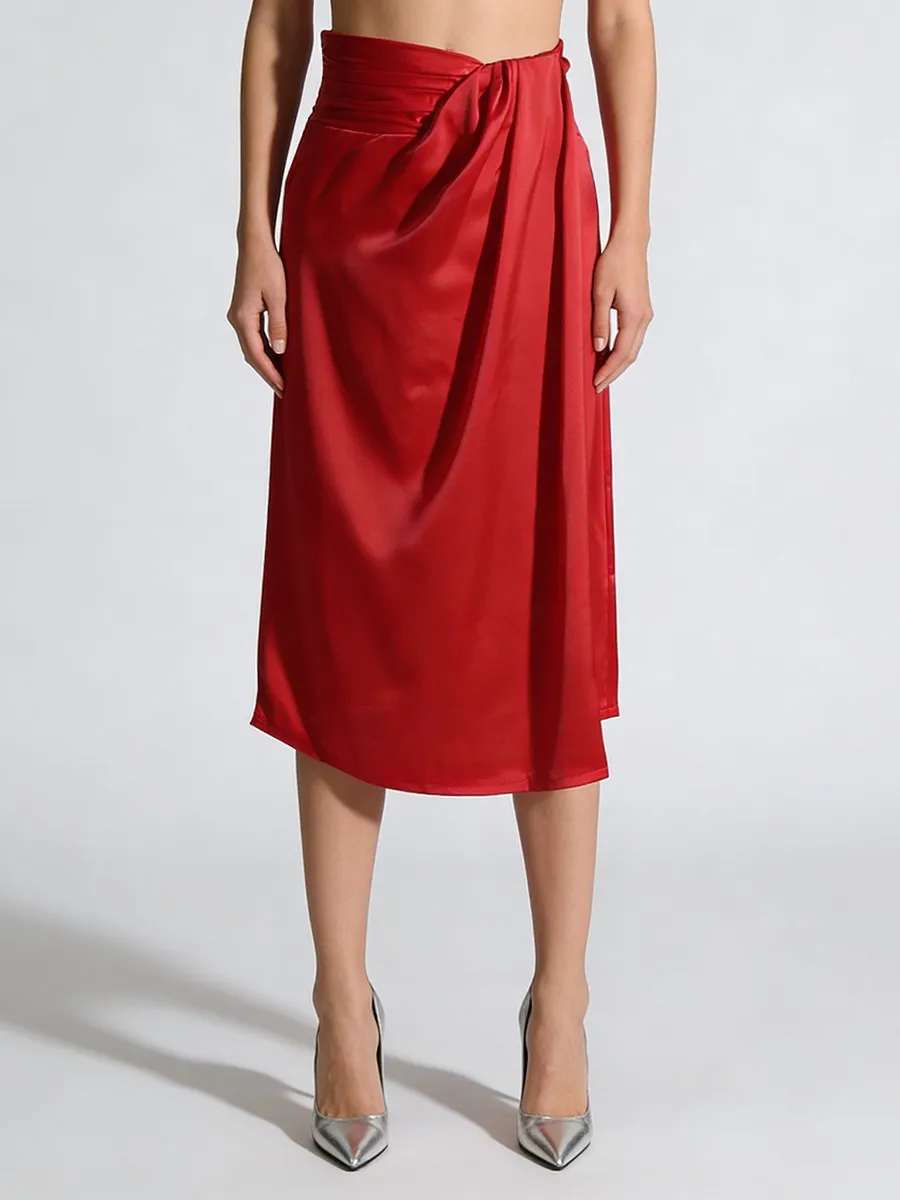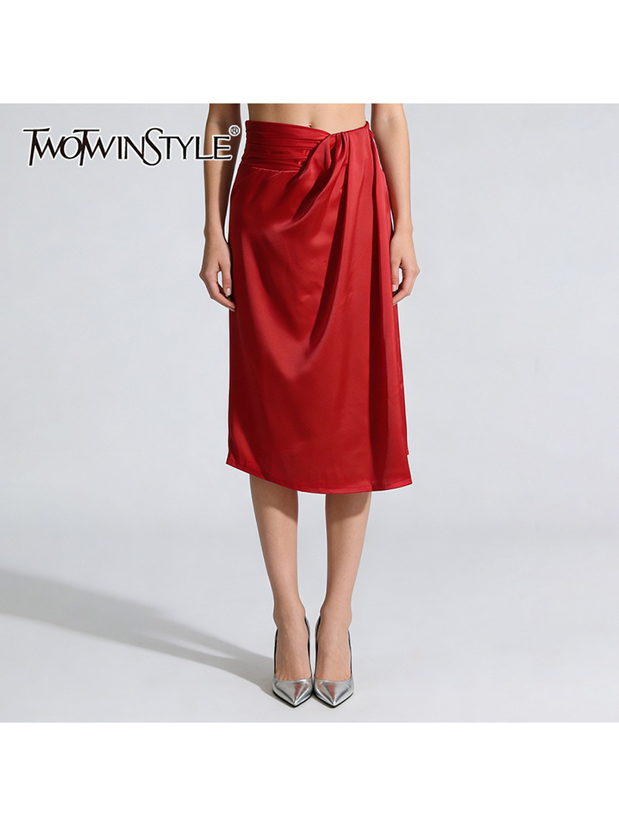 TWOTWINSTYLE Minimalist Spliced Lace Up Irregular Skirts for Women High Waist Split Vintage Skirt Female Fashion Clothing New