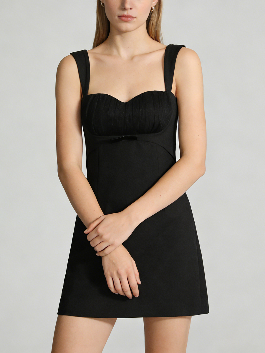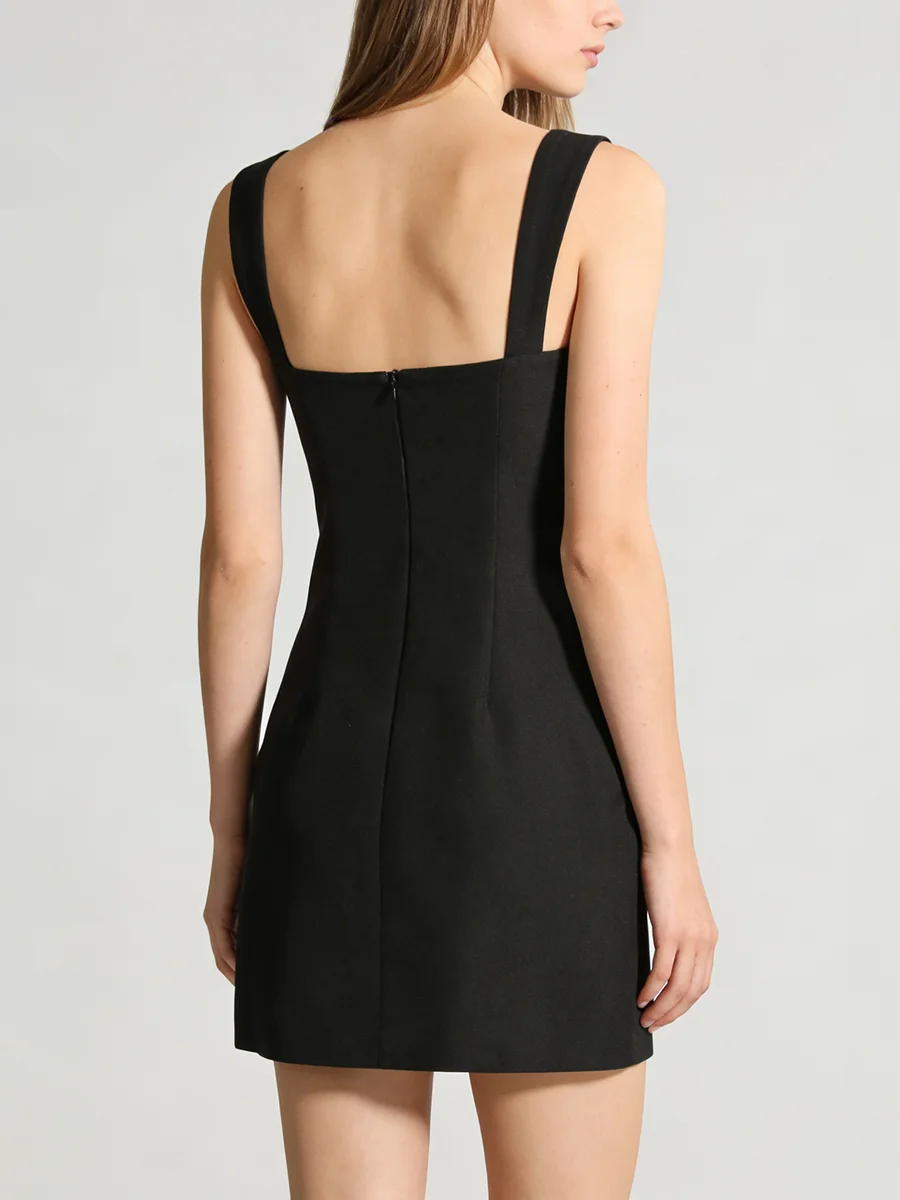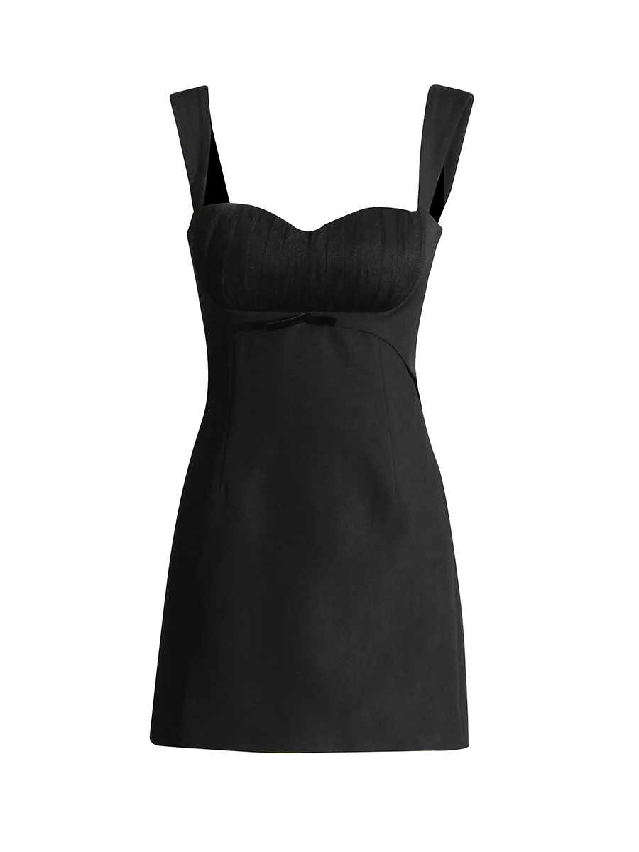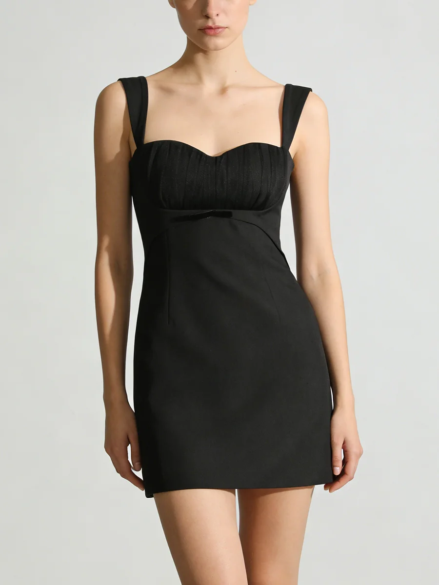 TWOTWINSTYLE Minimalist Spliced Pleating Slimming Dresses for Women Square Neck Sleeveless High Waist Elegant Mini Dress Female