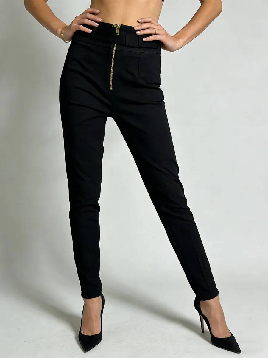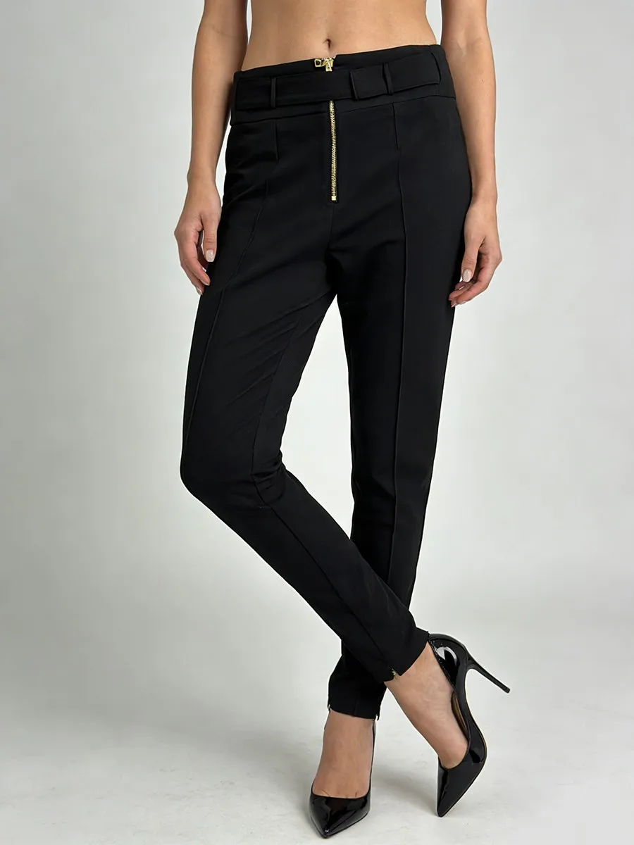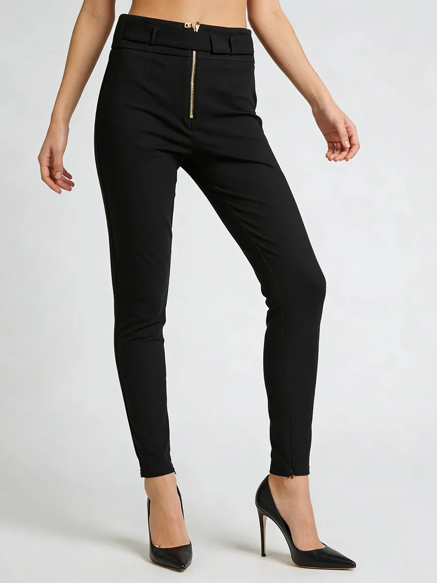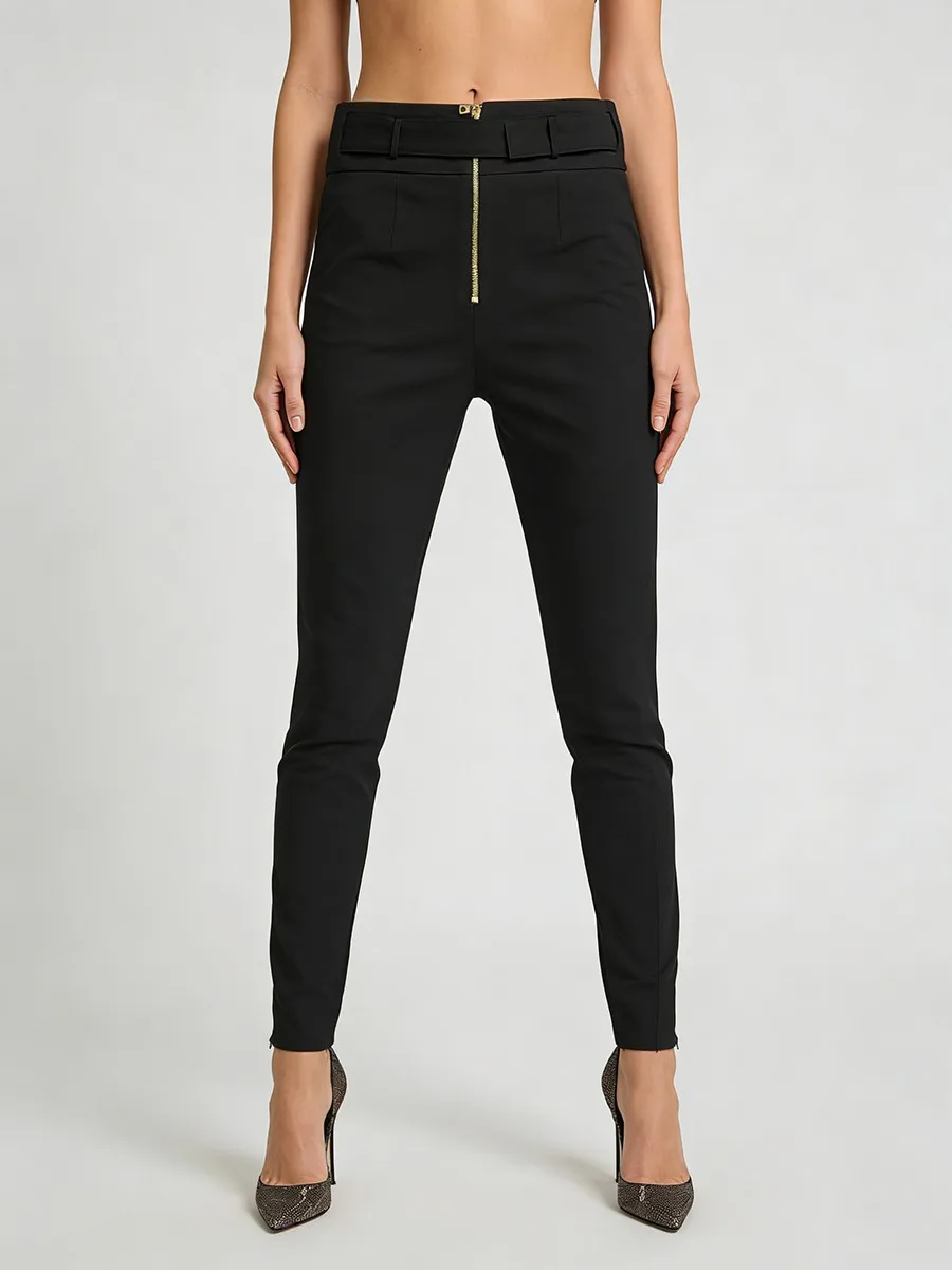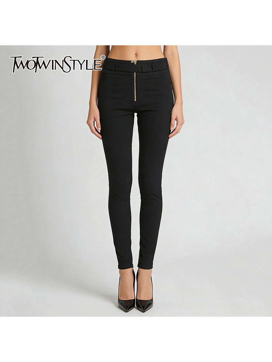 TWOTWINSTYLE Minimalist Spliced Zipper Slimming Pants for Women High Waist Patchwork Belt Fashion Pant Female 2026 Spring New