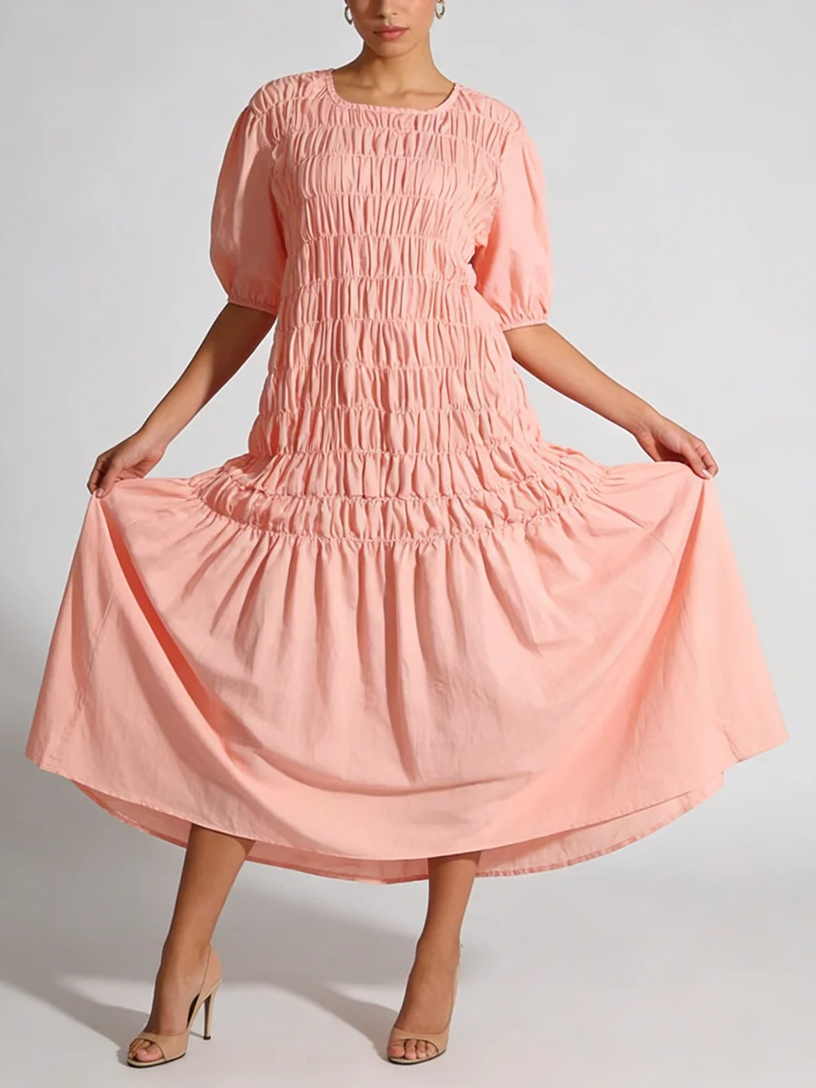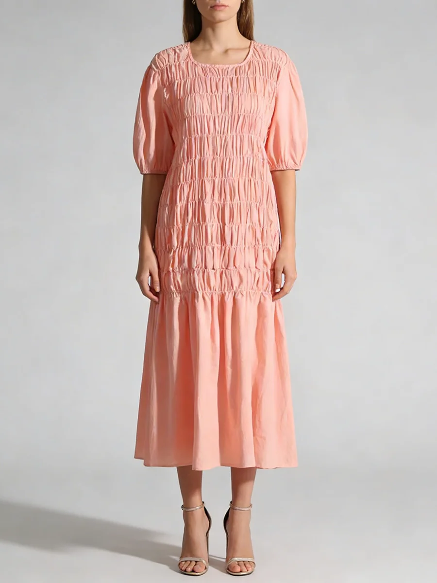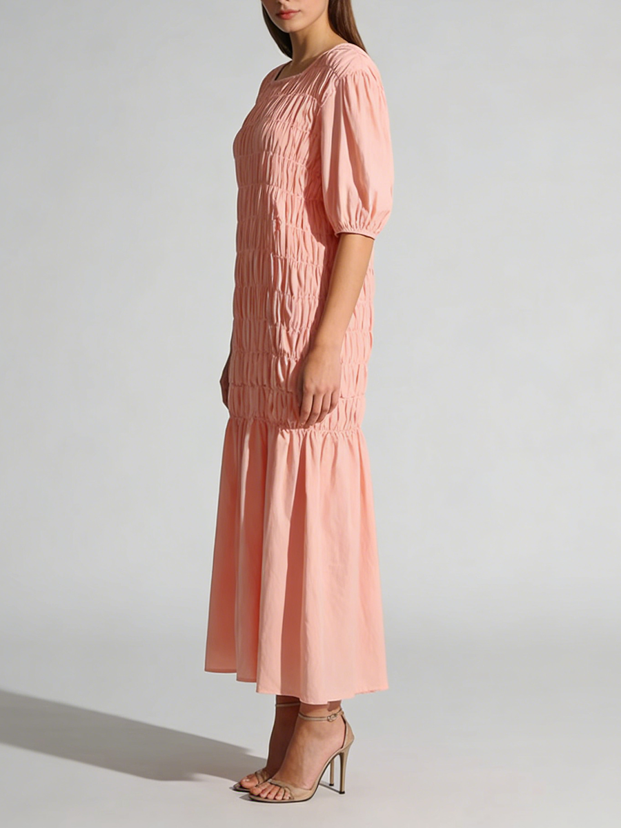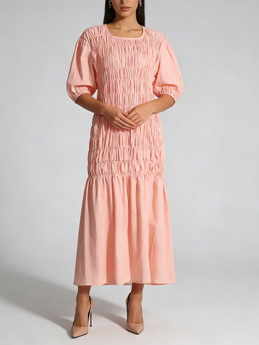 TWOTWINSTYLE Pink Loose Spliced Shirring Fashion Dreses for Women Square Neck Half Sleeves Casual Long Dress Female Clothing New