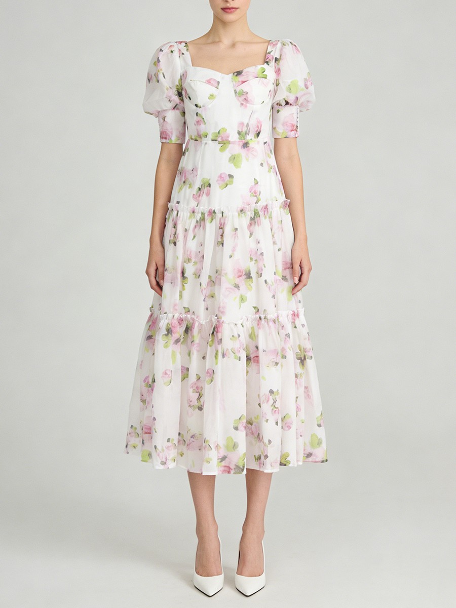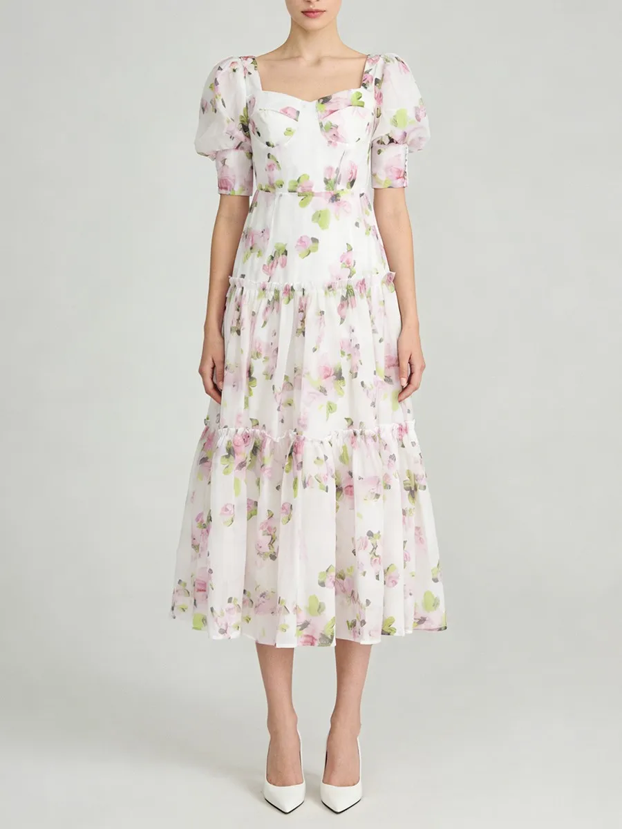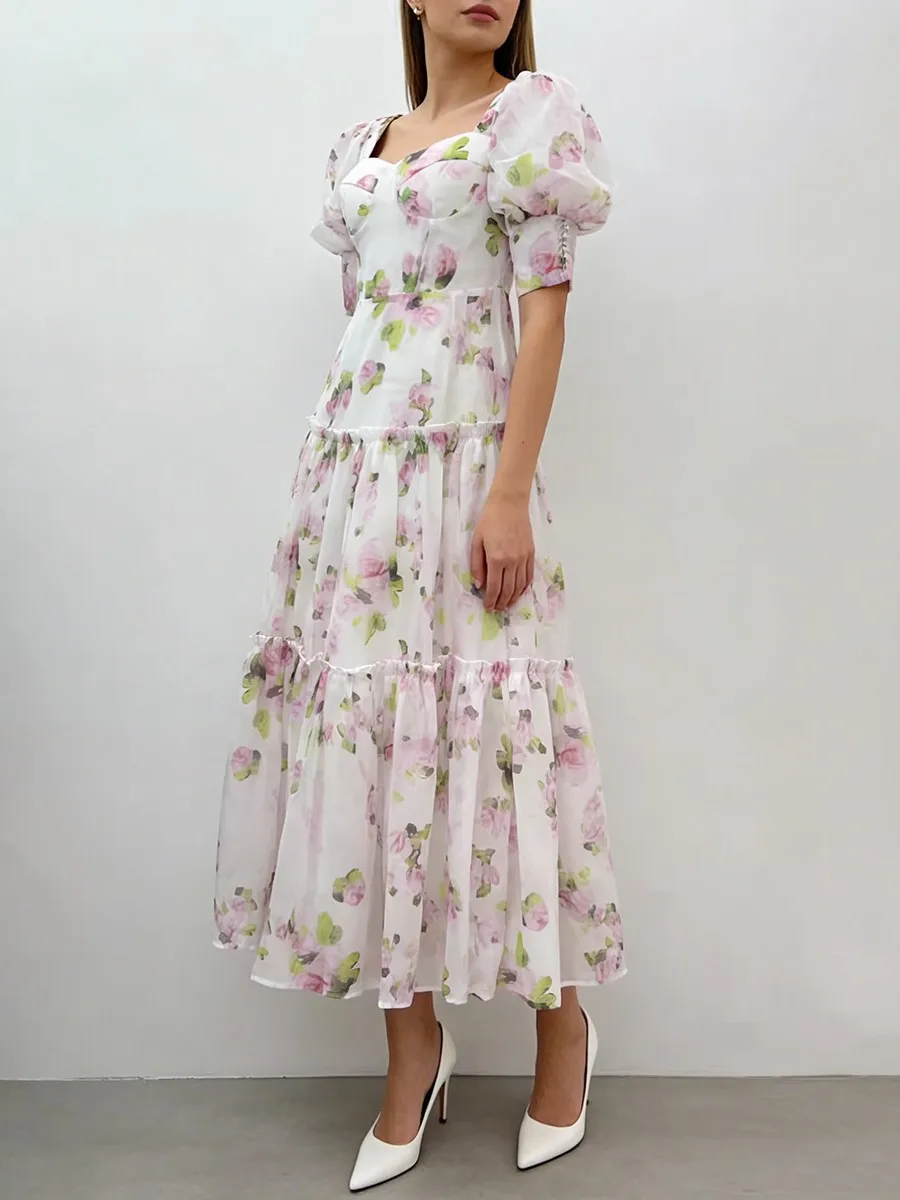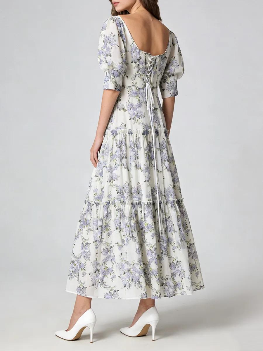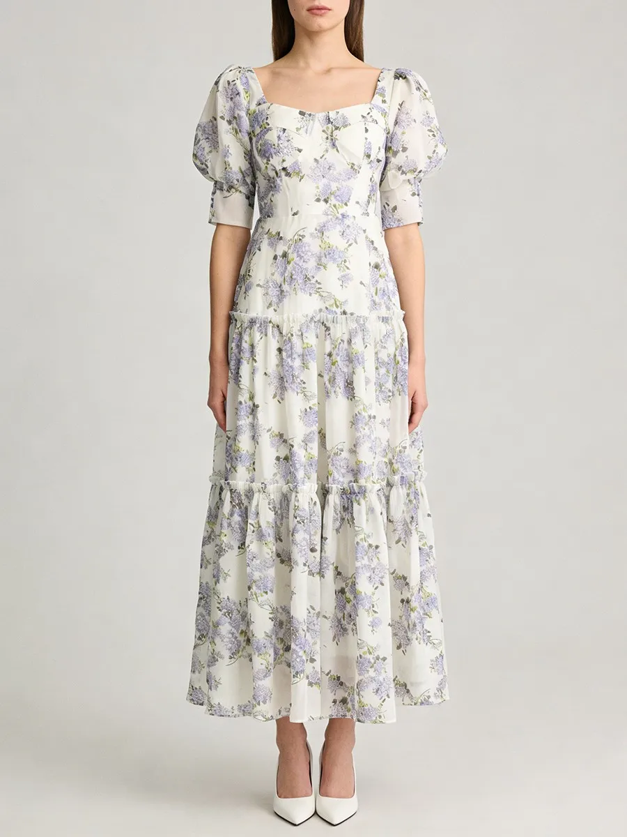 TWOTWINSTYLE Printing Spliced Ruched Slimming Long Dress for Women Slash Neck Half Sleeves High Waist Elegant Dresses Female New