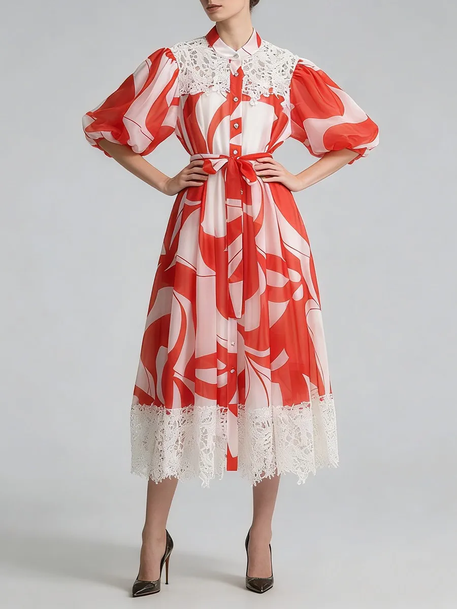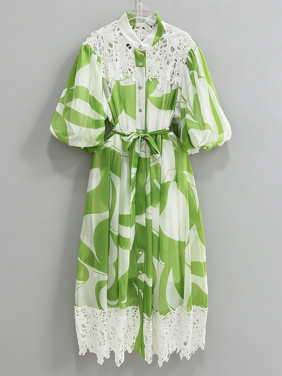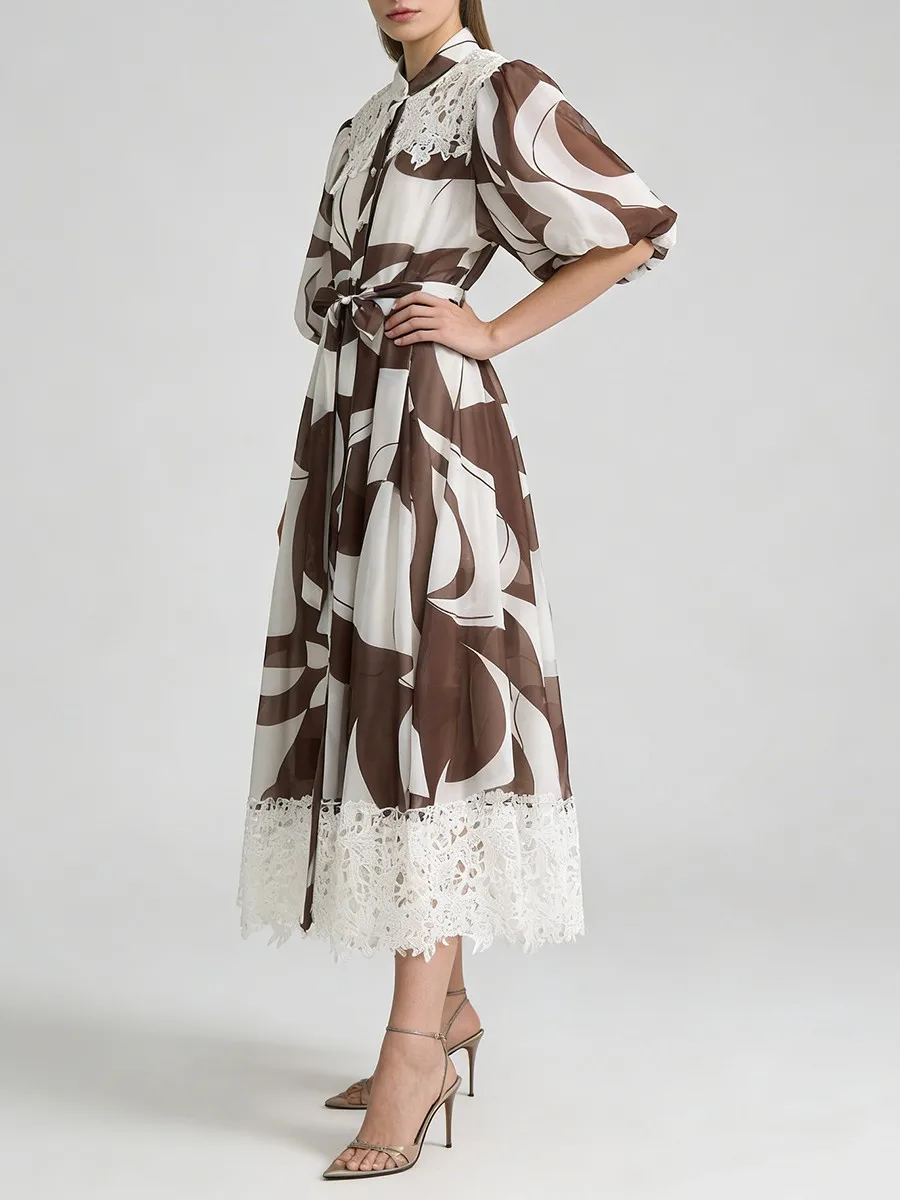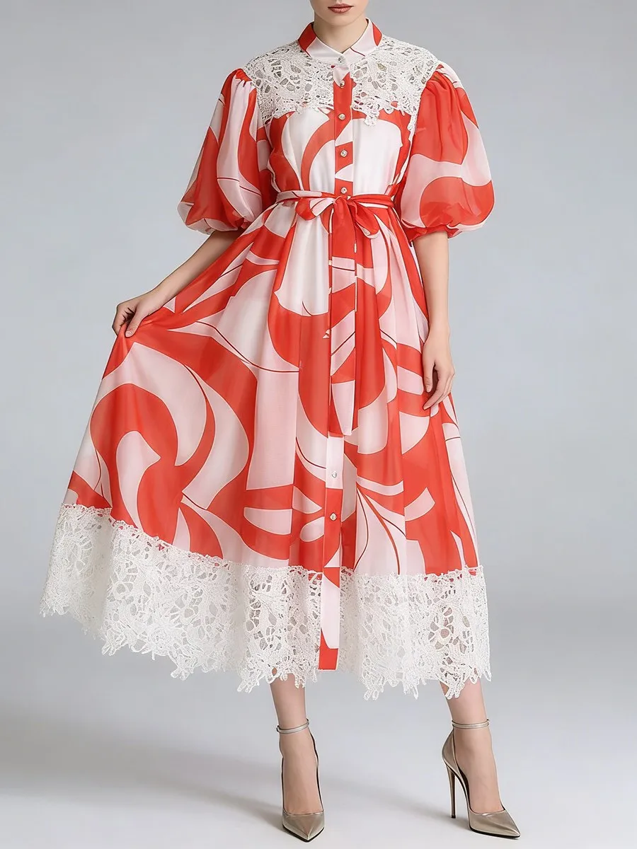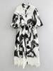 TWOTWINSTYLE Printinghollow Out Spliced Embroidery Dresses for Women O Neck Half Sleeves Hollow Out Patchwork Bead Dress Female