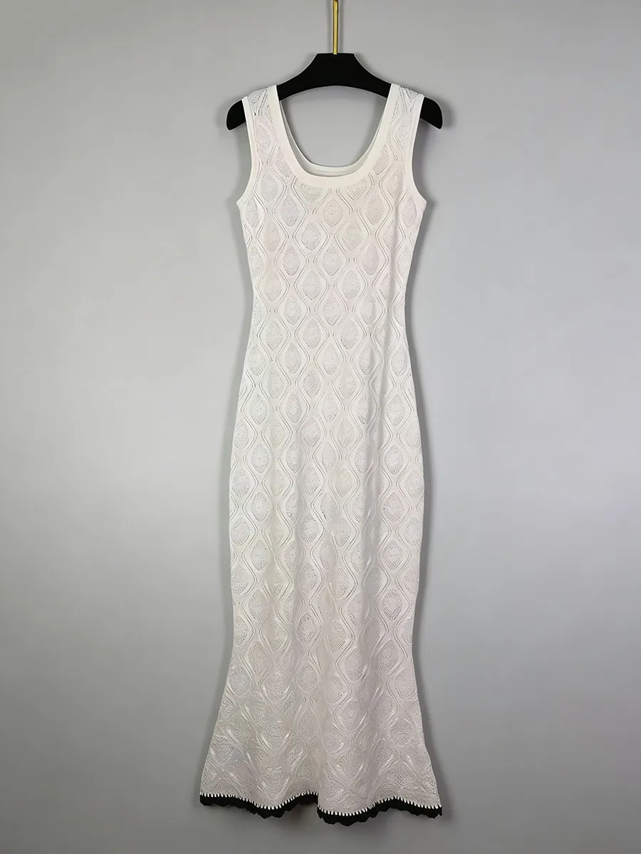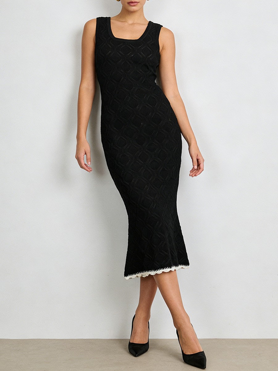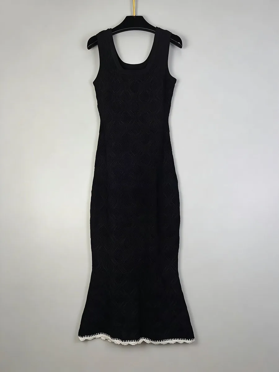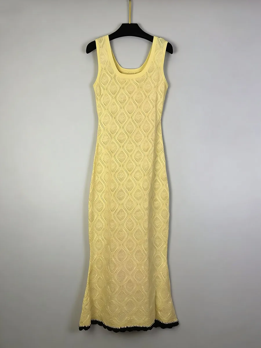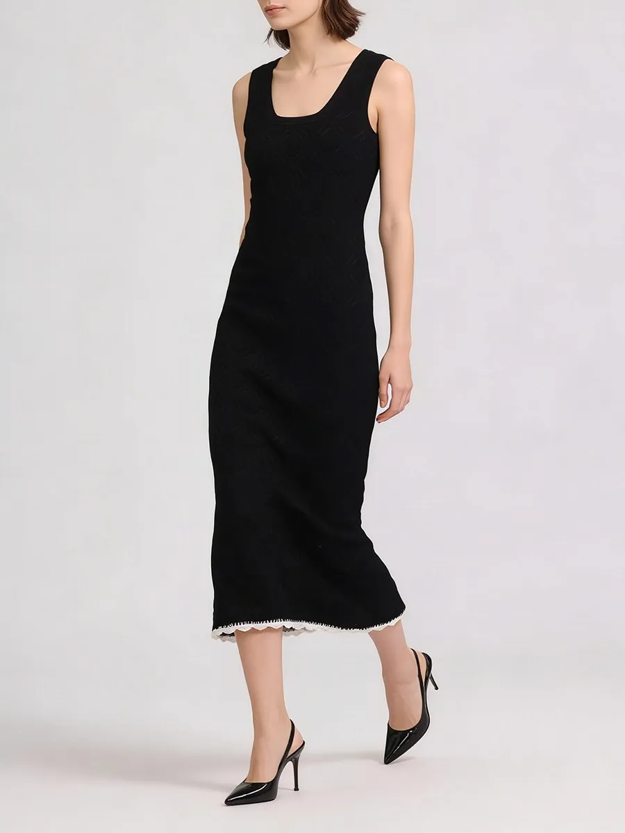 TWOTWINSTYLE Slimming Casual Knit Long Dresses for Women Square Neck Sleeveless Tunic Minimalist Mermaid Dress Female Clothing