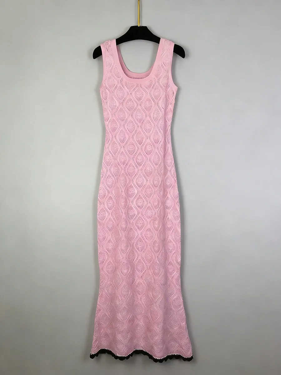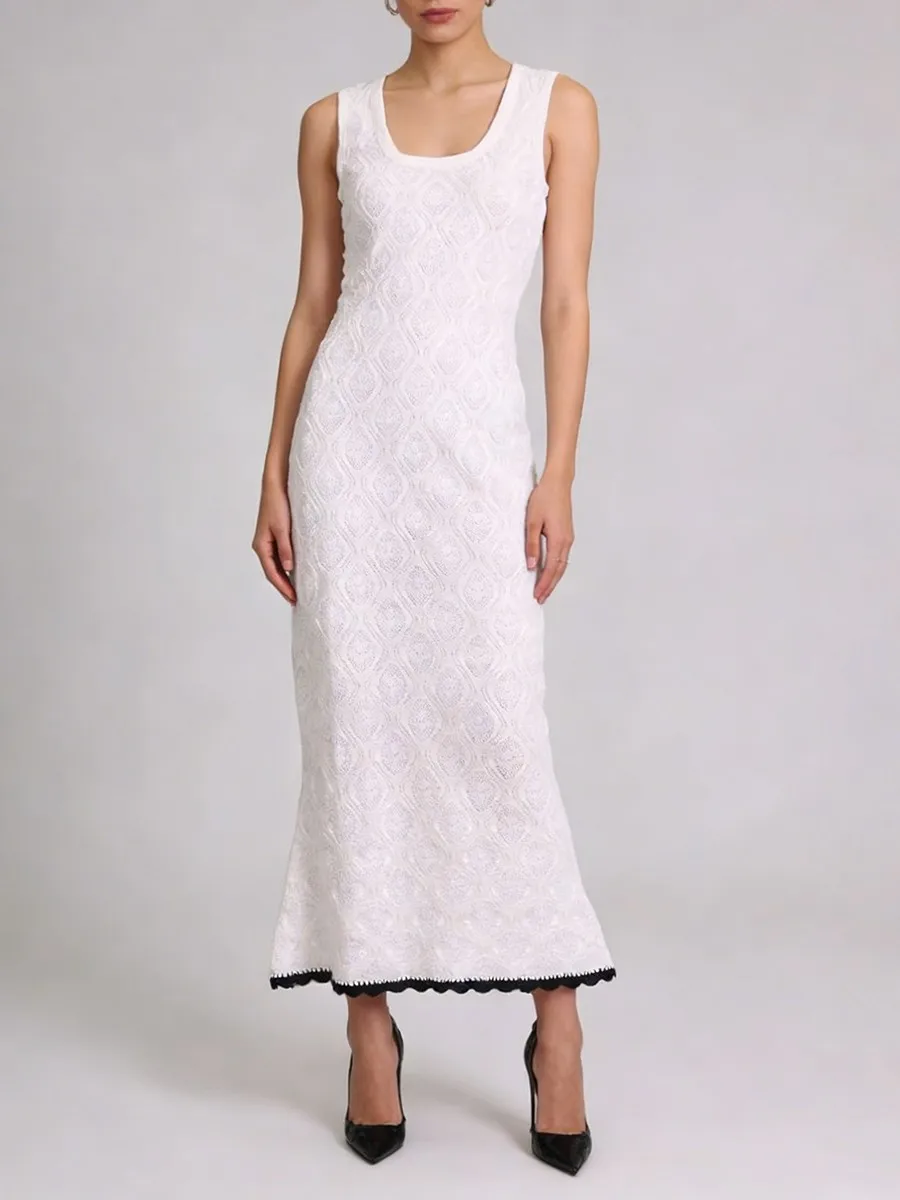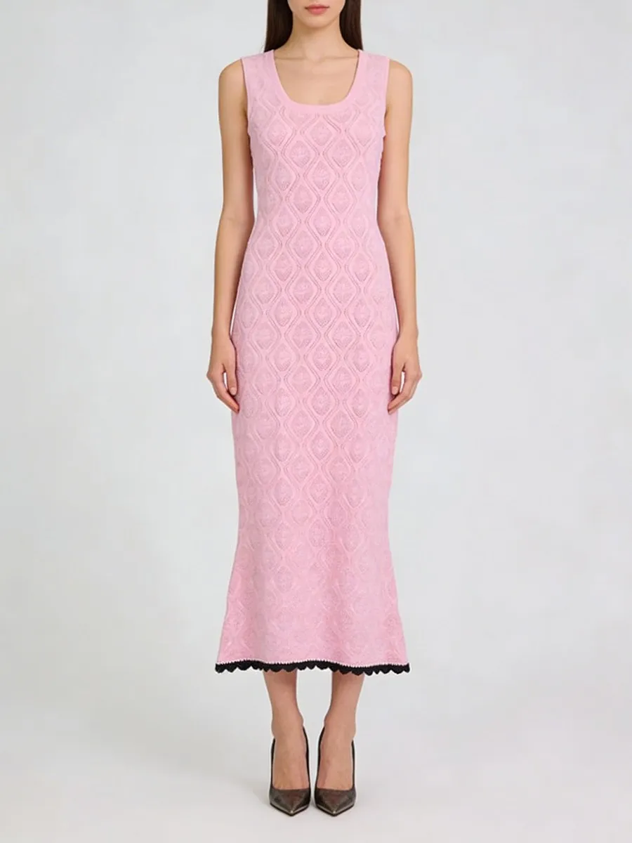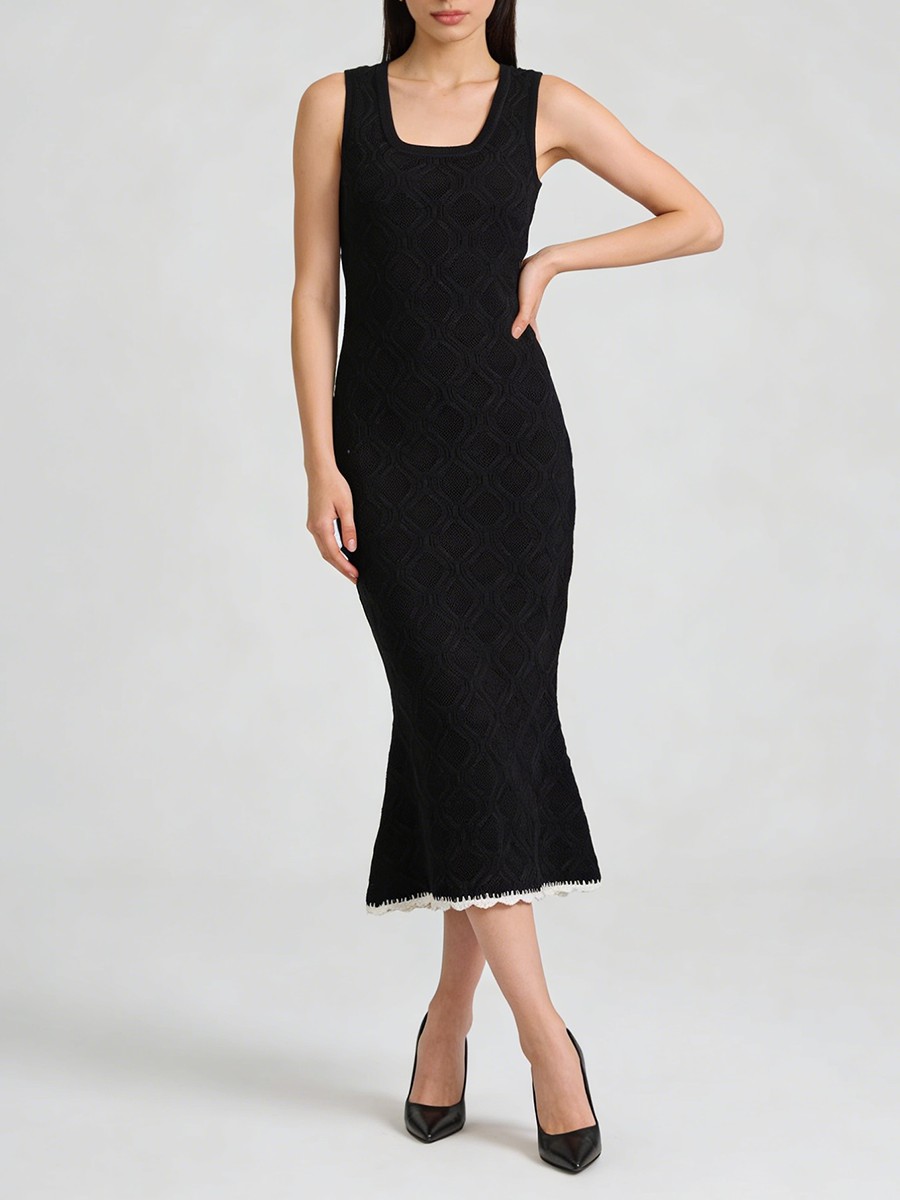 TWOTWINSTYLE Slimming Casual Knit Long Dresses for Women Square Neck Sleeveless Tunic Minimalist Mermaid Dress Female Clothing