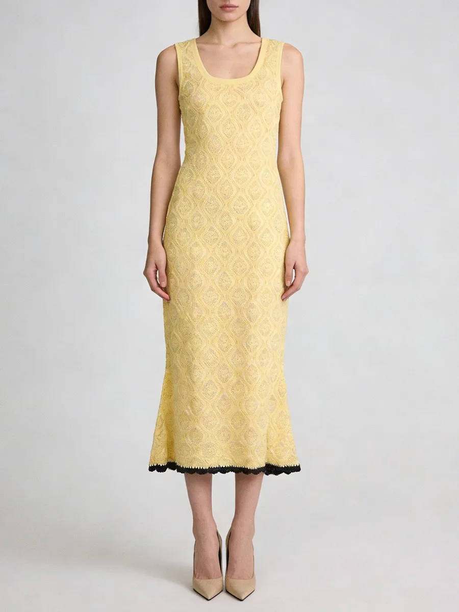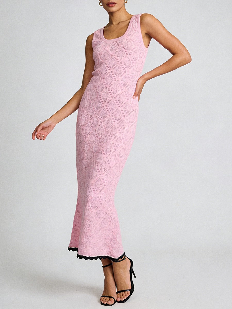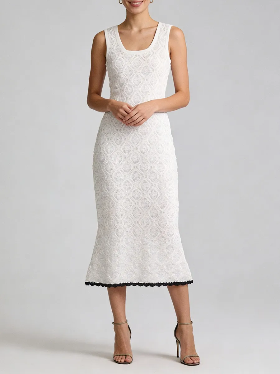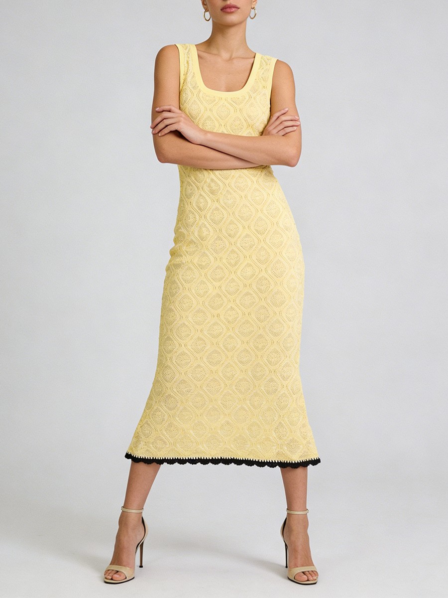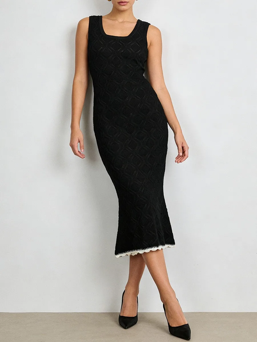 TWOTWINSTYLE Slimming Casual Knit Long Dresses for Women Square Neck Sleeveless Tunic Minimalist Mermaid Dress Female Clothing