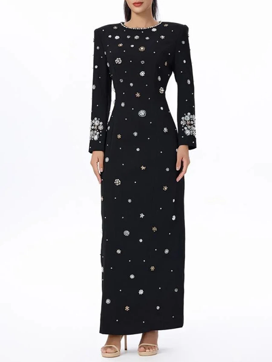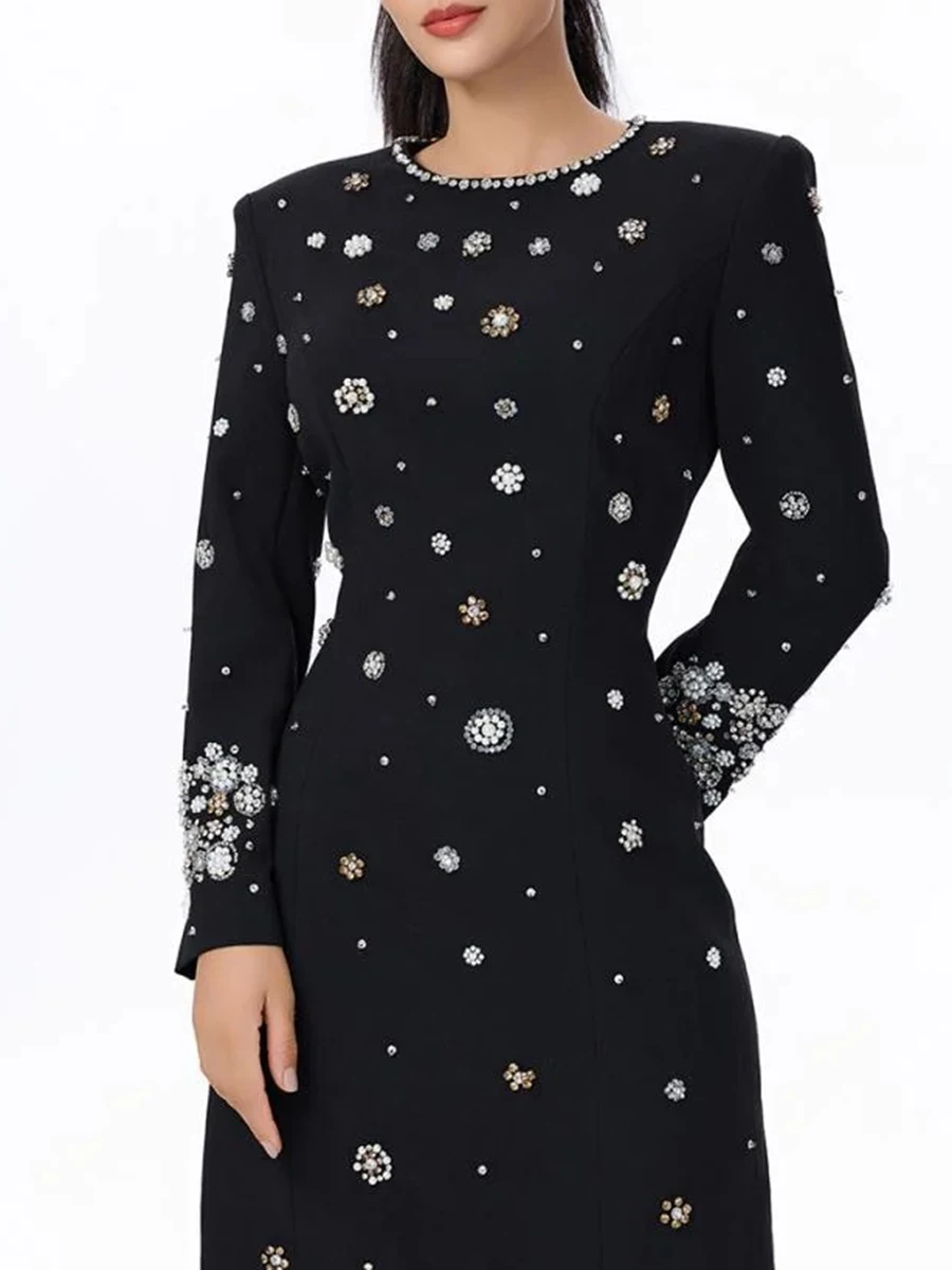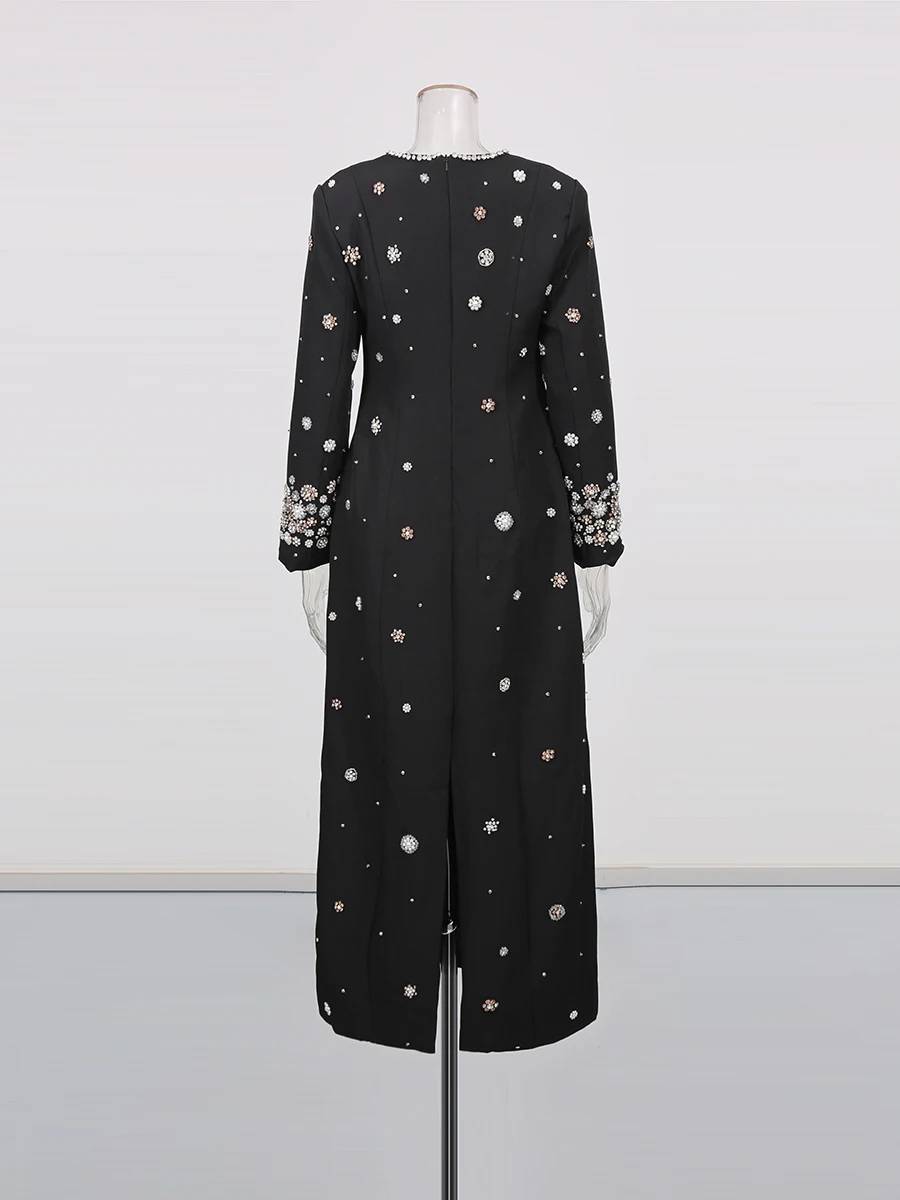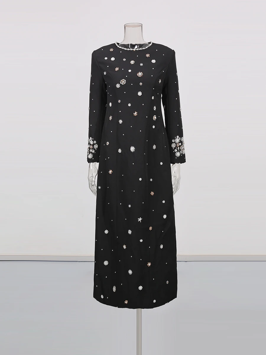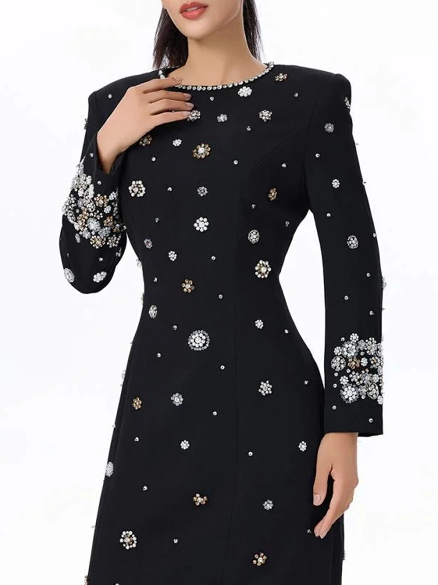 TWOTWINSTYLE Slimming Spliced Bead Temperament Dresses for Women O Neck Long Sleeves High Waist Fashion Dress Female Clothes New