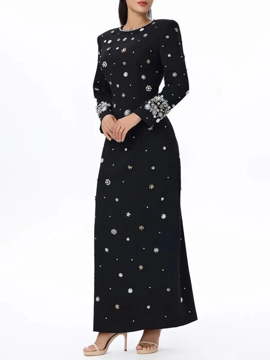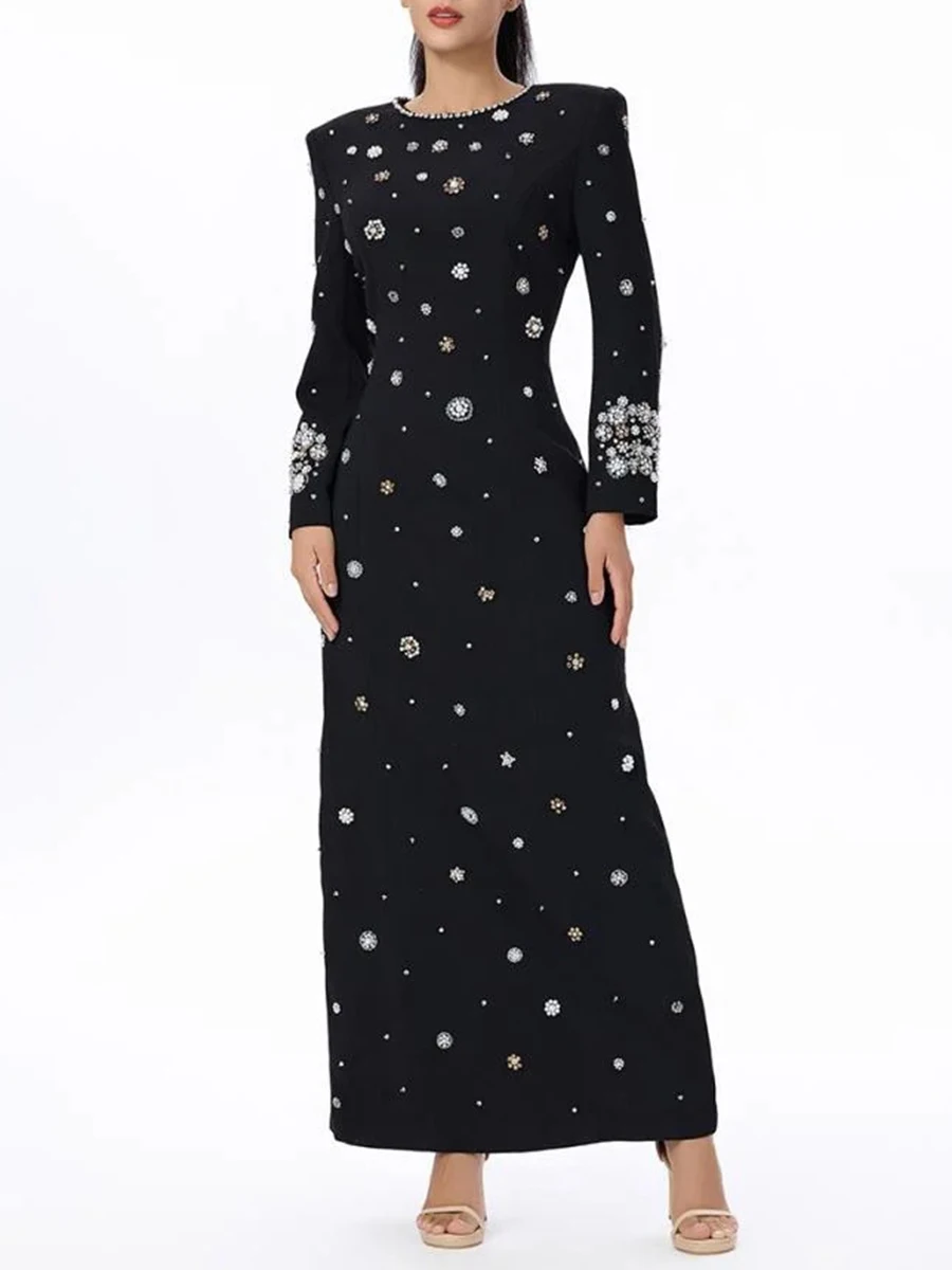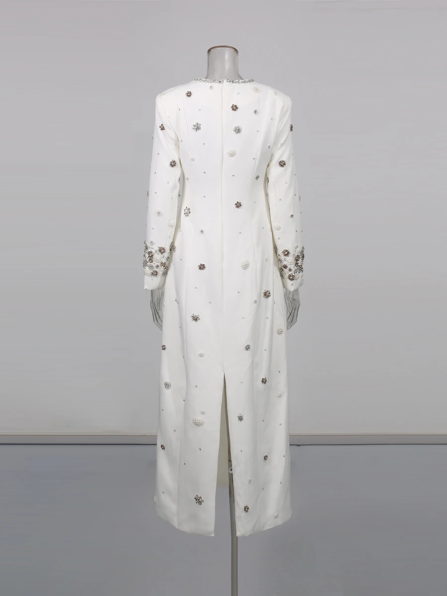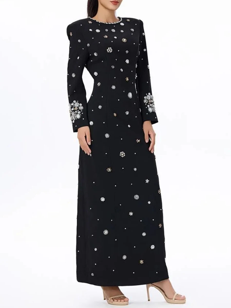 TWOTWINSTYLE Slimming Spliced Bead Temperament Dresses for Women O Neck Long Sleeves High Waist Fashion Dress Female Clothes New