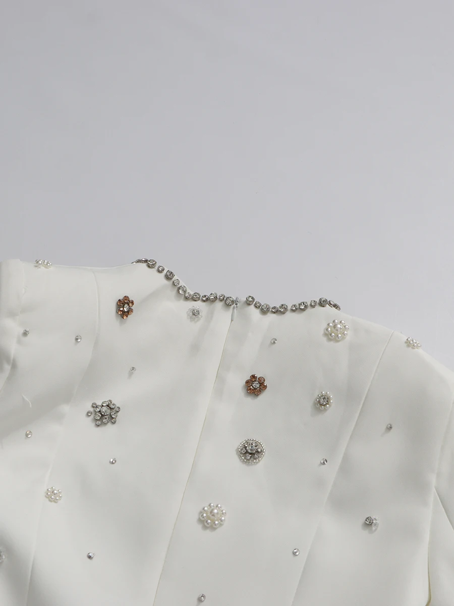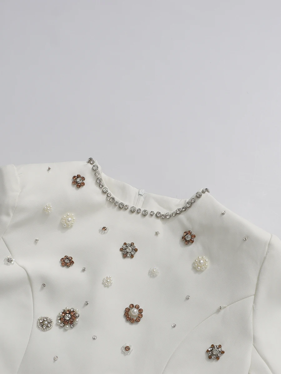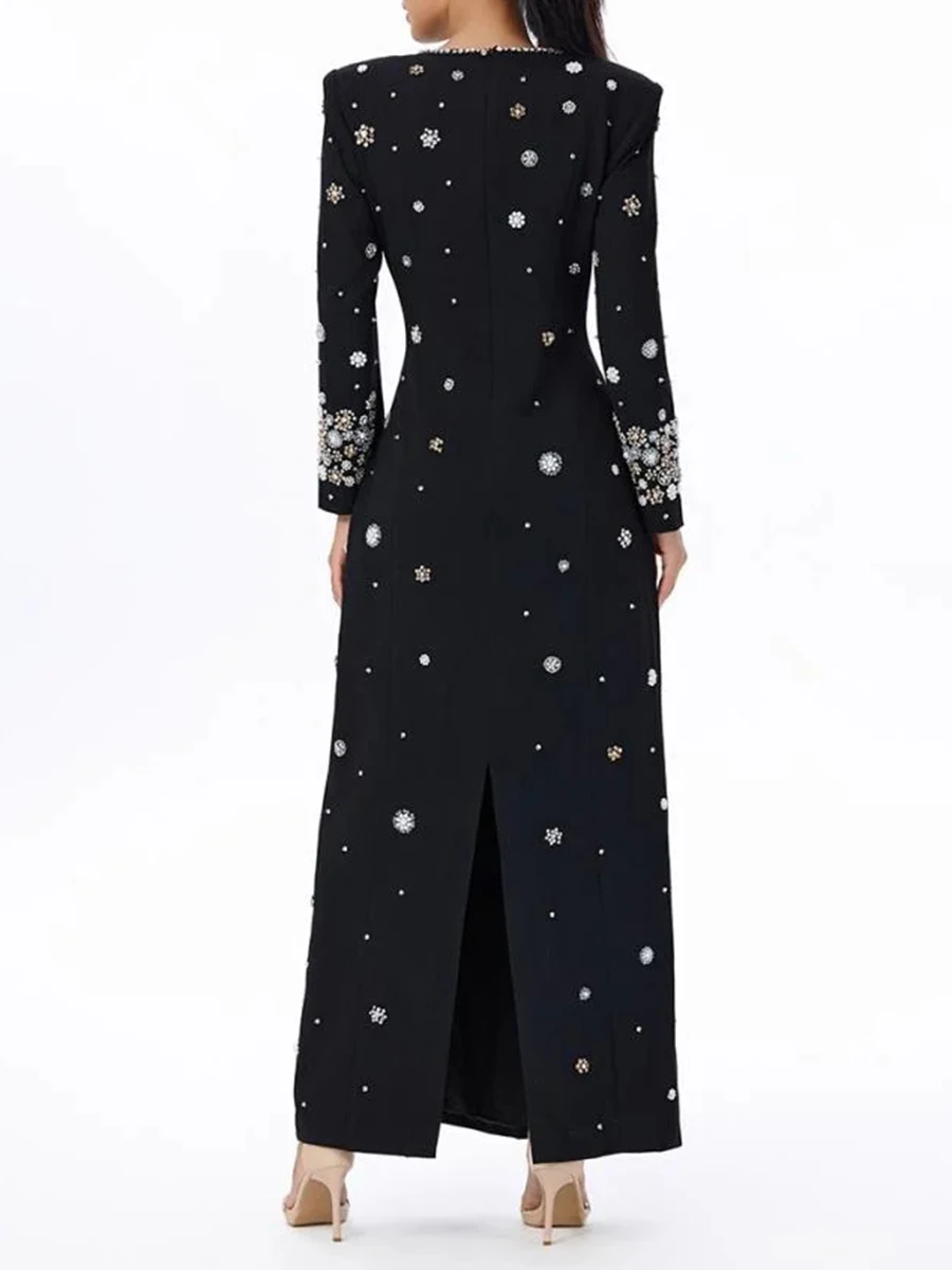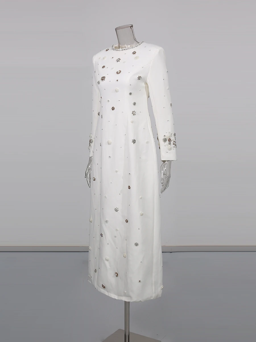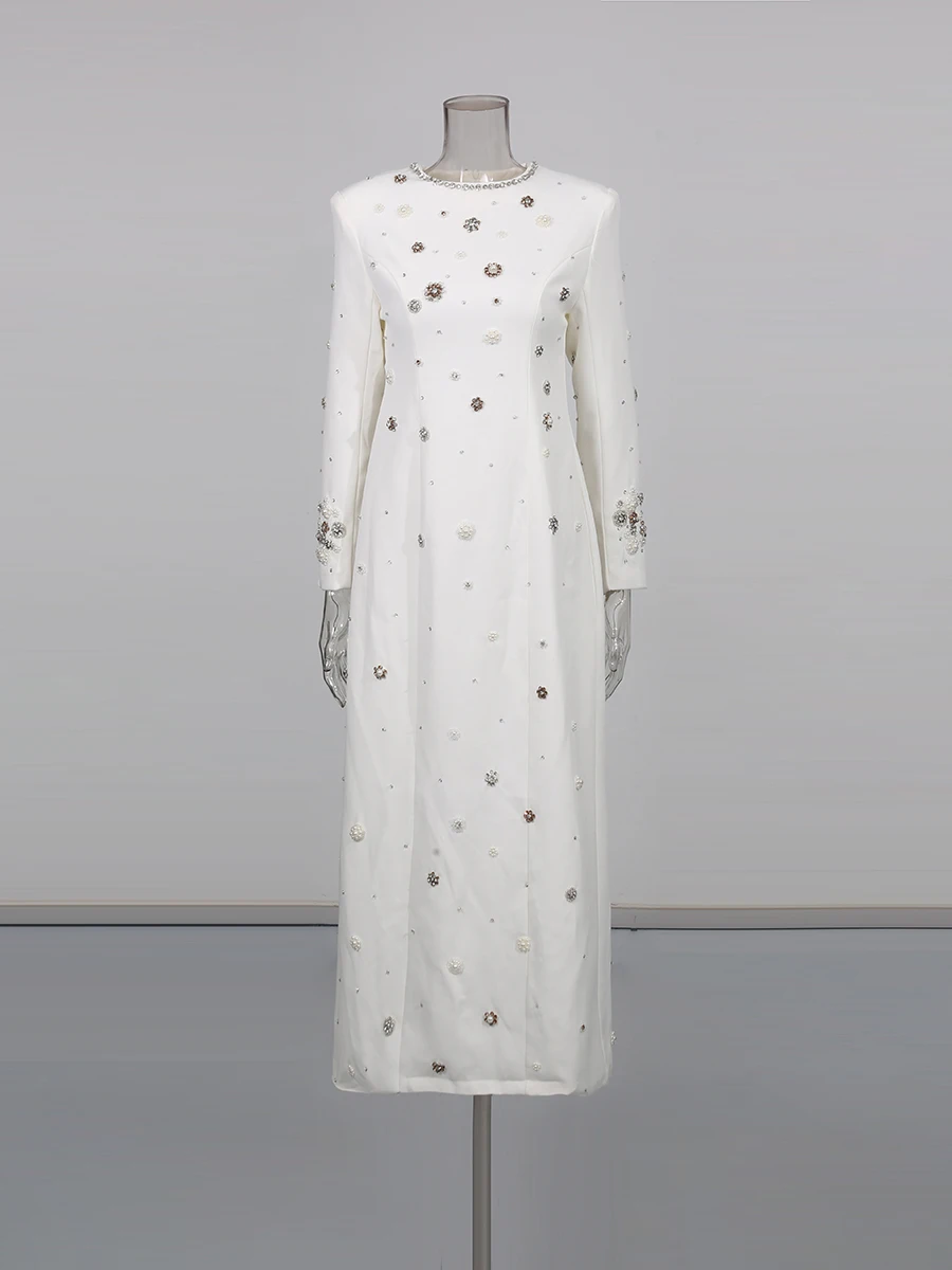 TWOTWINSTYLE Slimming Spliced Bead Temperament Dresses for Women O Neck Long Sleeves High Waist Fashion Dress Female Clothes New