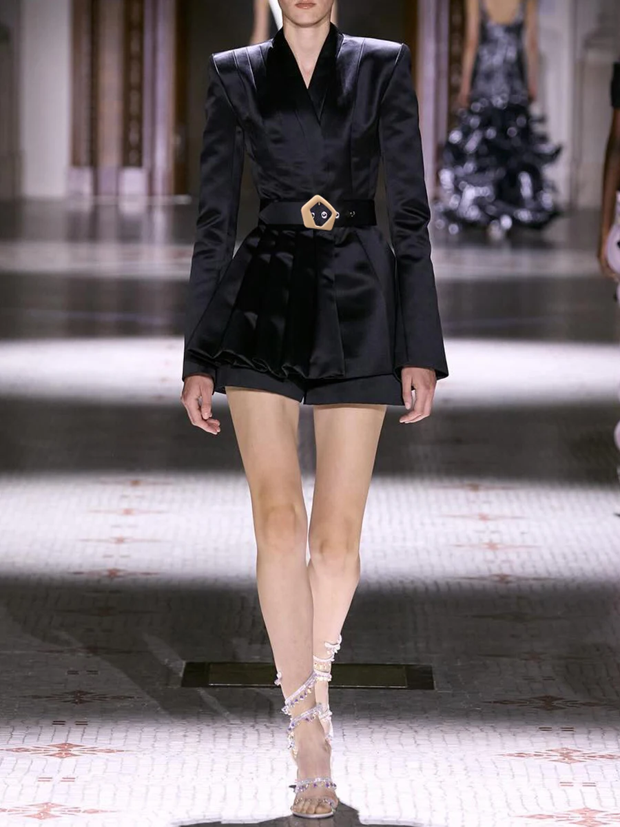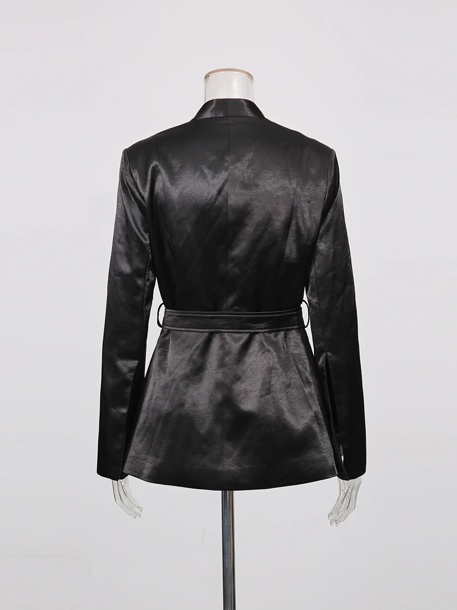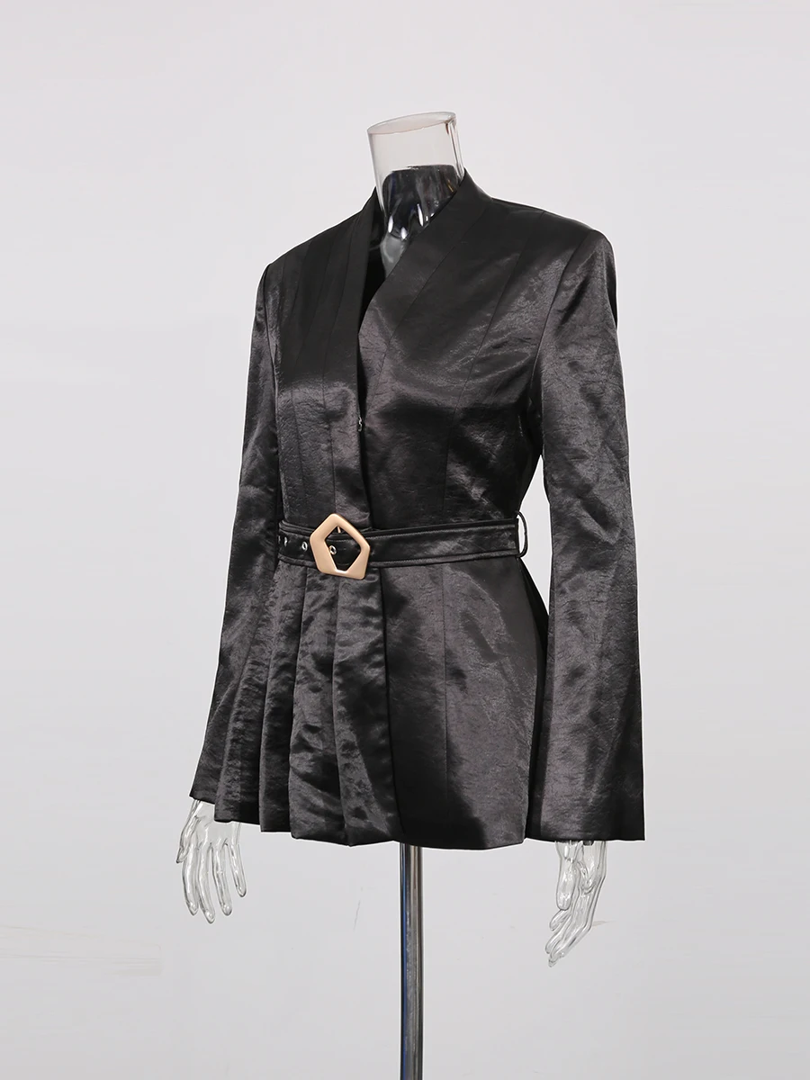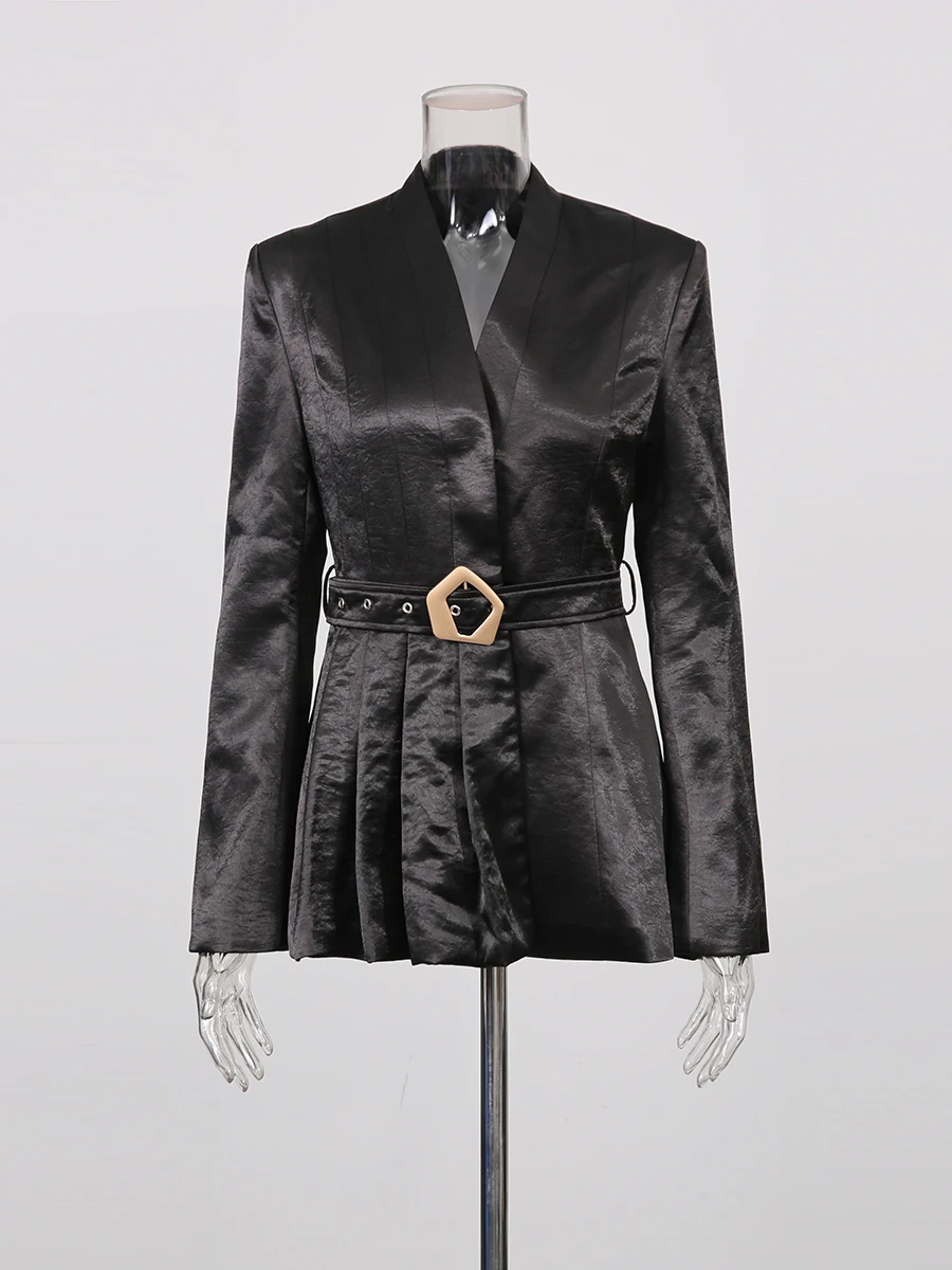 TWOTWINSTYLE Slimming Spliced Belt Elegant Jackets for Women V Neck Long Sleeves Patchwork Ruffles Fashion Jacket Female Clothes