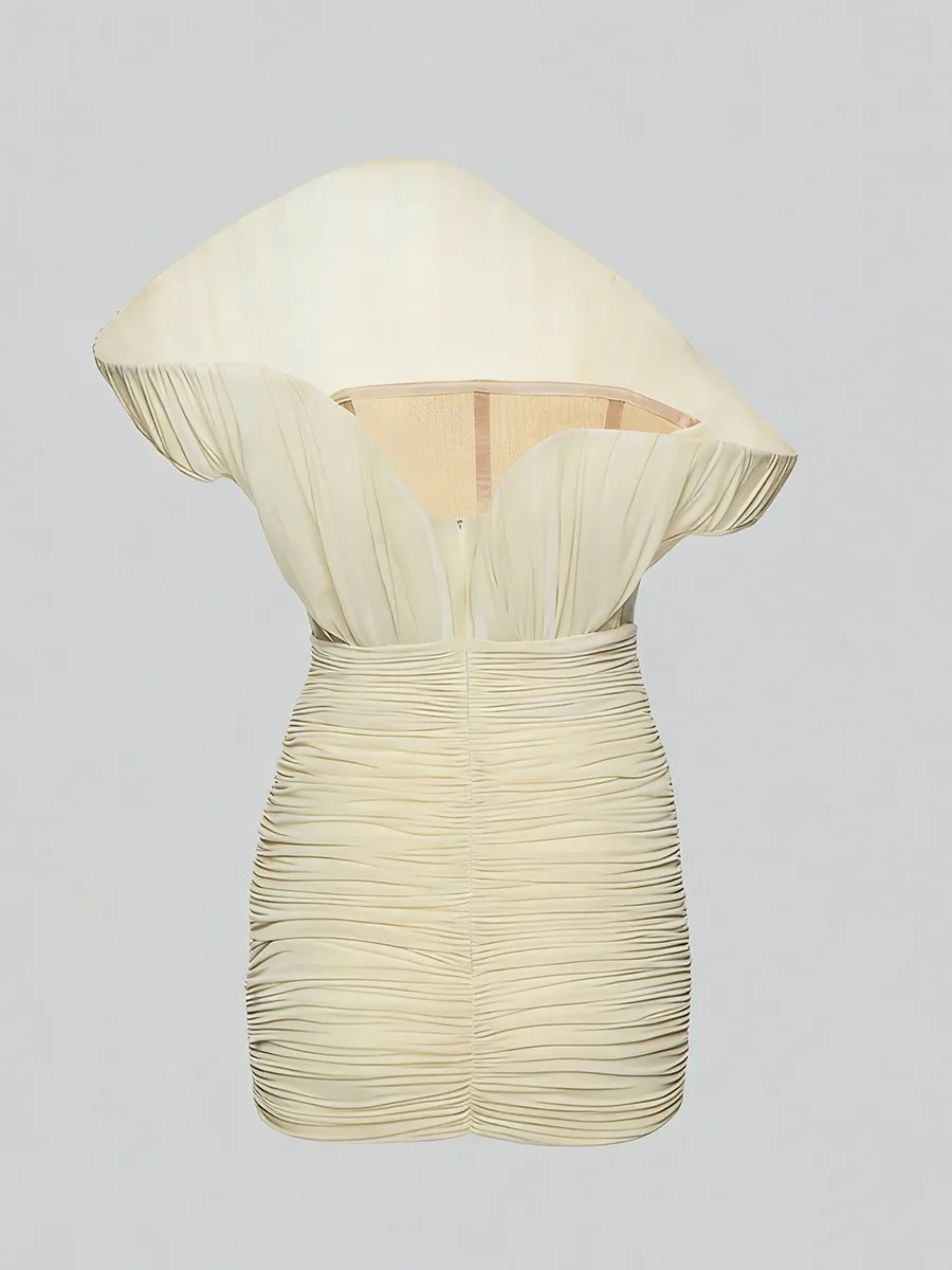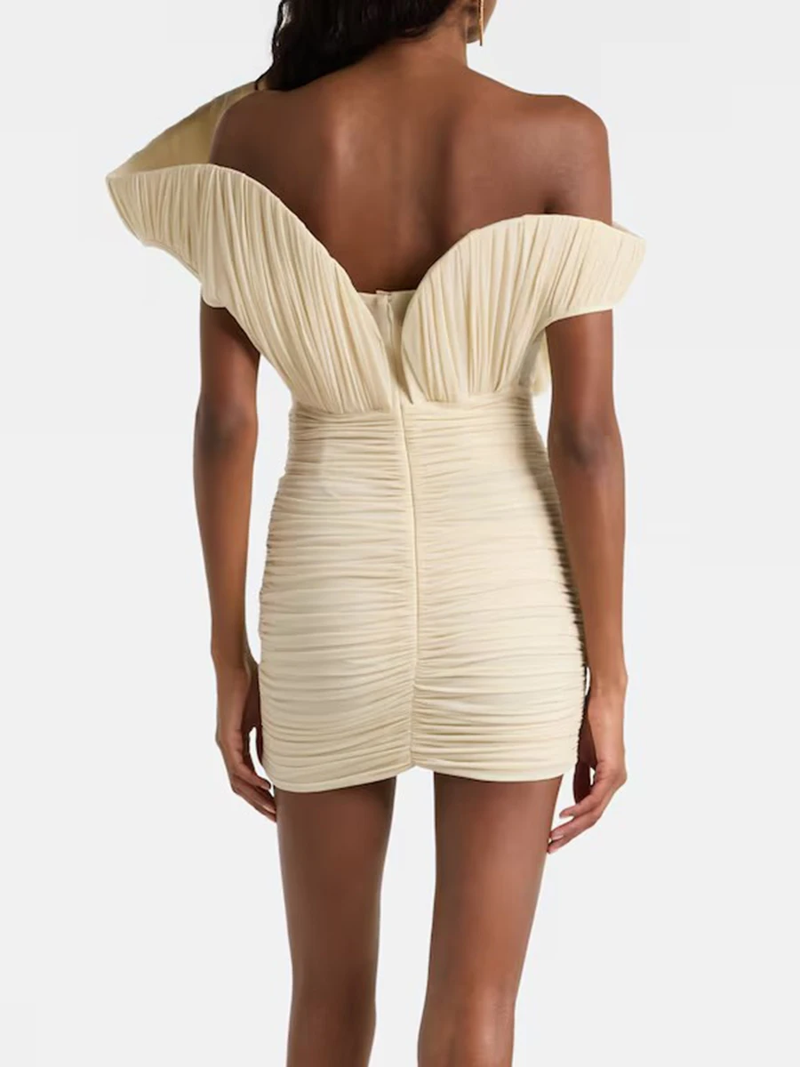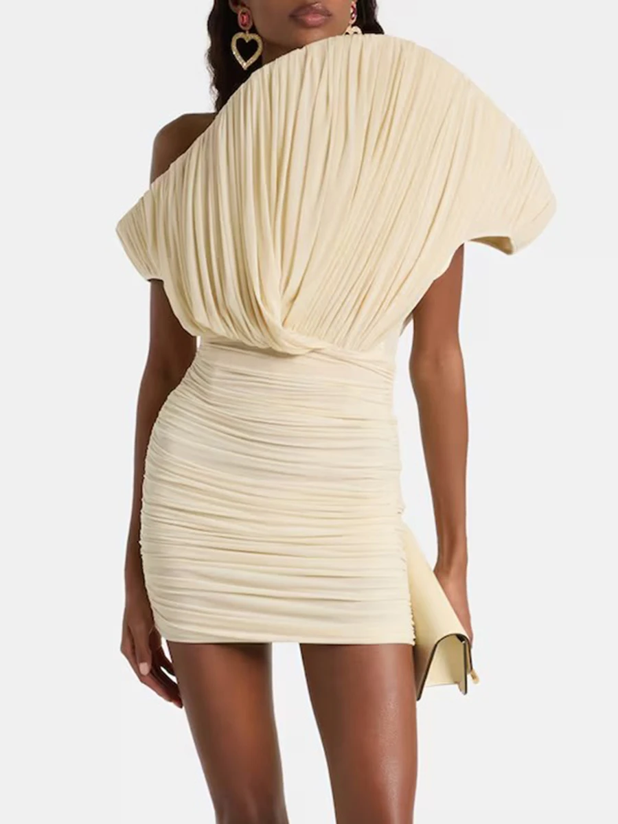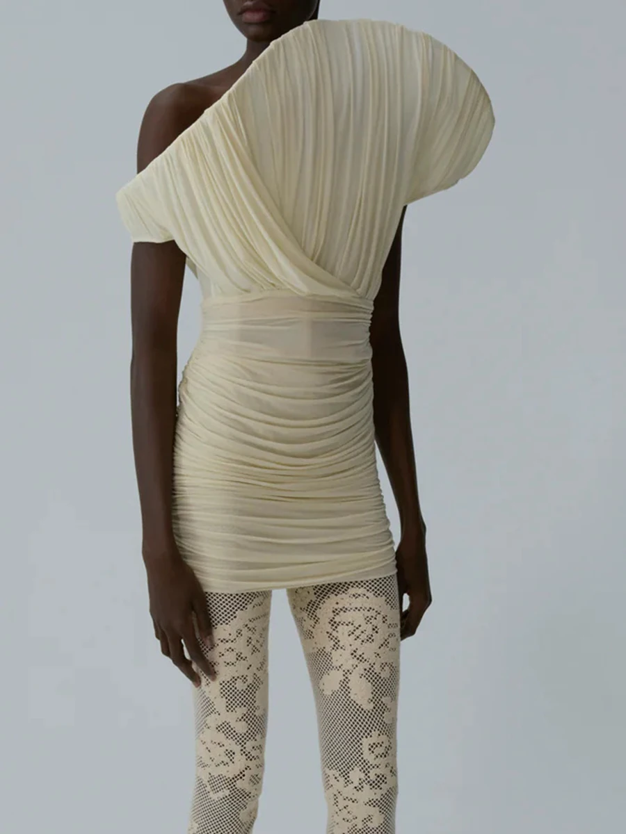 TWOTWINSTYLE Slimming Spliced Folds Design Sense Dresses for Women Diagonal Collar Short Sleeves Patchwork Glove Dress Female