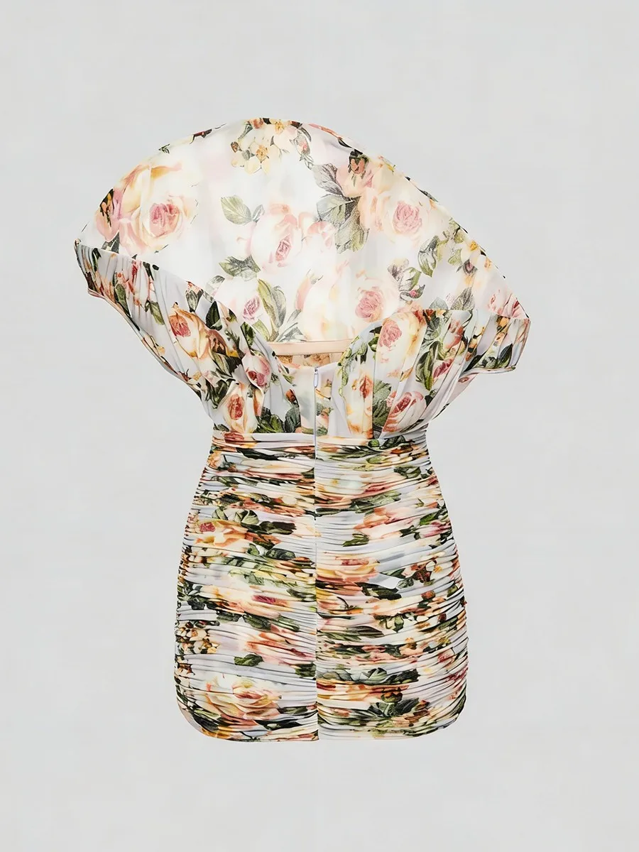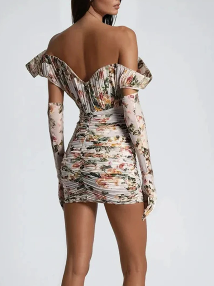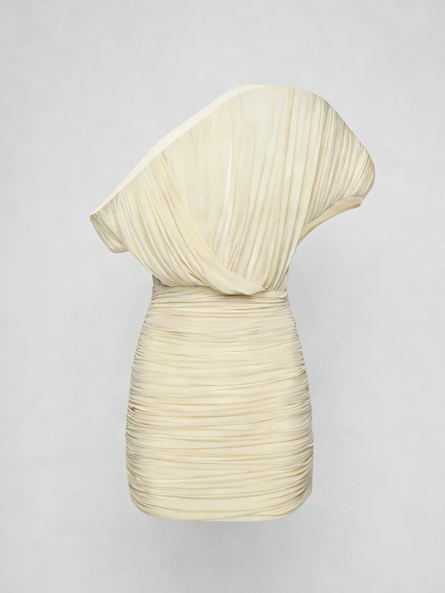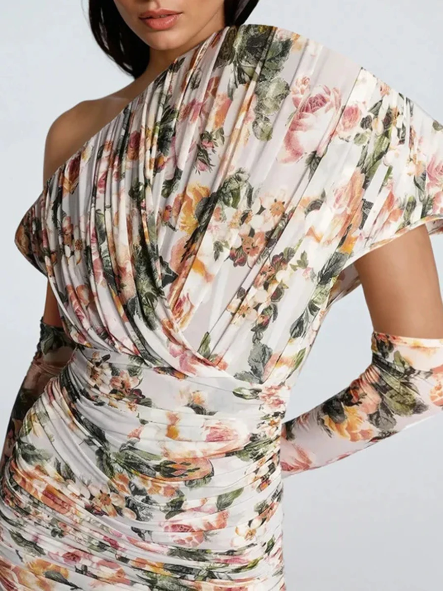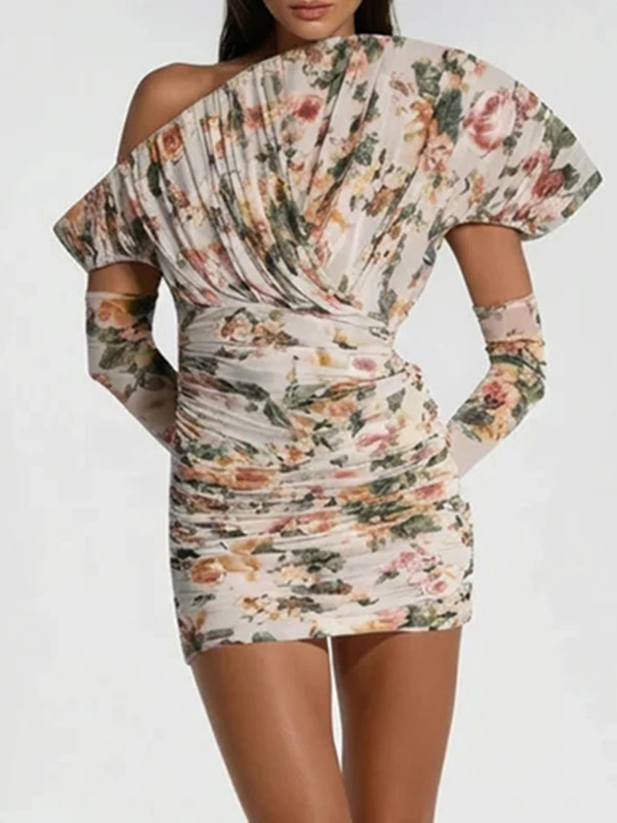 TWOTWINSTYLE Slimming Spliced Folds Design Sense Dresses for Women Diagonal Collar Short Sleeves Patchwork Glove Dress Female
