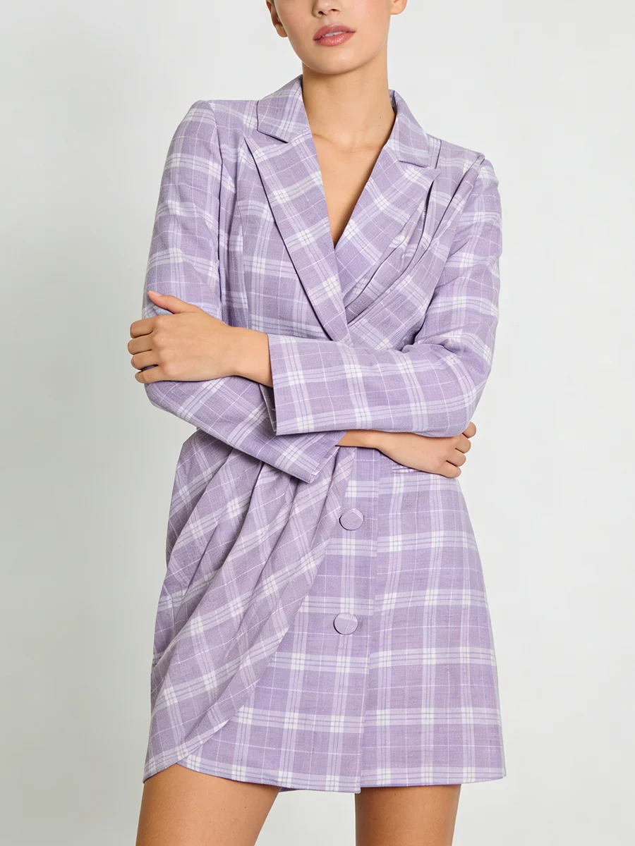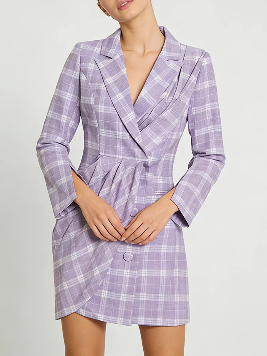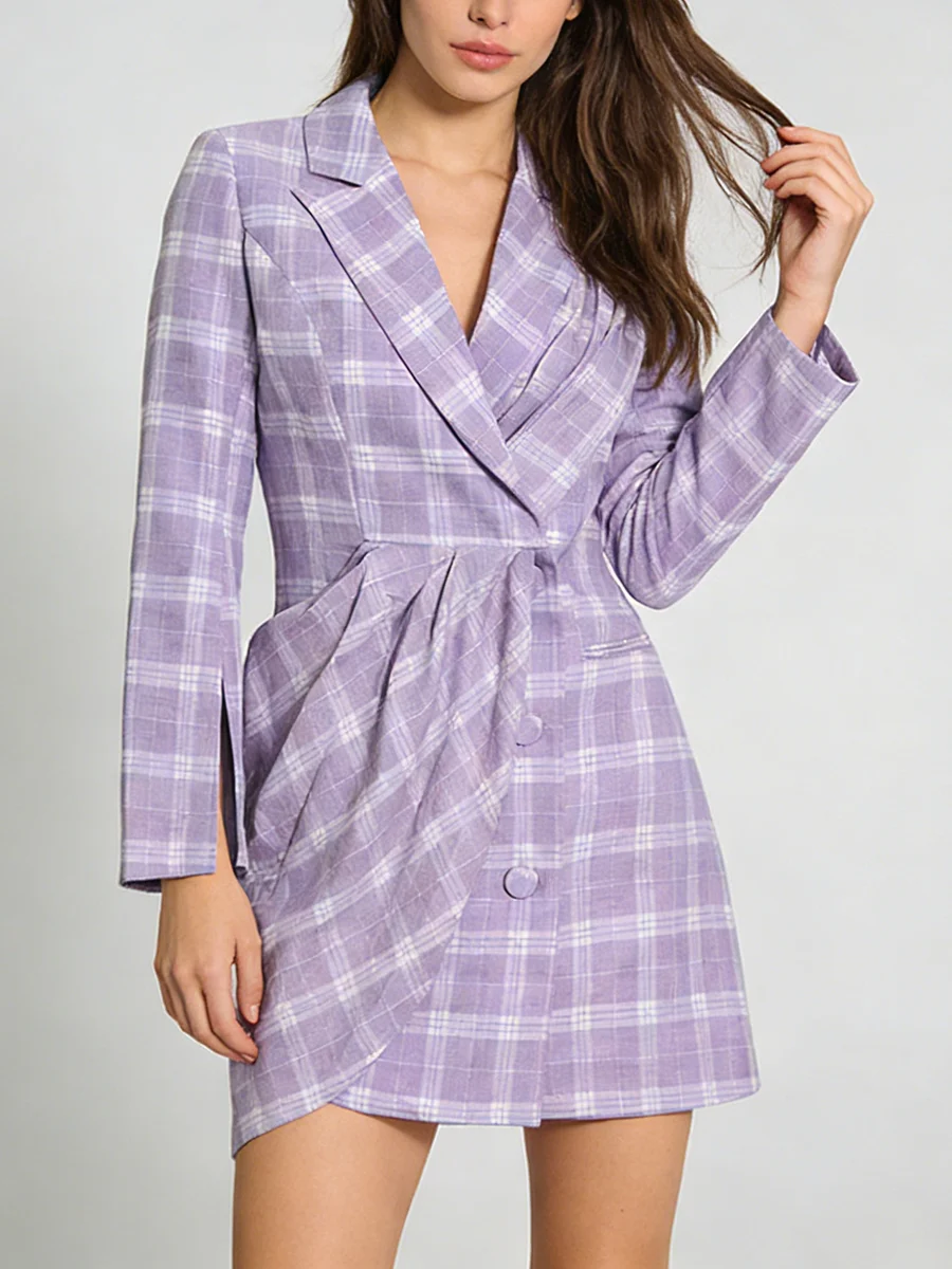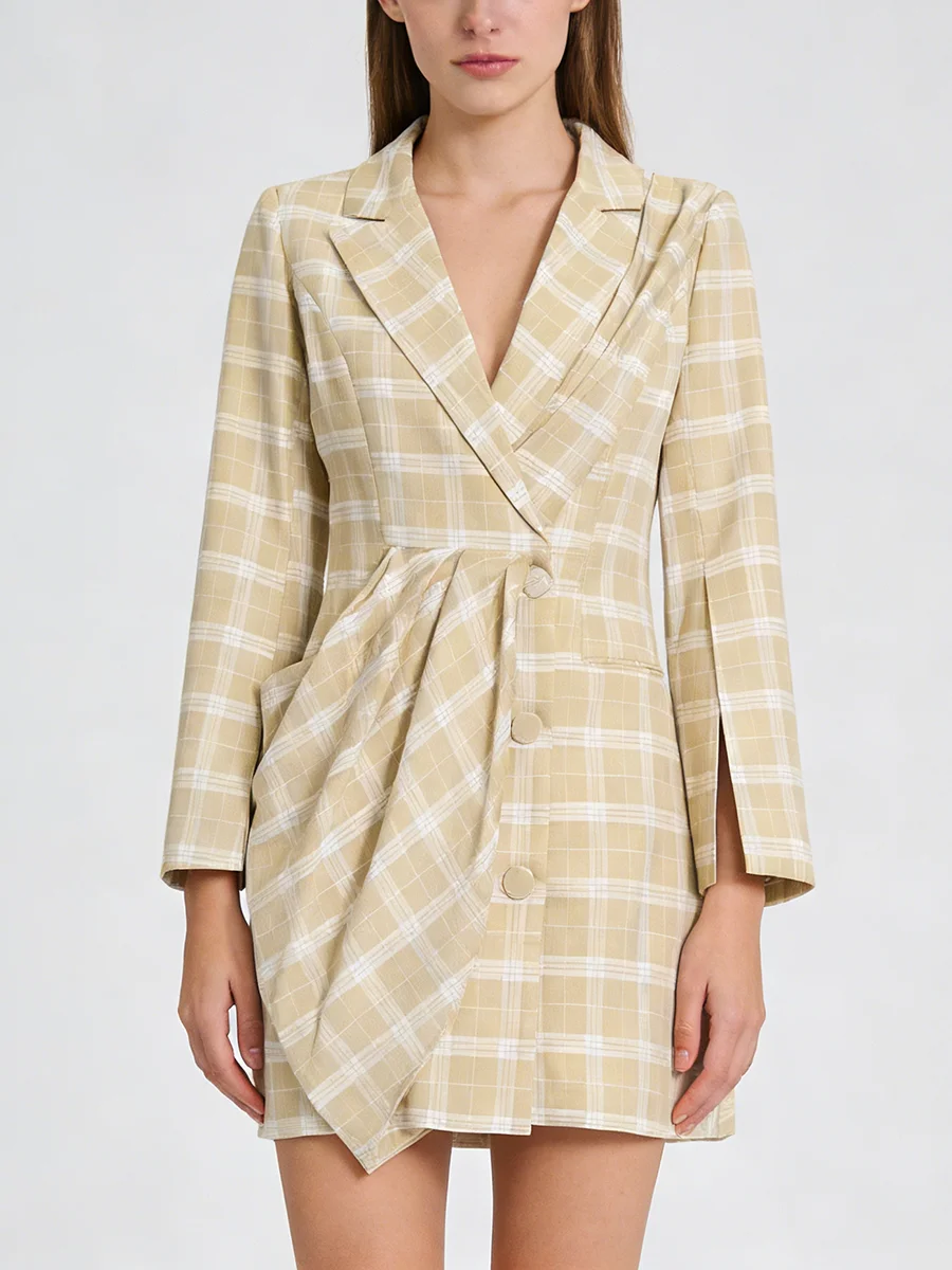 TWOTWINSTYLE Slimming Spliced Plaid Irregular Dresses for Women Lapel Long Sleeves High Waist Patchwork Folds Dress Female New