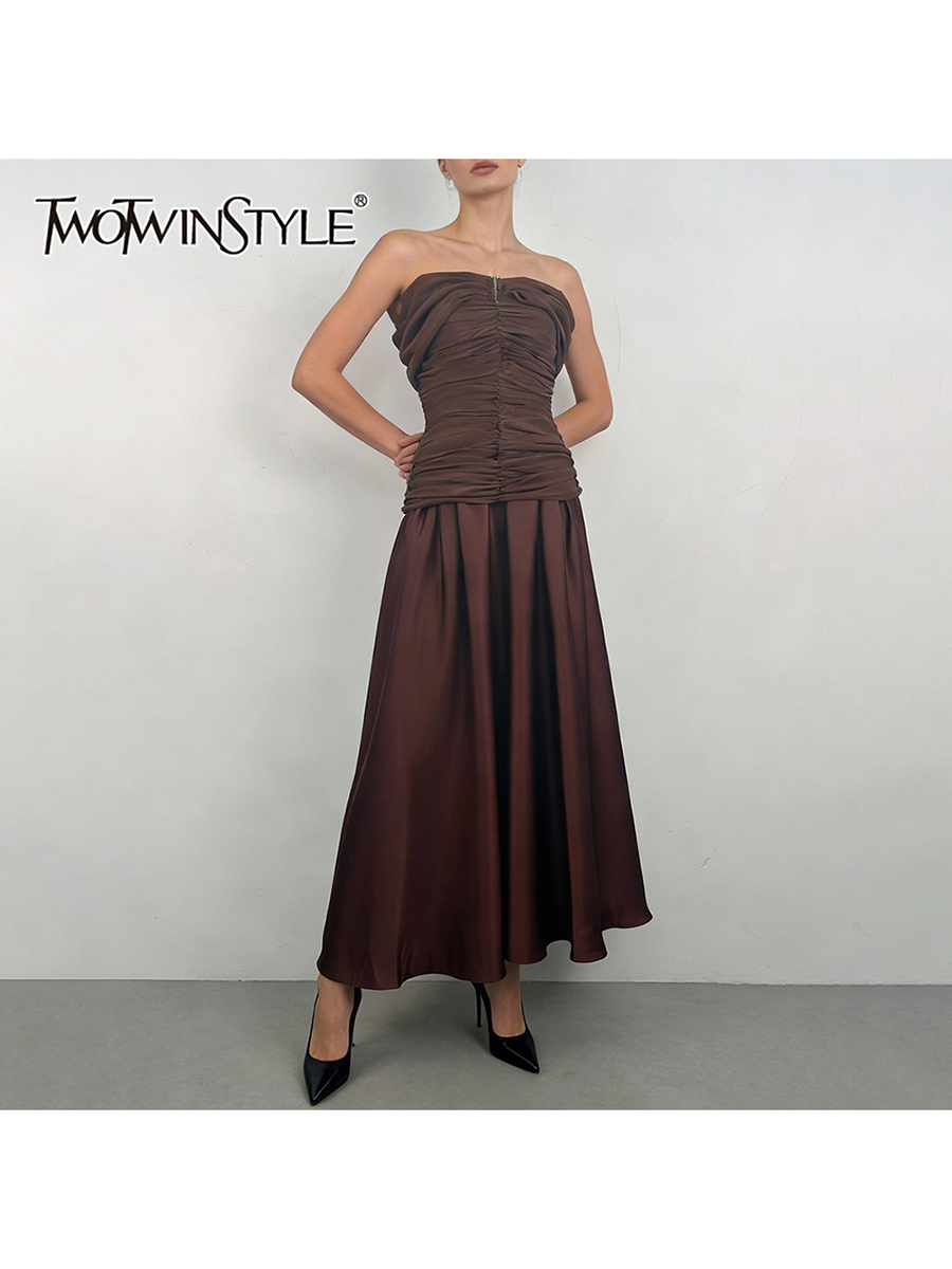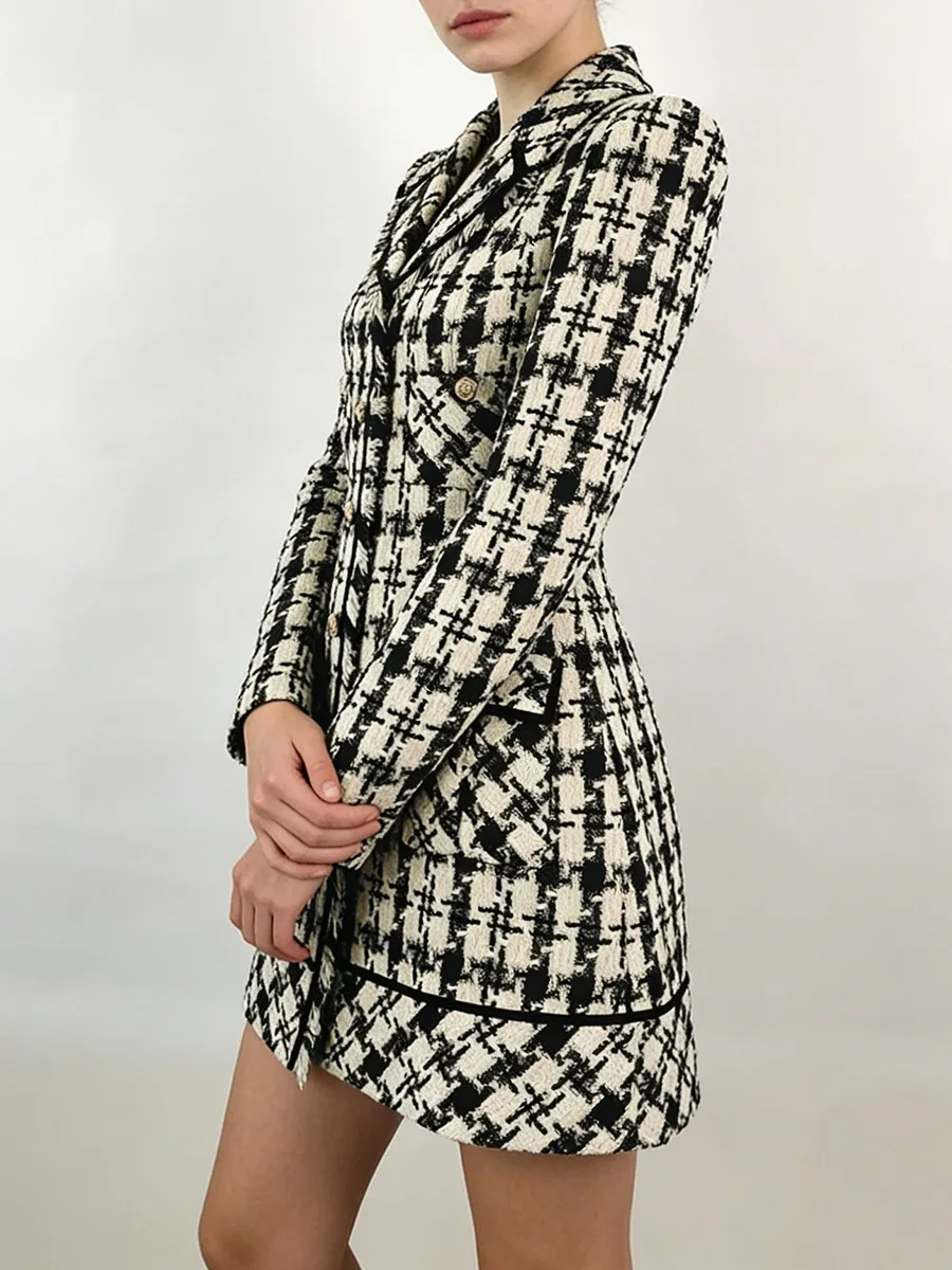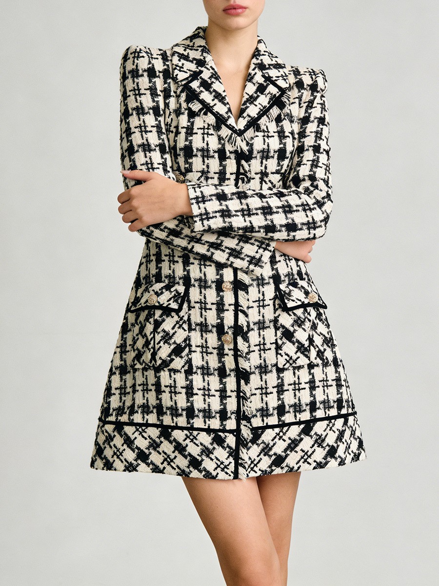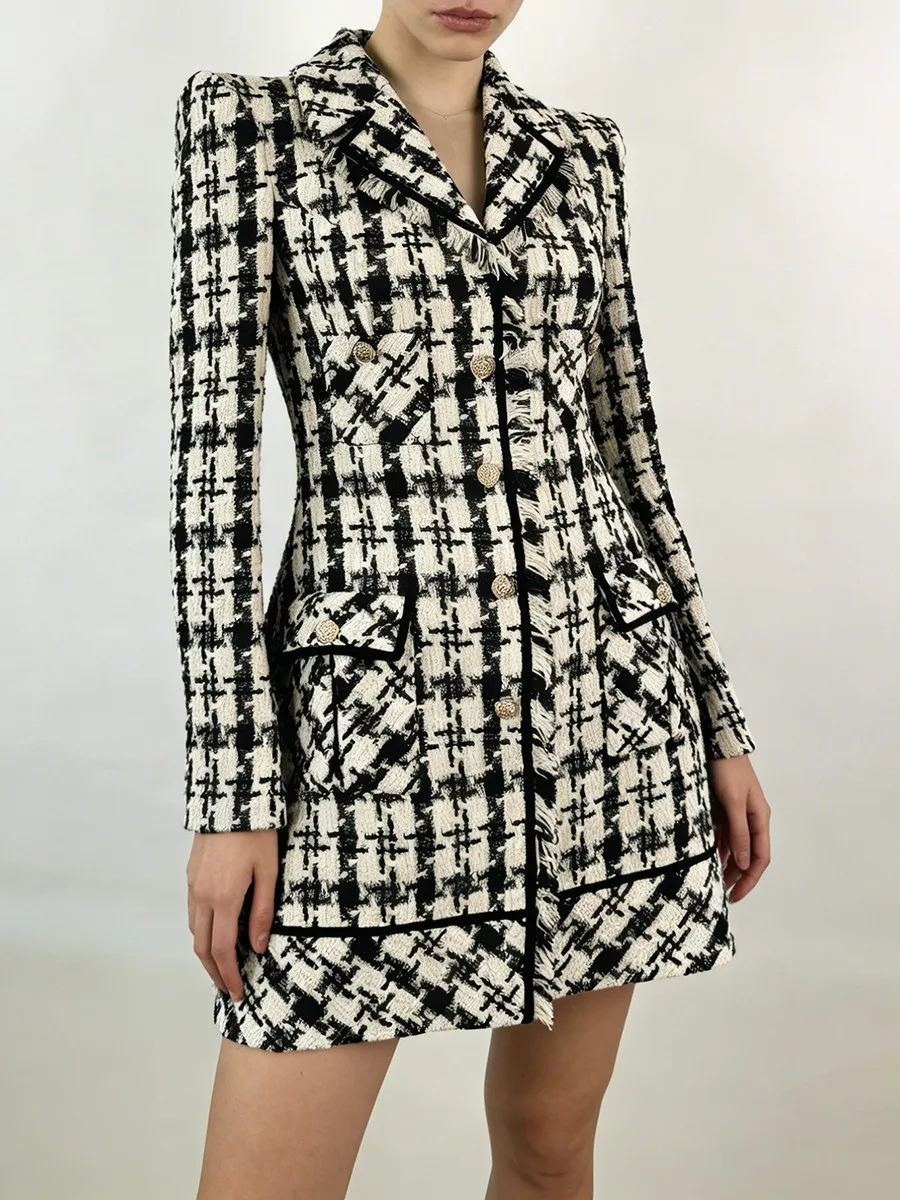 TWOTWINSTYLE Slimming Spliced Plaid Mini Dresses for Women Lapel Long Sleeves Tunic Patchwork Pockets Design Sense Dress Female