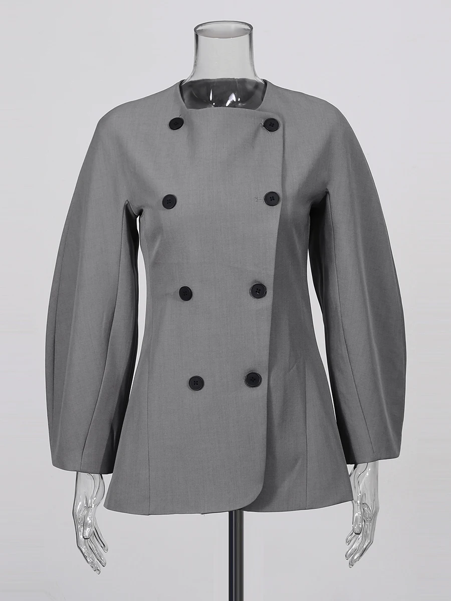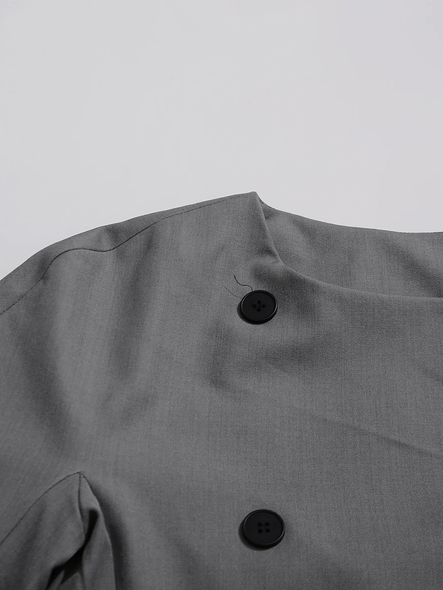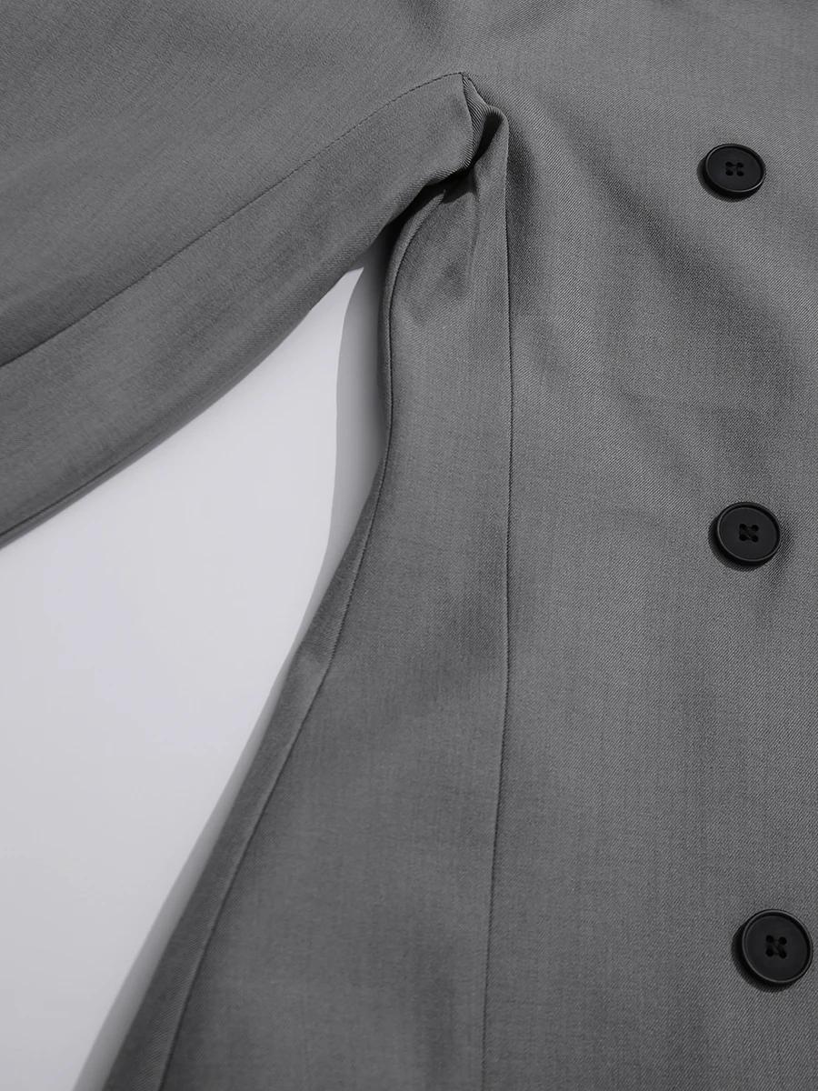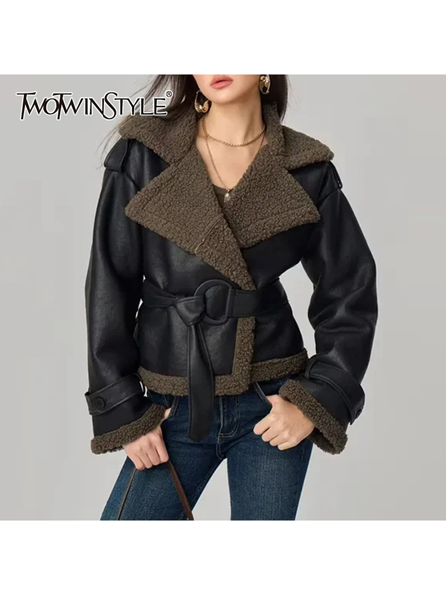 TWOTWINSTYLE Solid Fashion Two Piece Sets for Women O Neck Long Sleeves Spliced Double Breasted Coat High Waist Pant Set Female