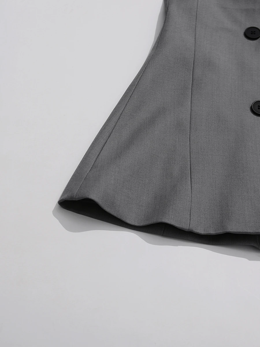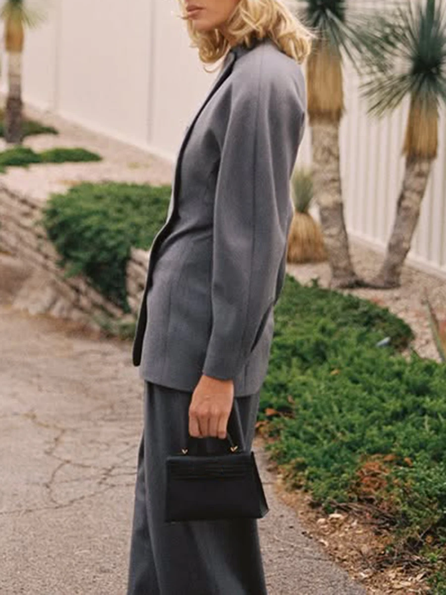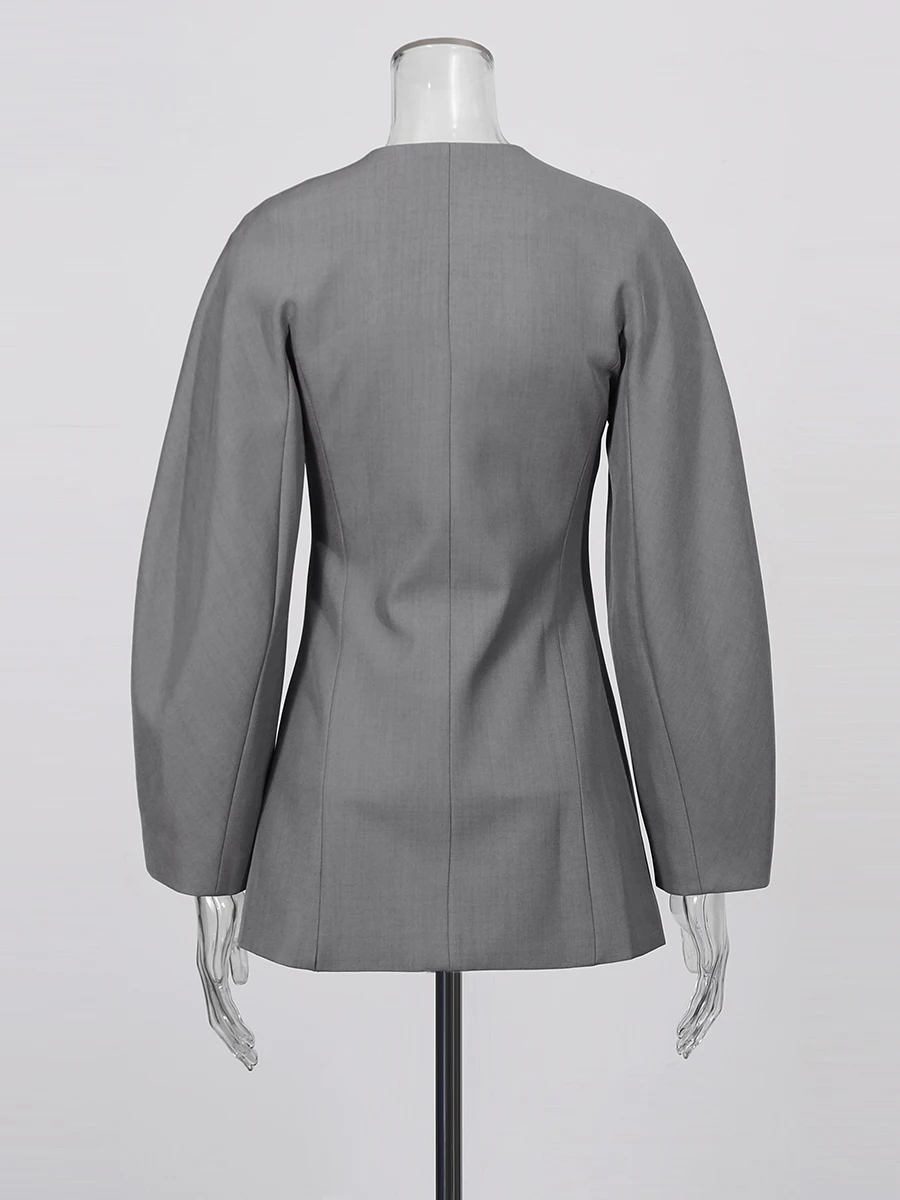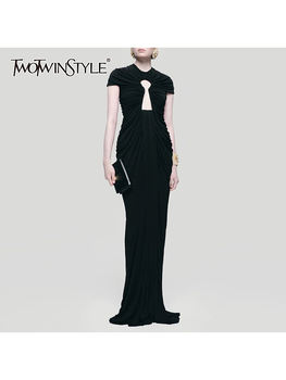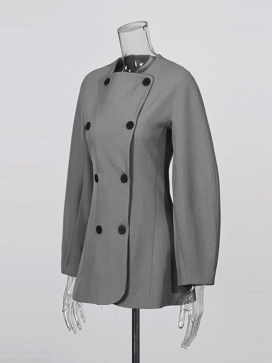 TWOTWINSTYLE Solid Fashion Two Piece Sets for Women O Neck Long Sleeves Spliced Double Breasted Coat High Waist Pant Set Female