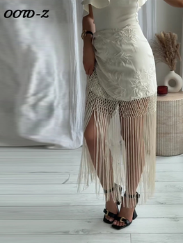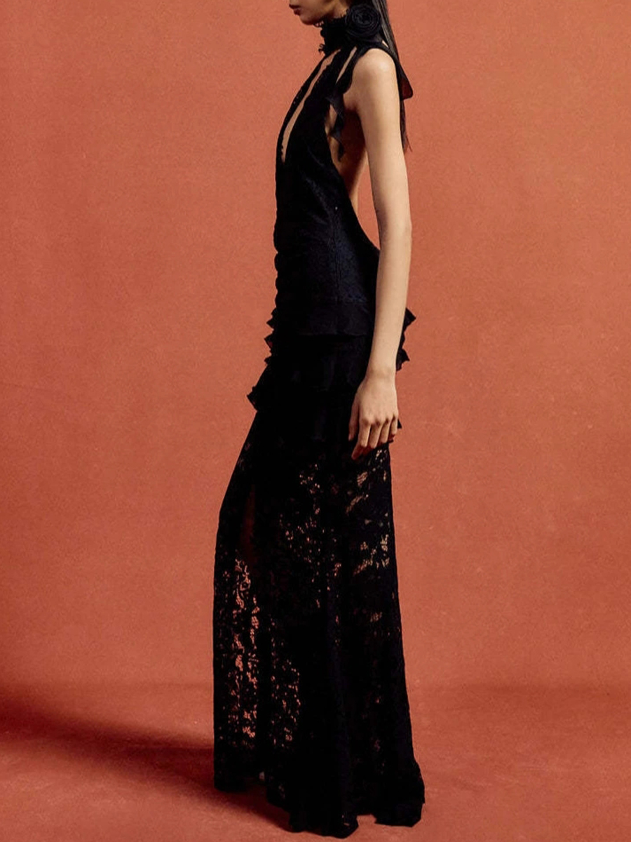 TWOTWINSTYLE Solid Hollow Out Spliced Lace Sexy Dresses for Women High Neck Sleeveless Tunic Patchwork Ruffles Dress Female New