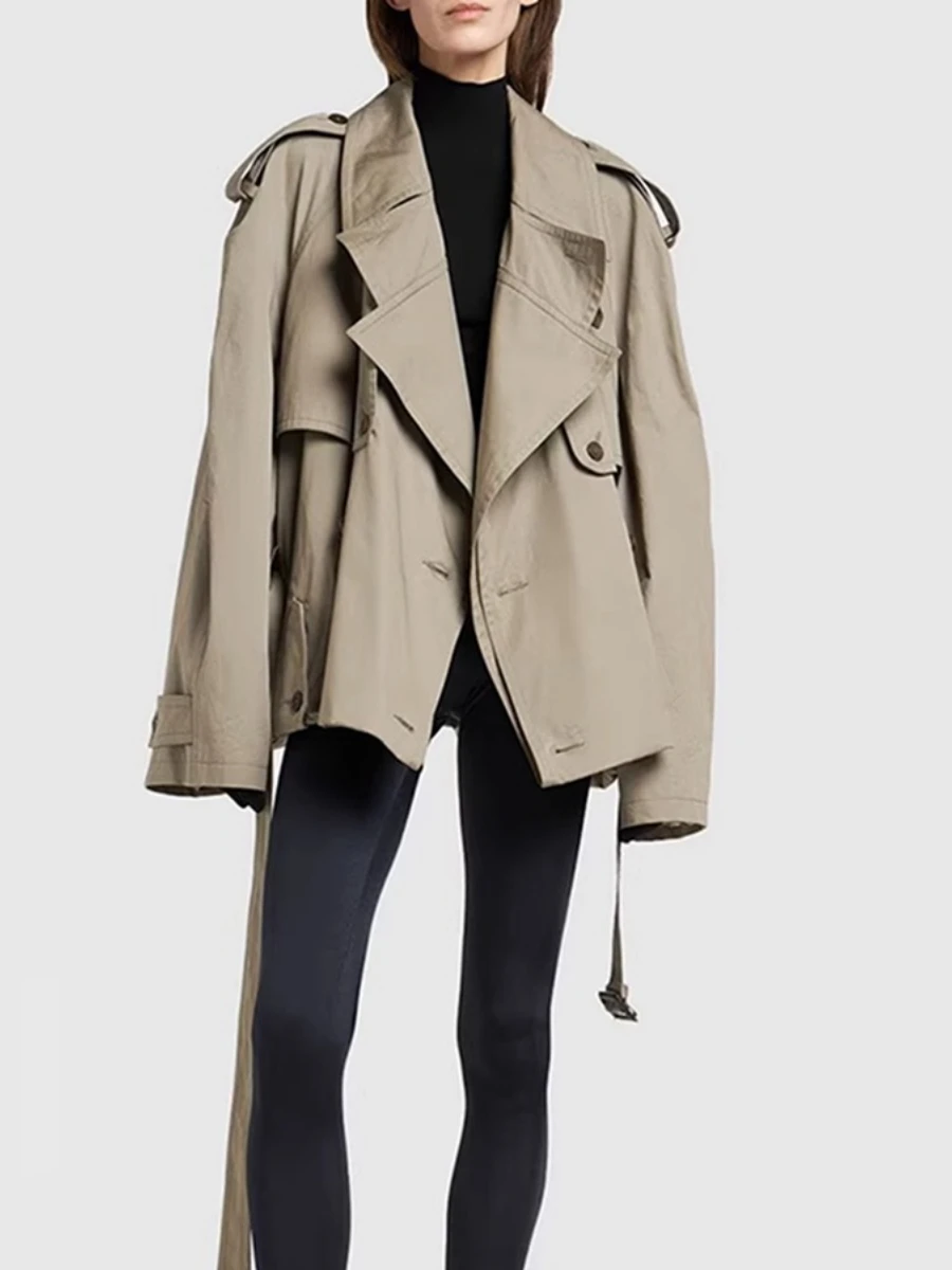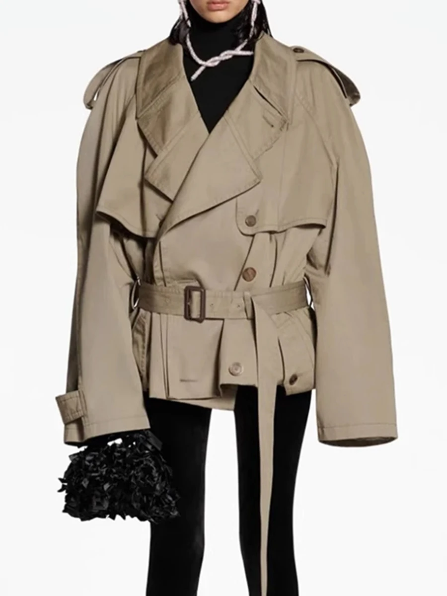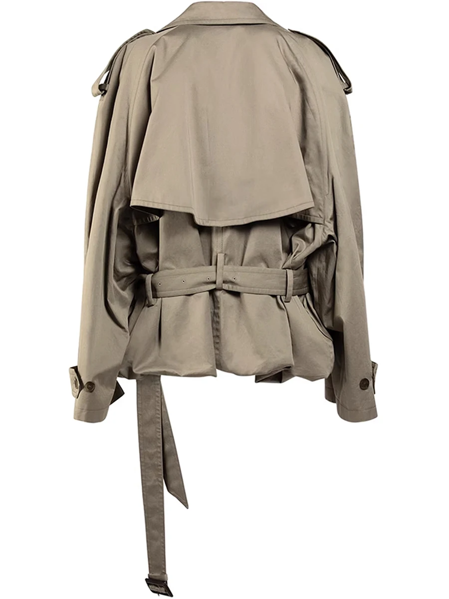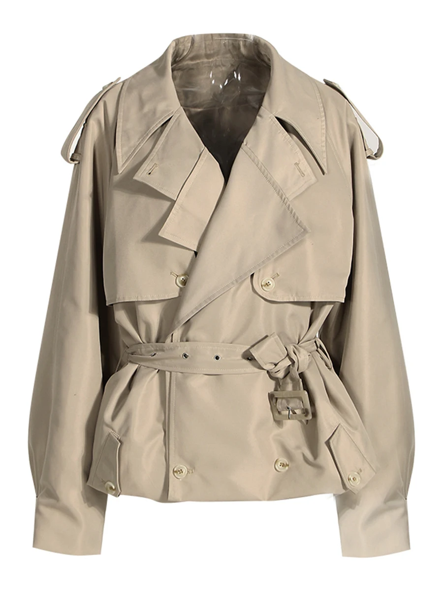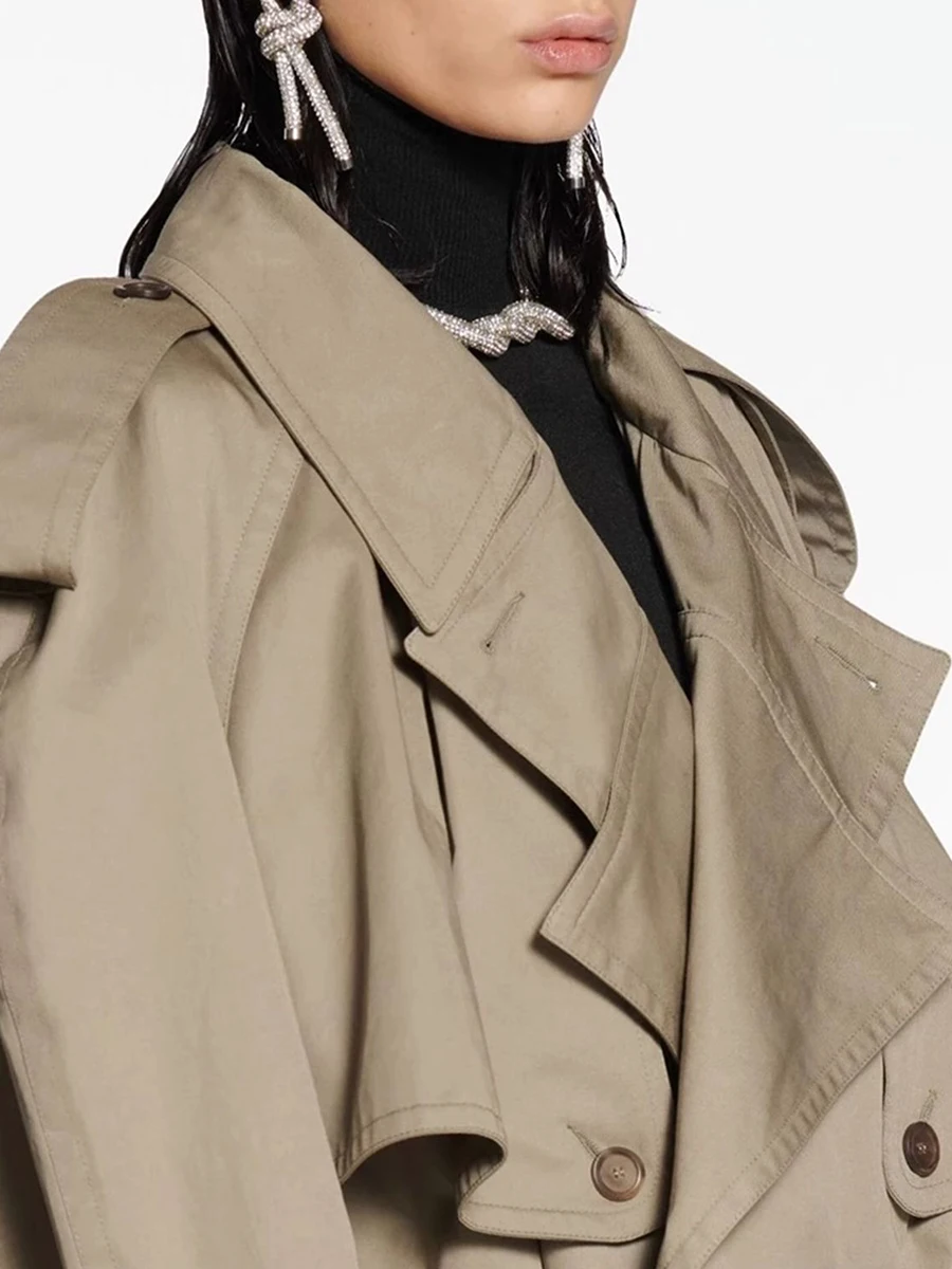 TWOTWINSTYLE Solid Loose Spliced Buttons Basics Trenchs for Women Lapel Long Sleeves Patchwork Lace Up Trench Female Fashion New