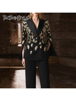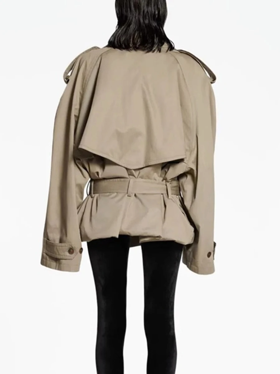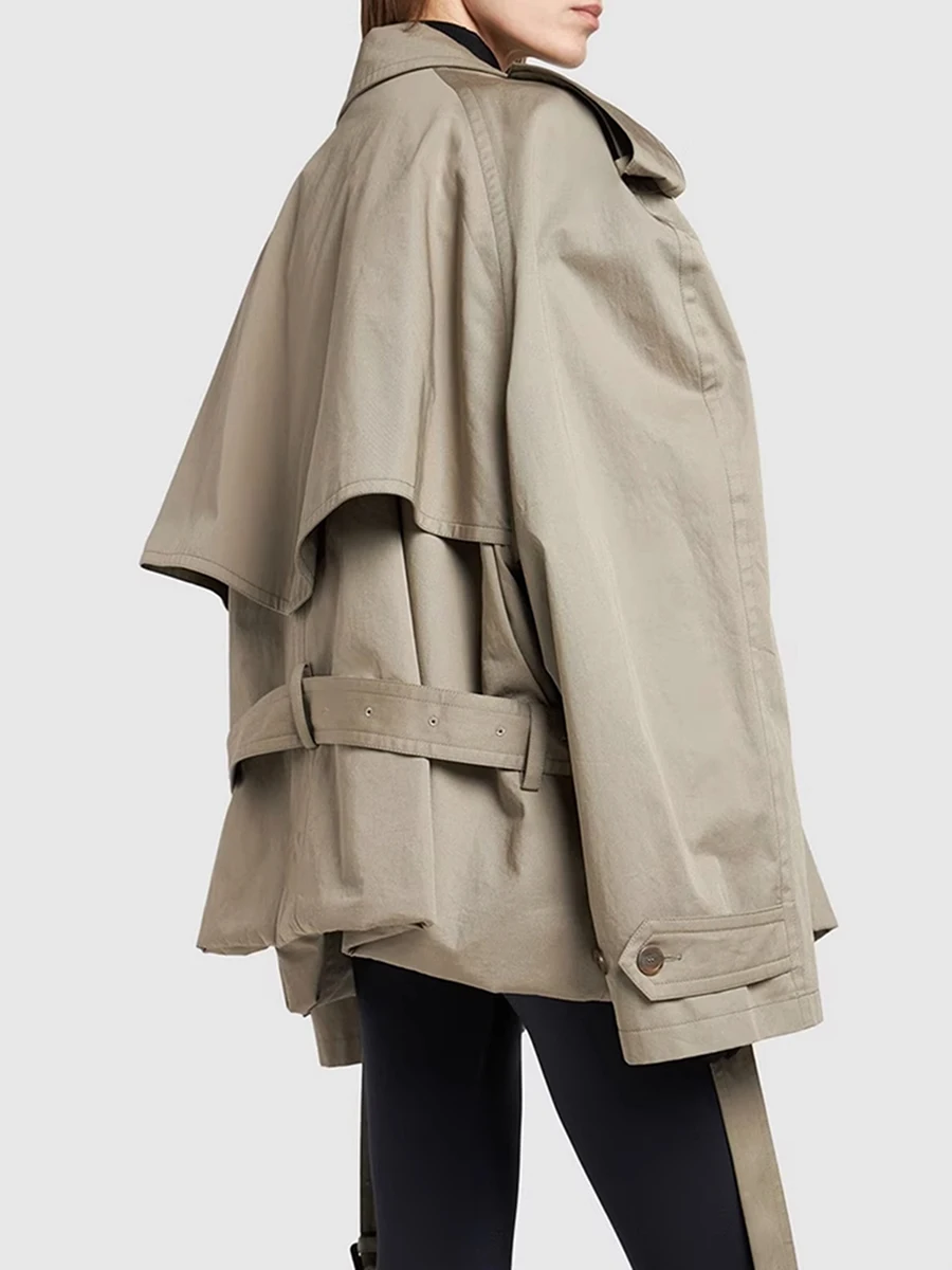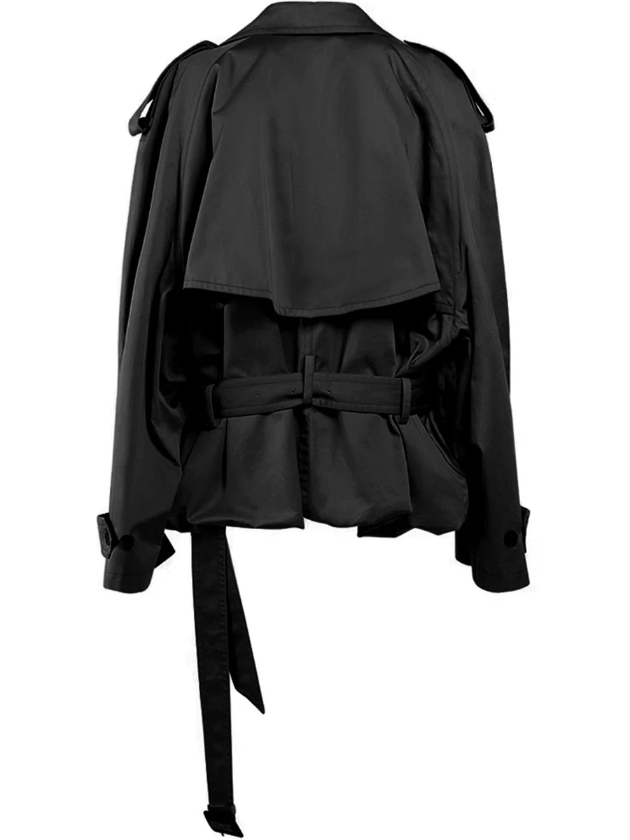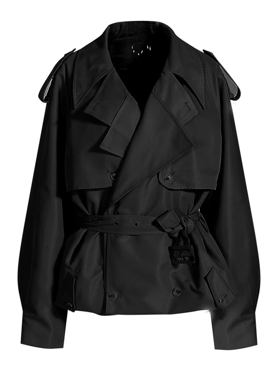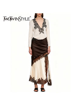 TWOTWINSTYLE Solid Loose Spliced Buttons Basics Trenchs for Women Lapel Long Sleeves Patchwork Lace Up Trench Female Fashion New