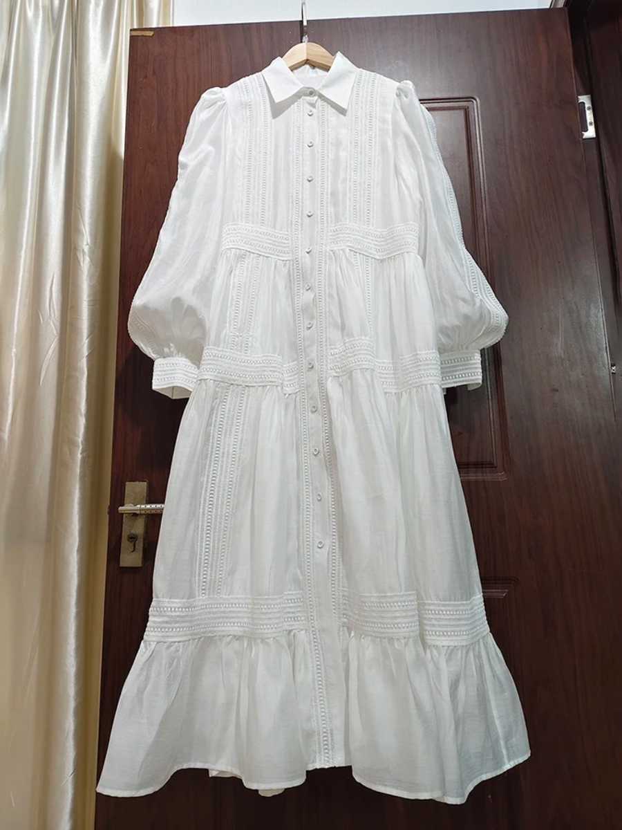 TWOTWINSTYLE Solid Loose Spliced Single Breasted Casual Dresses for Women Lapel Long Sleeves Patchwork Striped Dress Female New