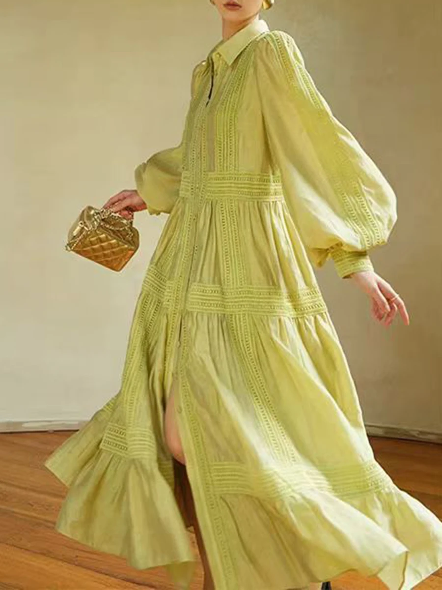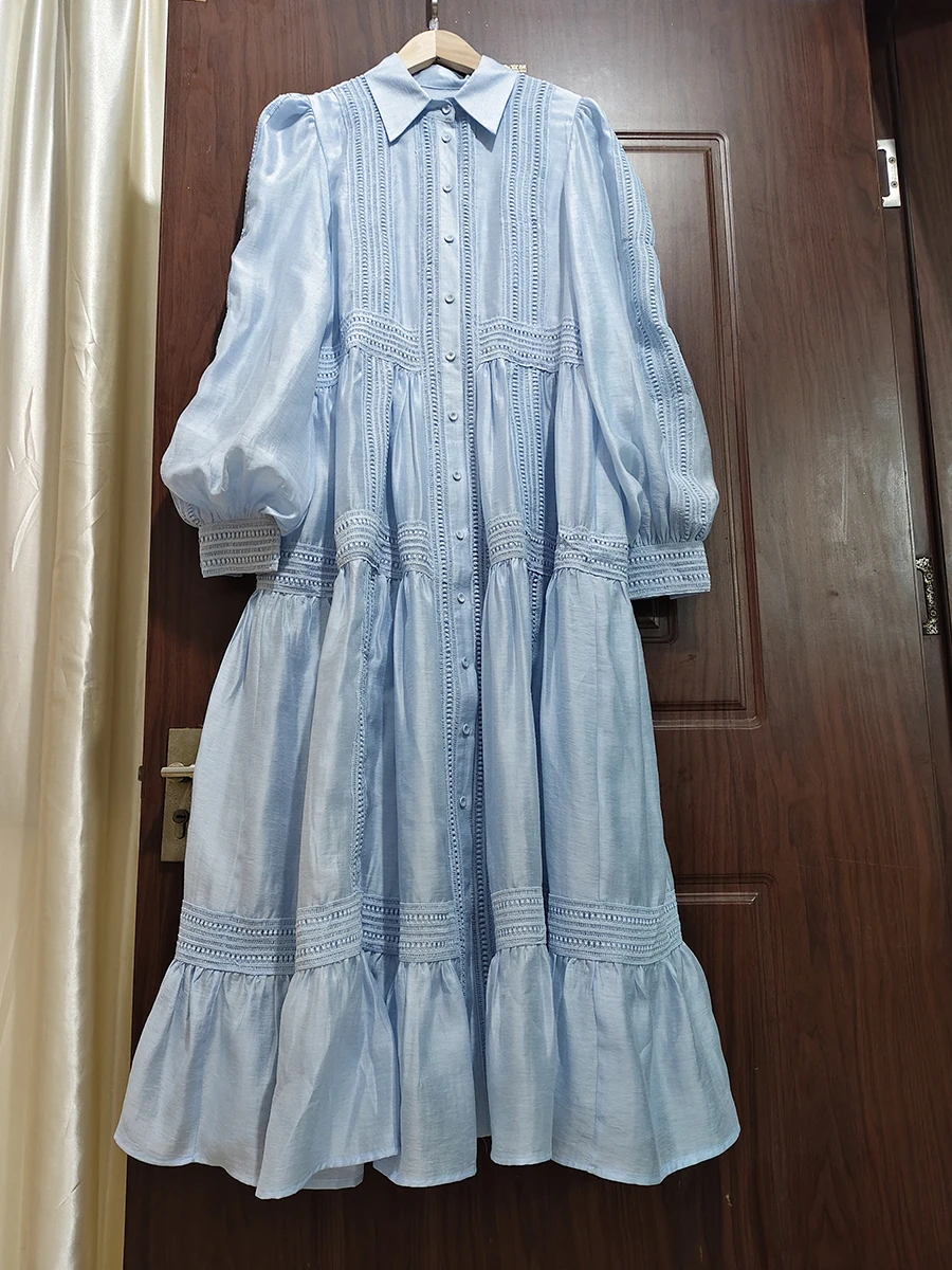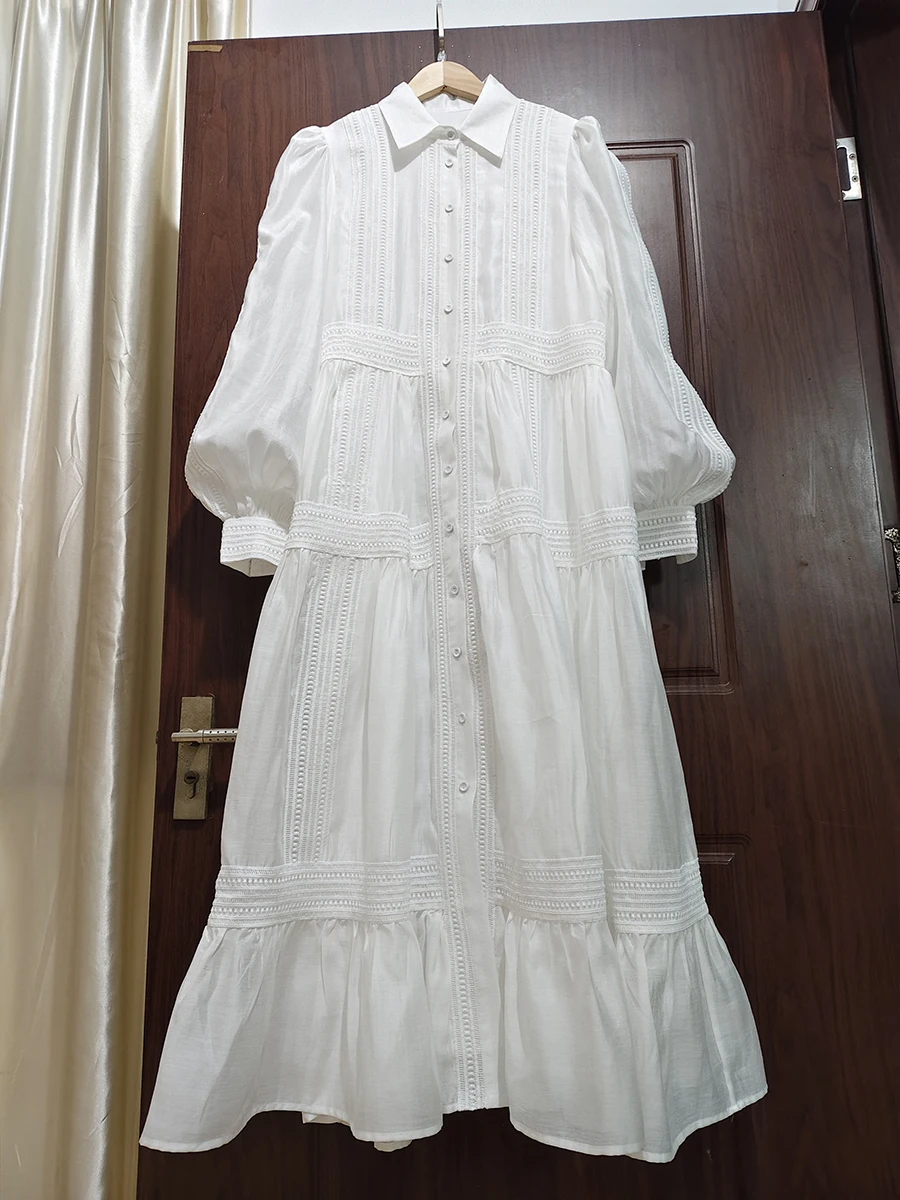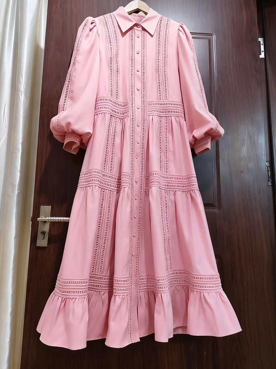 TWOTWINSTYLE Solid Loose Spliced Single Breasted Casual Dresses for Women Lapel Long Sleeves Patchwork Striped Dress Female New
